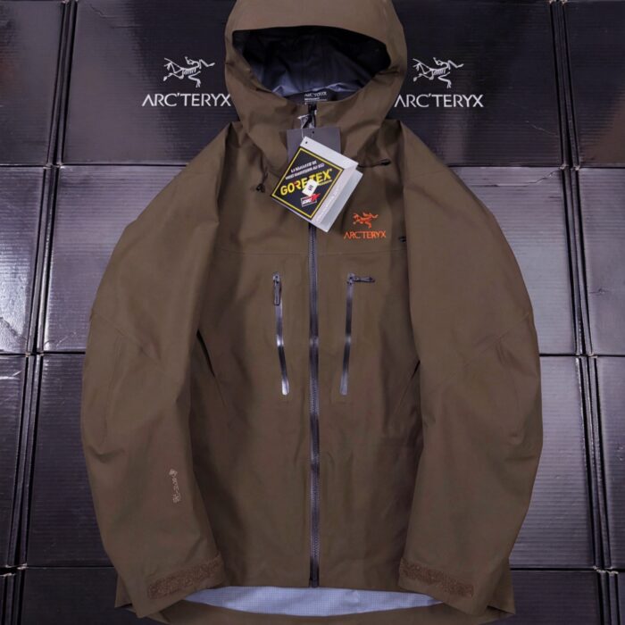 ARC’TERYX ALPHA SV Embroidery LOGO loose ZIP-UP Windproof Rain Jacket Brown アークテリクス アルファ SV 刺繍 LOGO ゆったり ジップアップ 防风アウトドアジャケット ブラウン
