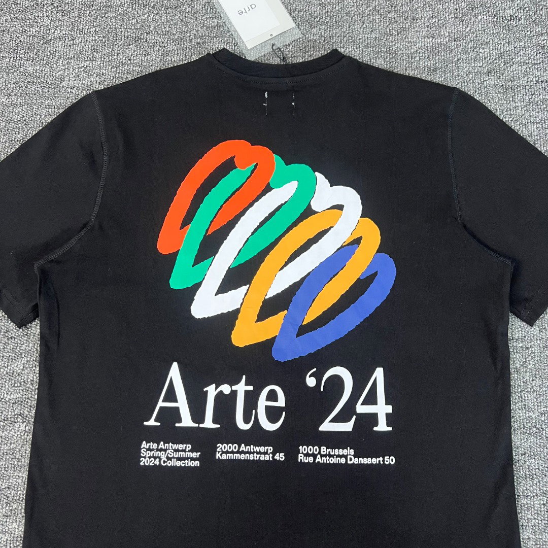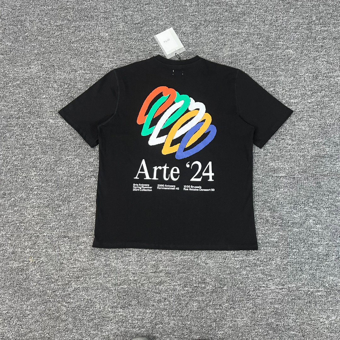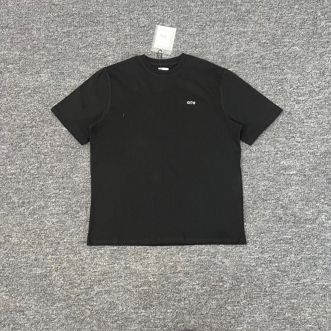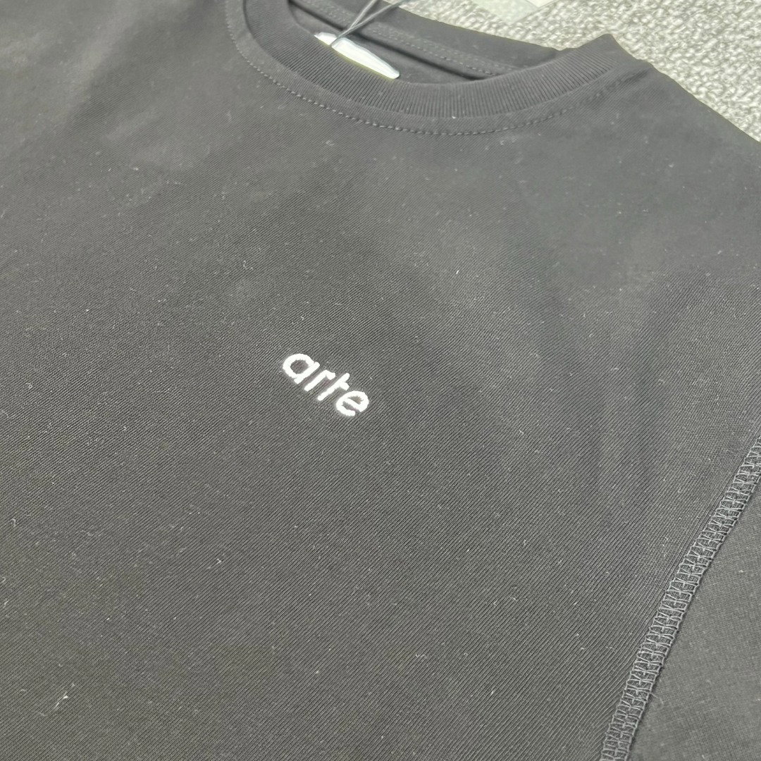 Arte Antwerp Embroidery Letter logo Print pattern loose Round neck T-shirt Black アルテ アントワープ 刺繍 モジ logo プリント パターン ゆったり クルーネック Tシャツ ブラック