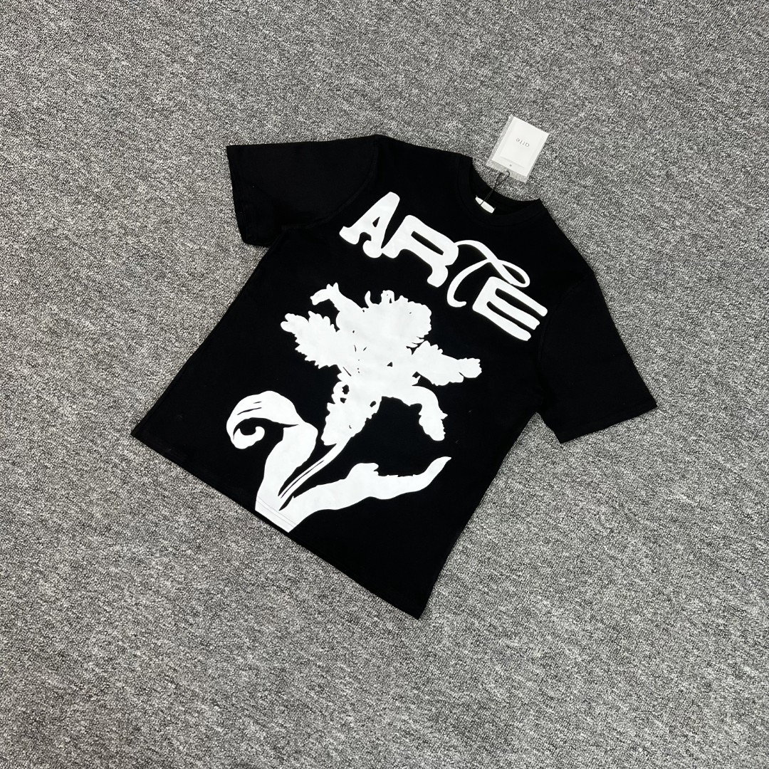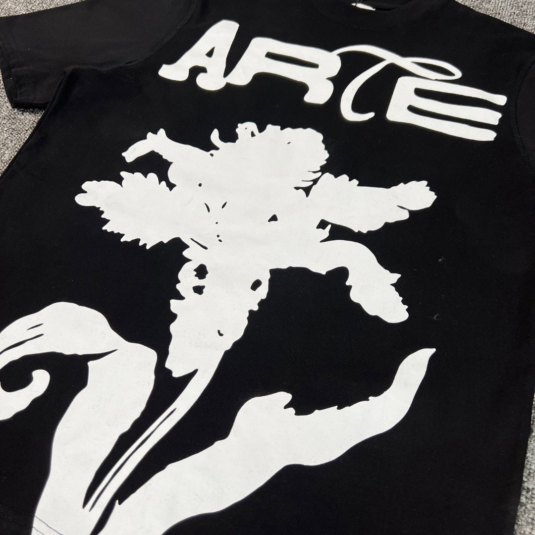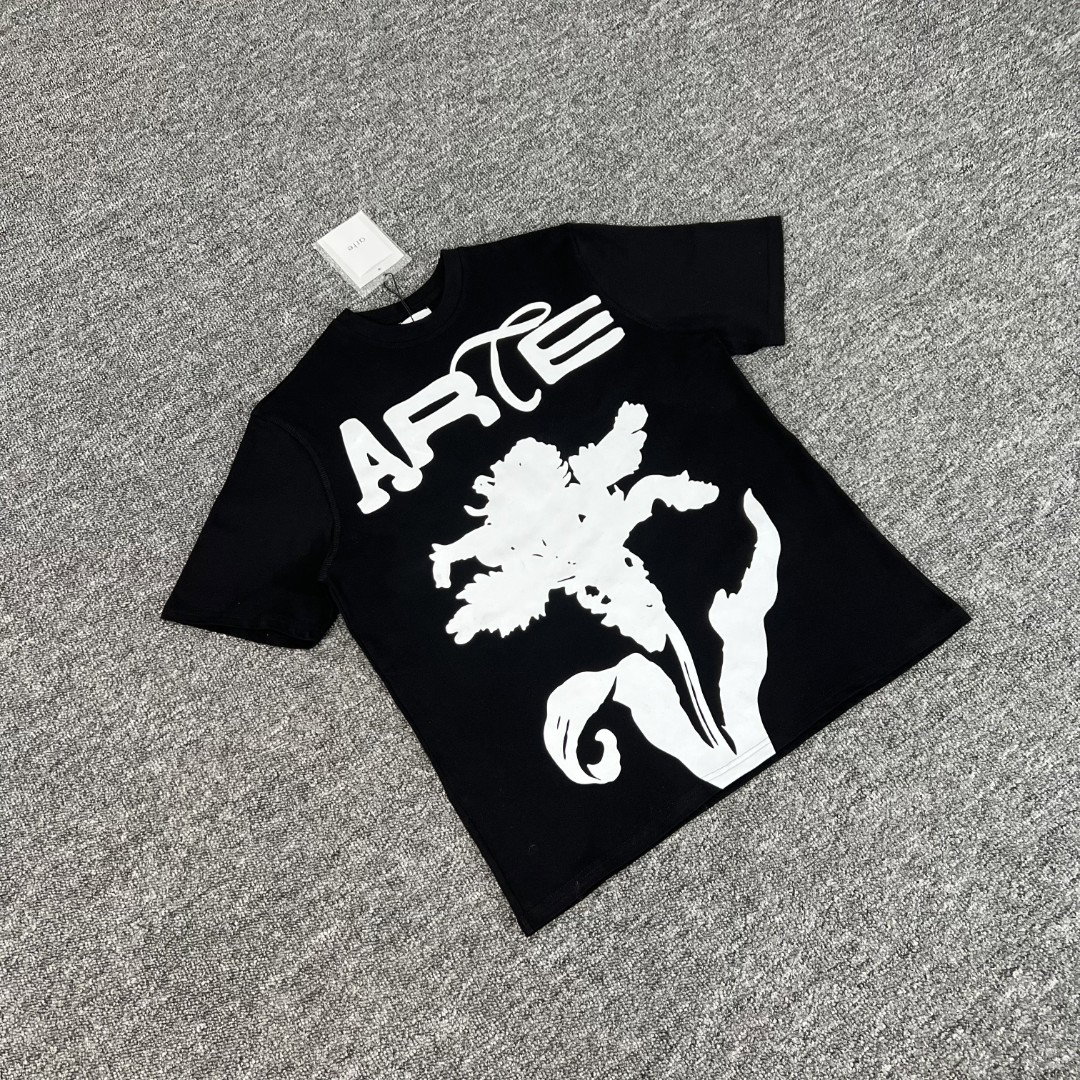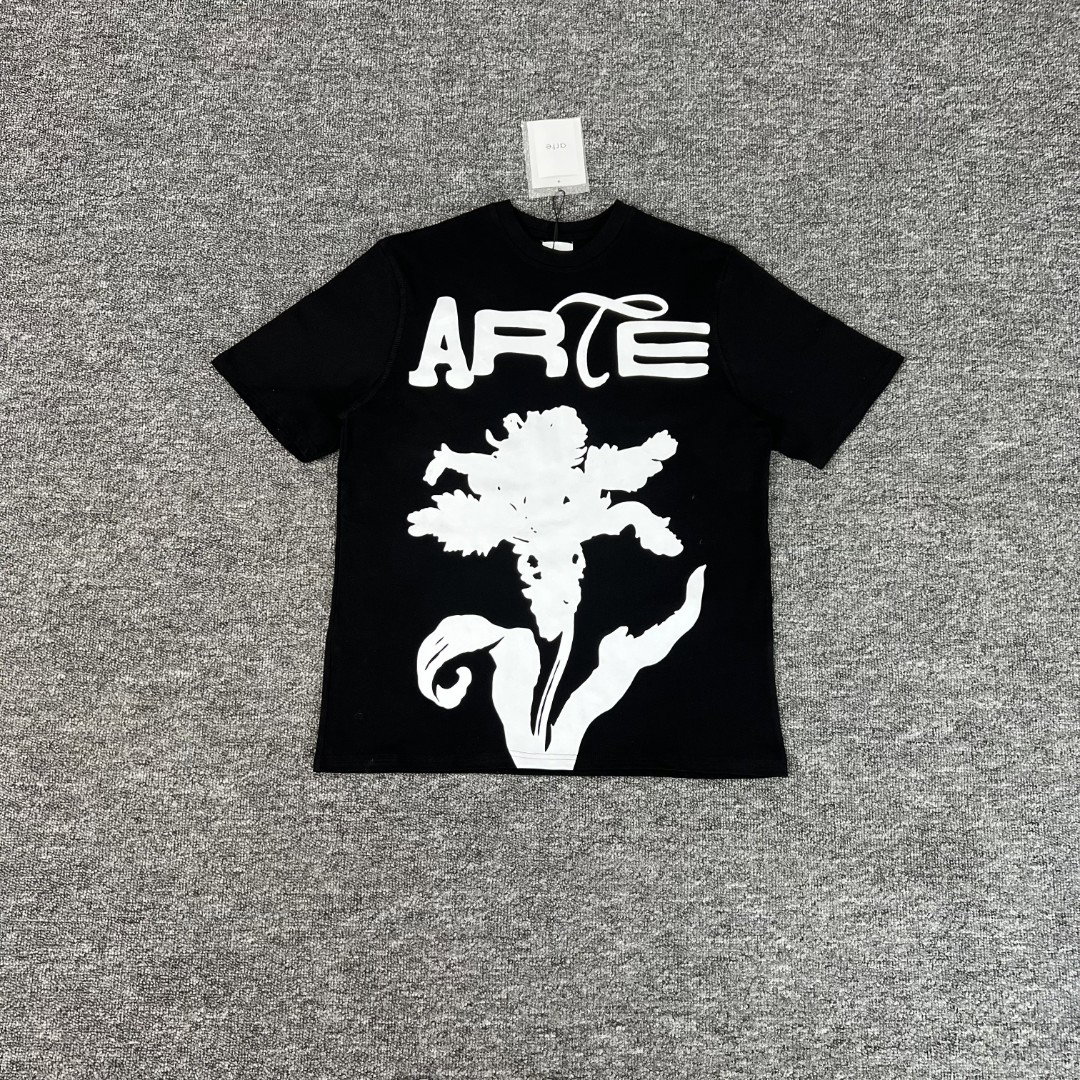 Arte Antwerp Print Letter flower pattern loose Round neck T-shirt Black アルテ アントワープ プリント モジ 花 パターン モジ ゆったり クルーネック Tシャツ ブラック