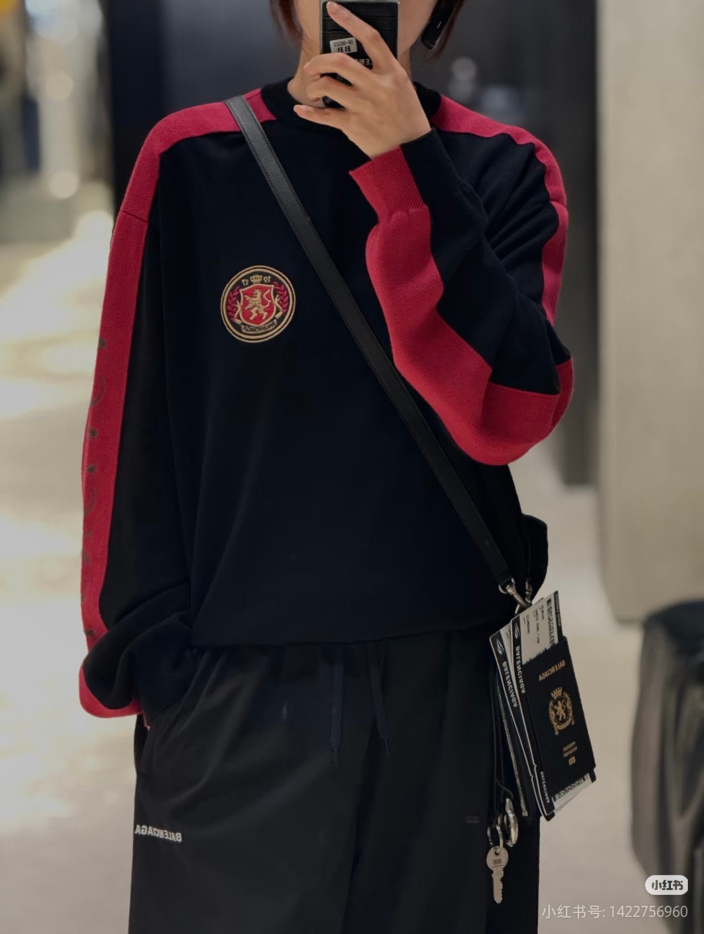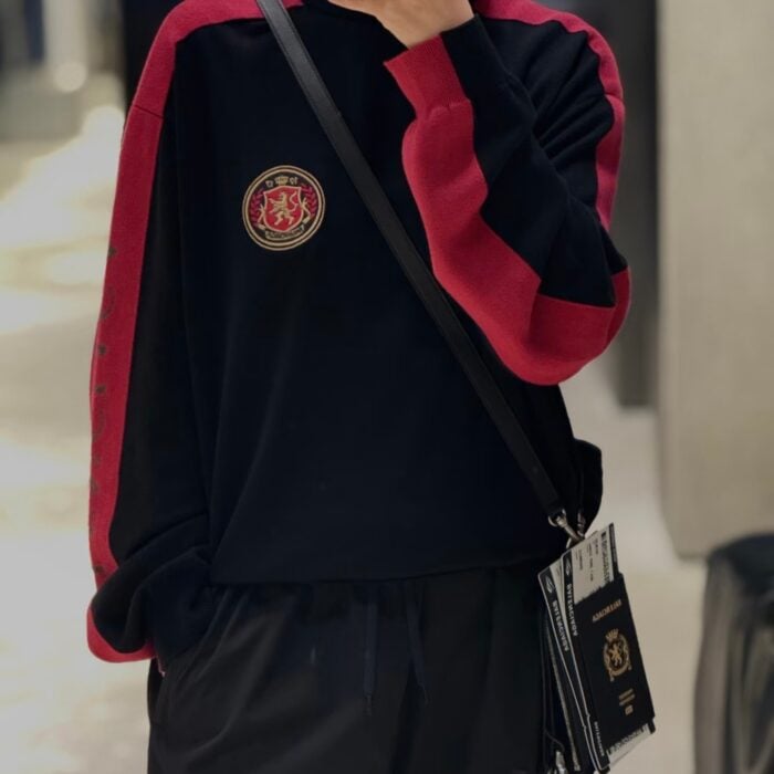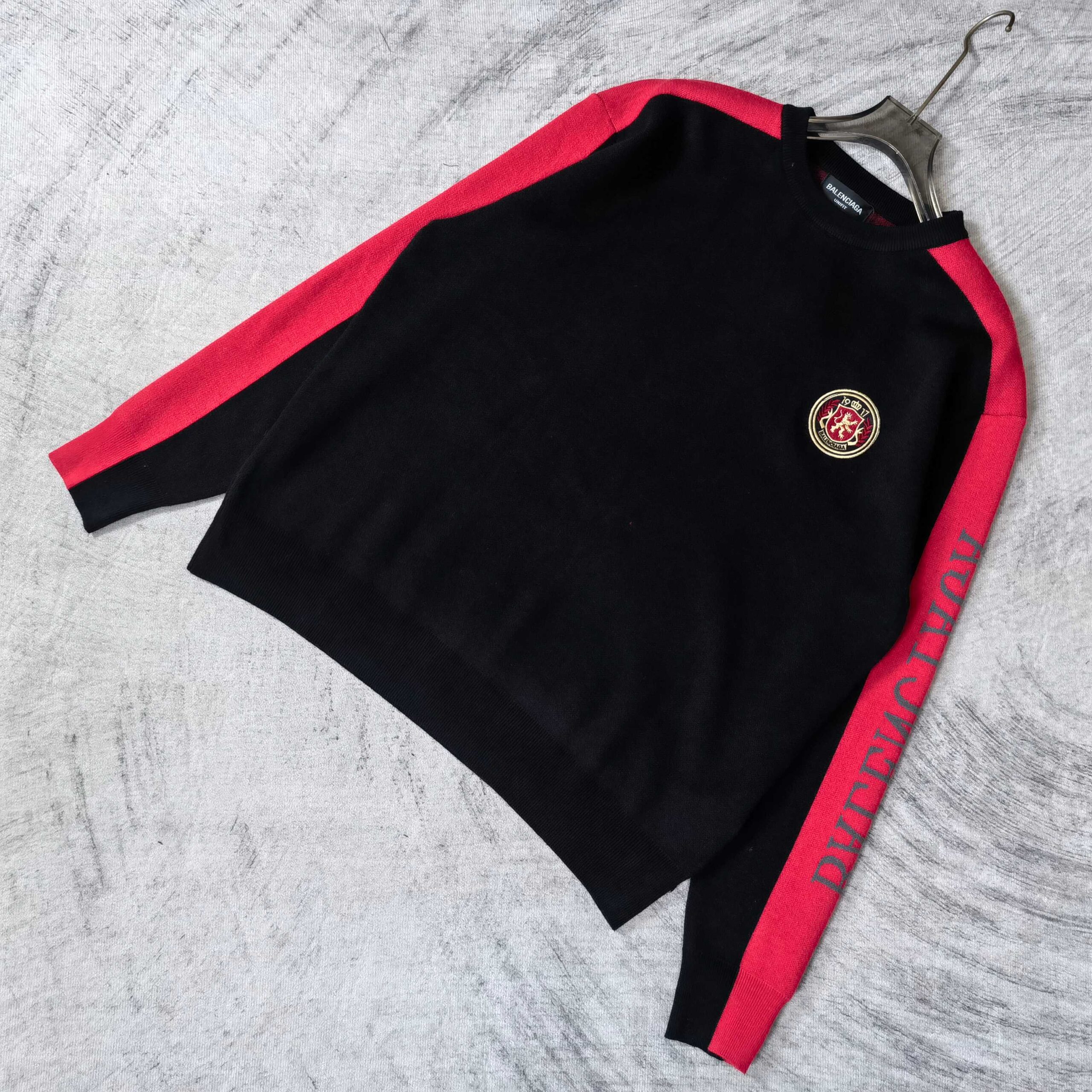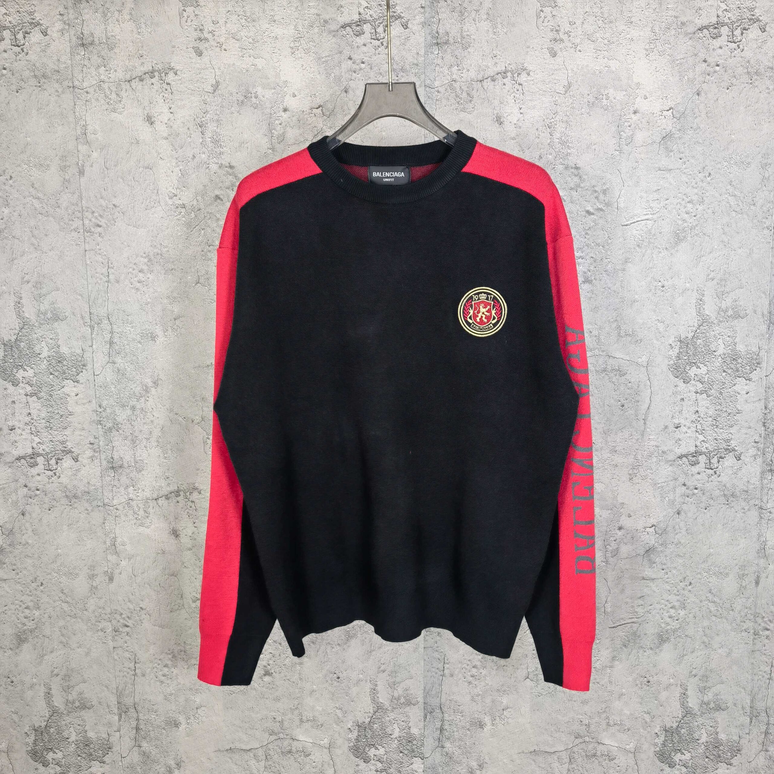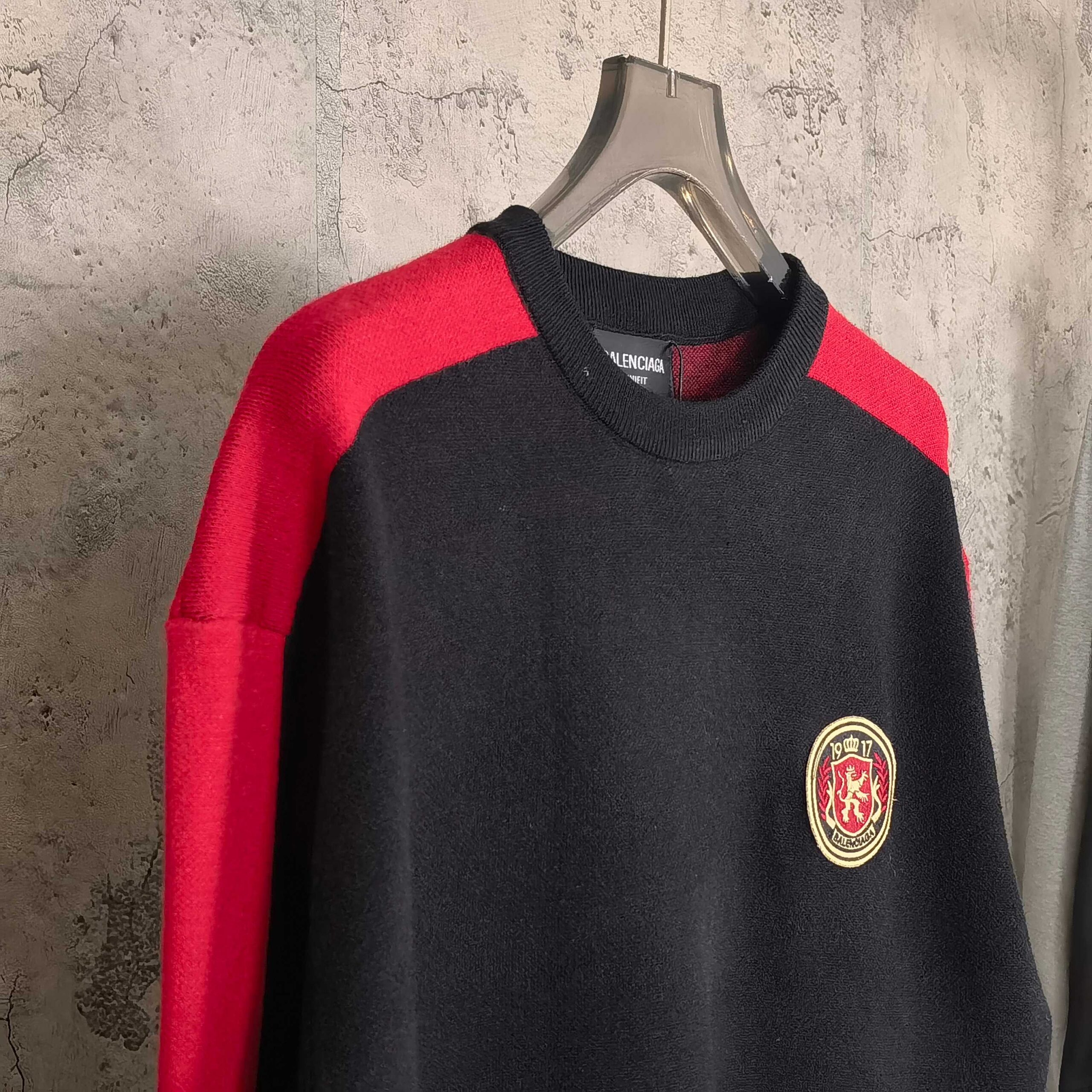 Balenciaga combination color Embroidery emblem Round neck knit Sweater バレンシアガ コンビデザイン 刺繍 バッジ クルーネック ニットセーター