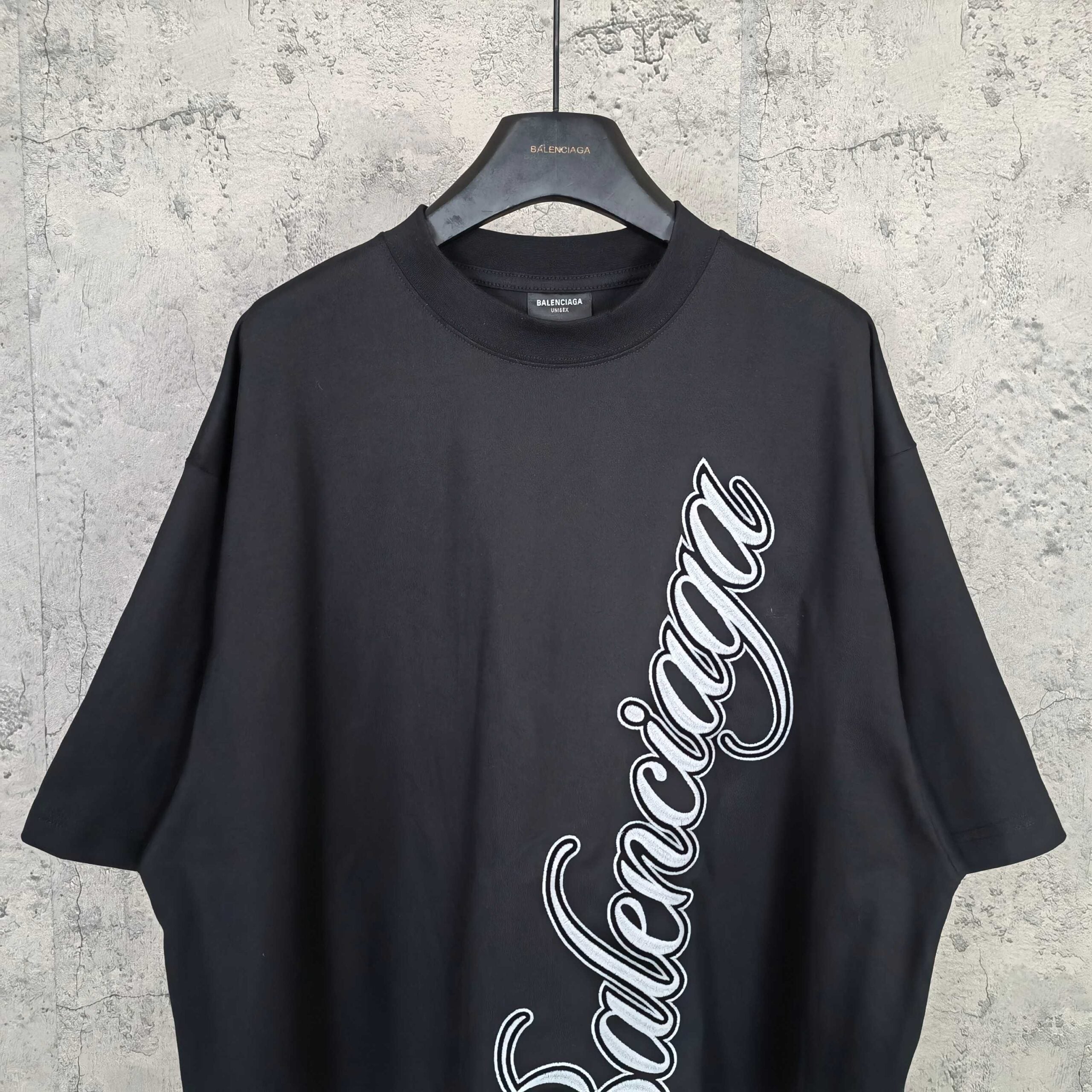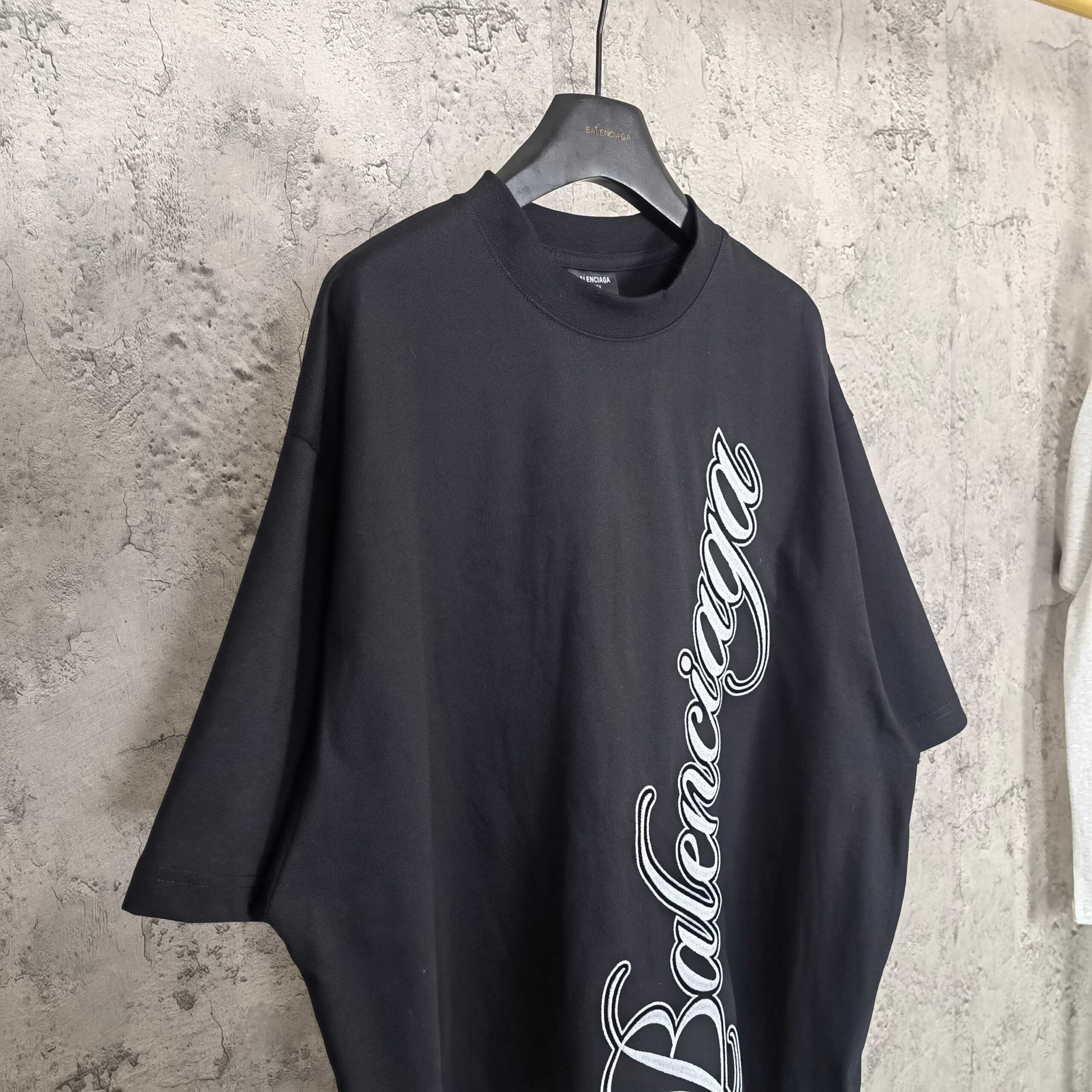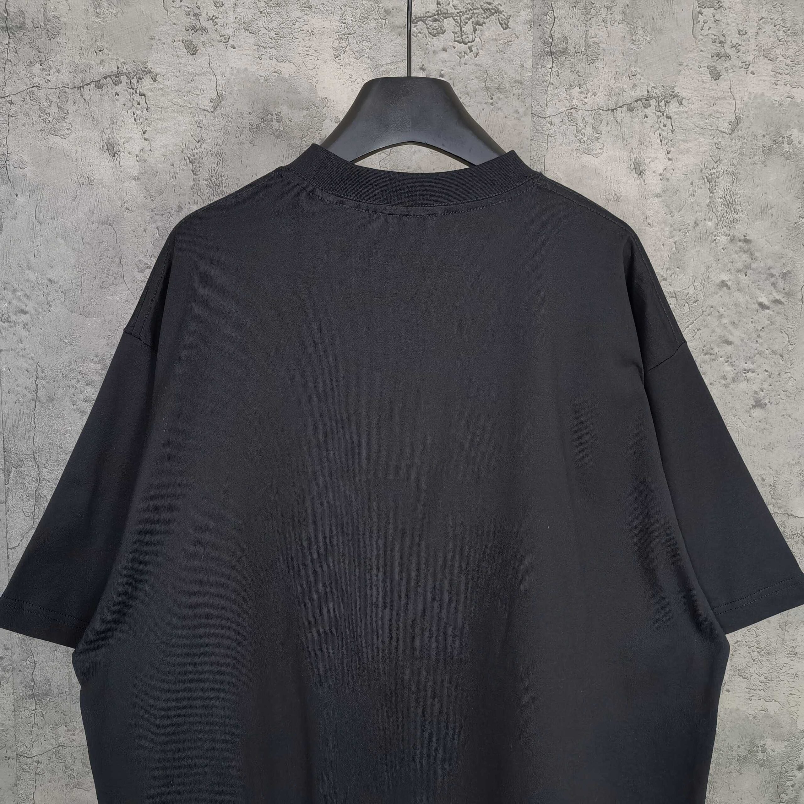 Balenciaga distressed Embroidery Letter logo Round neck T-shirt Black バレンシアガ ディストレス 刺繍 モジ logo クルーネック Tシャツ ブラック