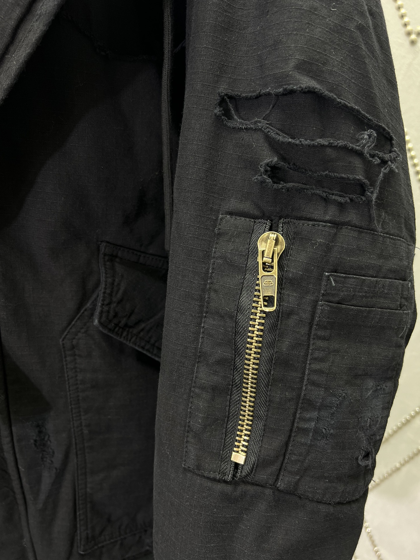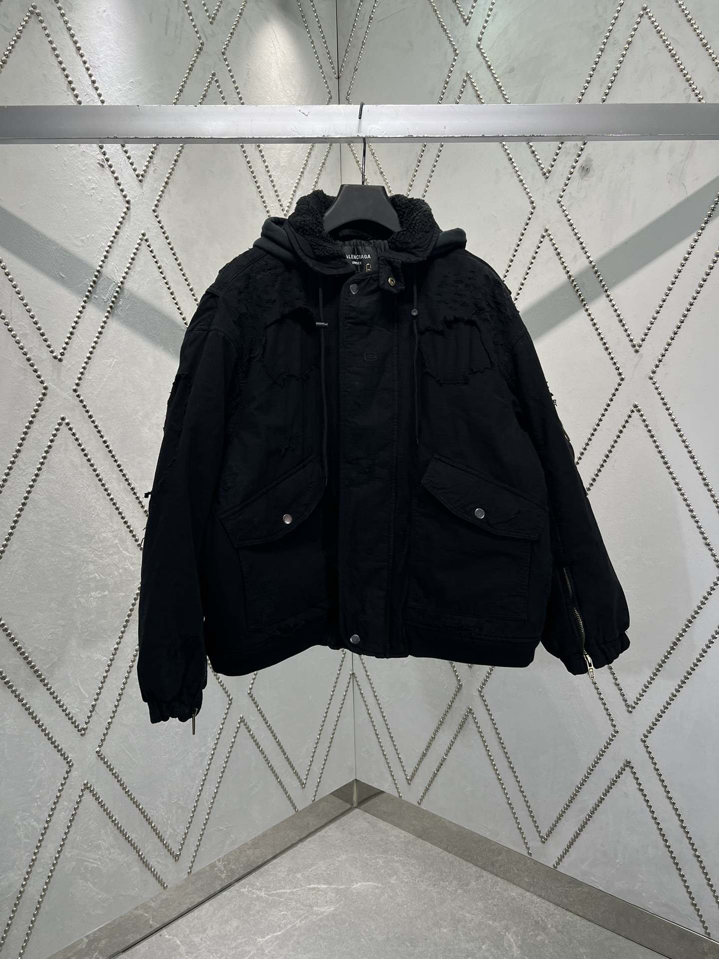 Balenciaga distressed loose interlayer cotton ZIP-UP jacket Black バレンシアガ ディストレス ゆったり 中綿 ジップアップ ジャケット ブラック
