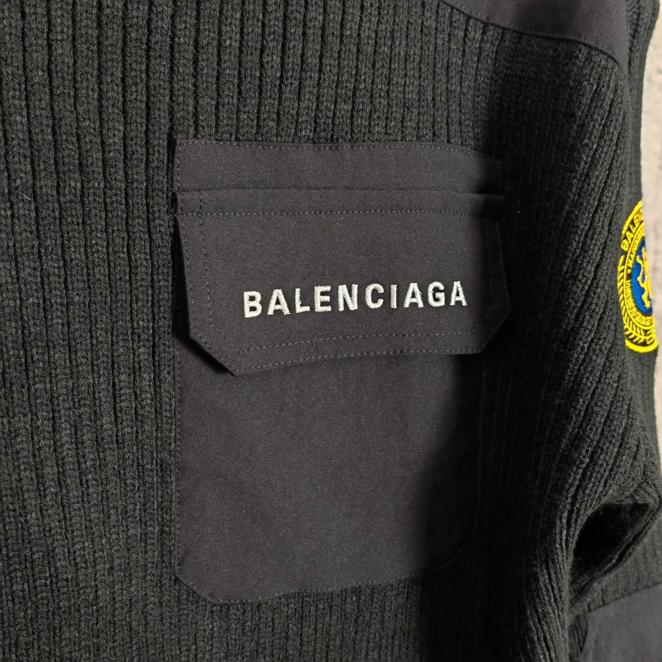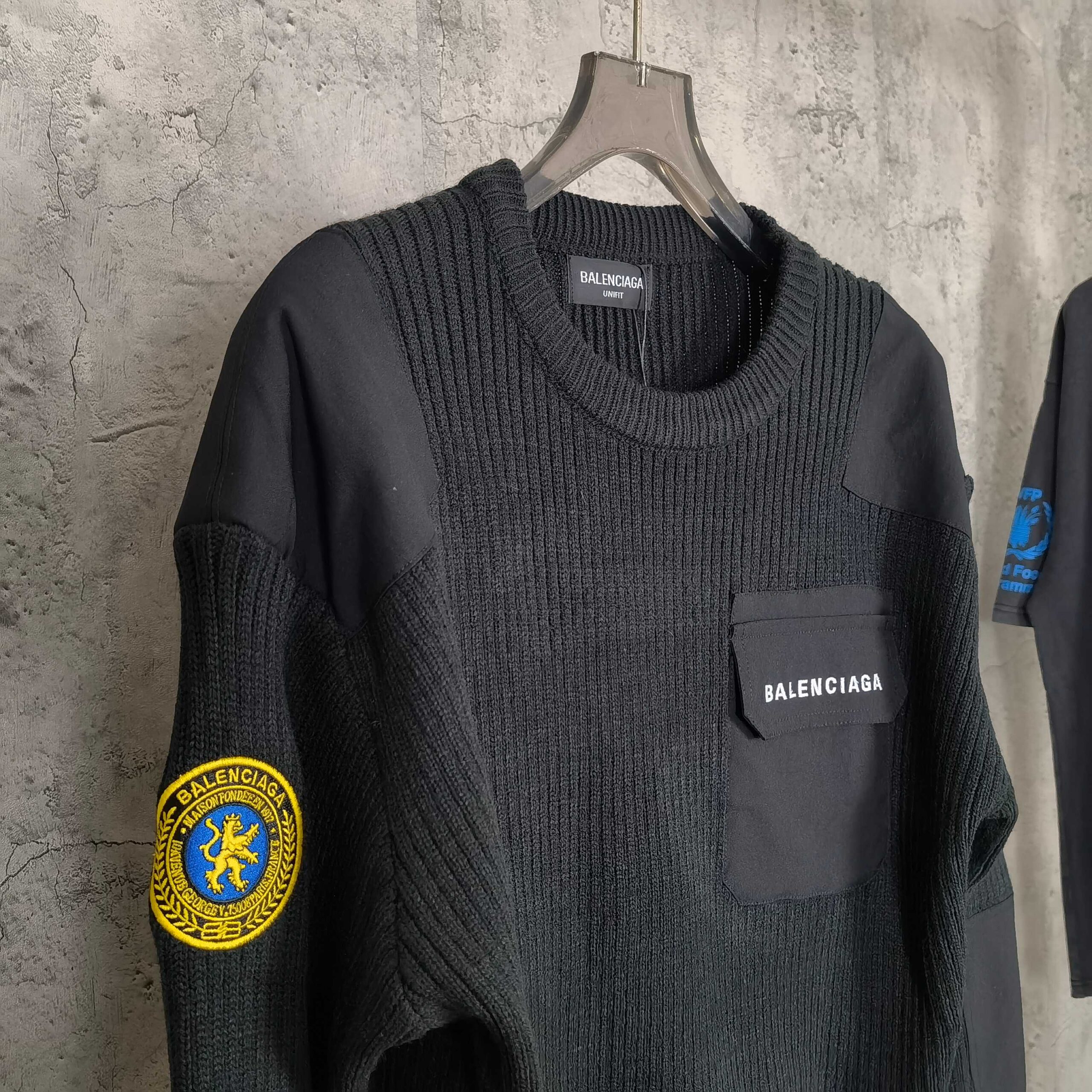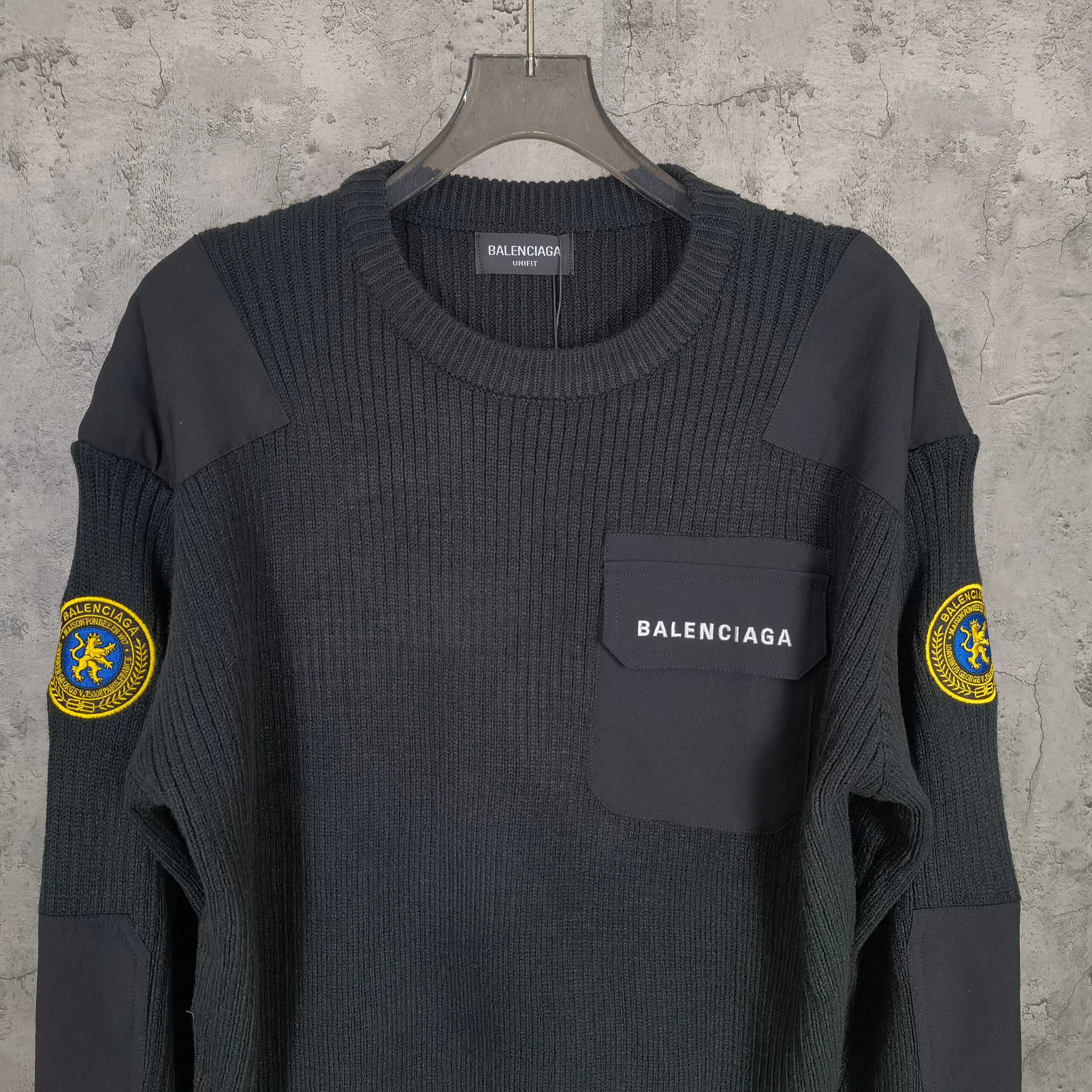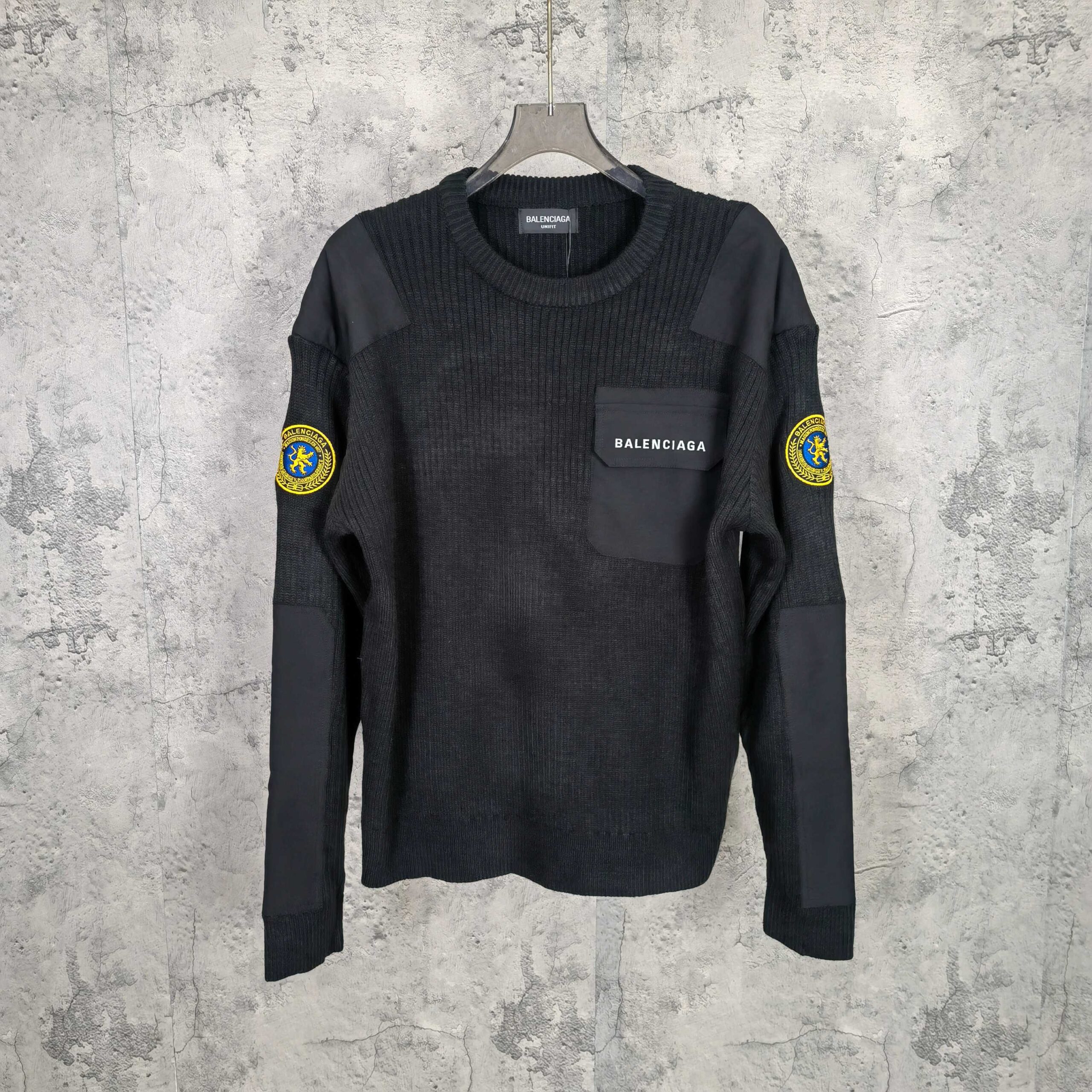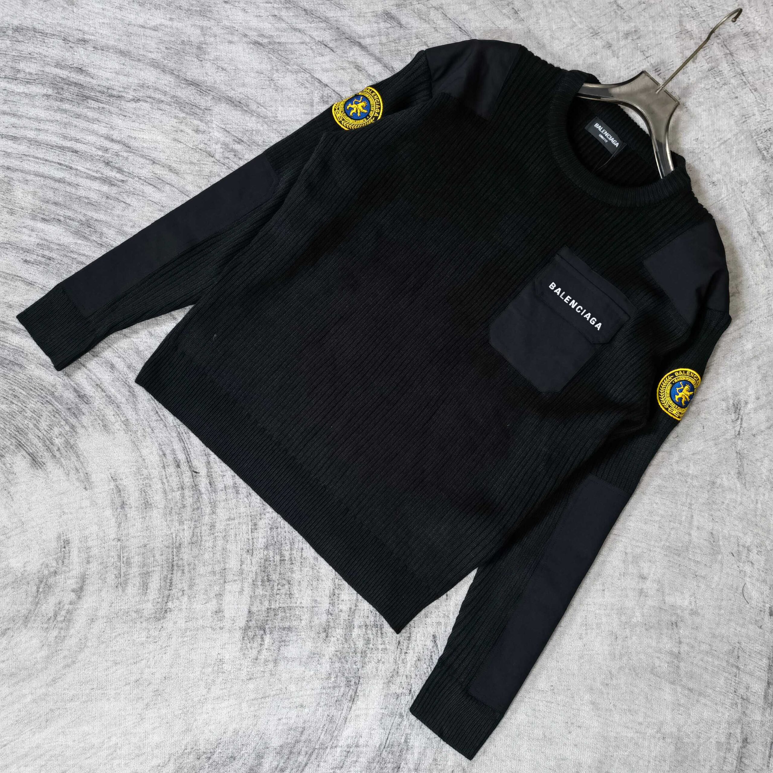 Balenciaga emblem Patchwork Embroidery logo knit Sweater Black バレンシアガ バッジ パッチワーク 刺繍 logo ニットセーター ブラック