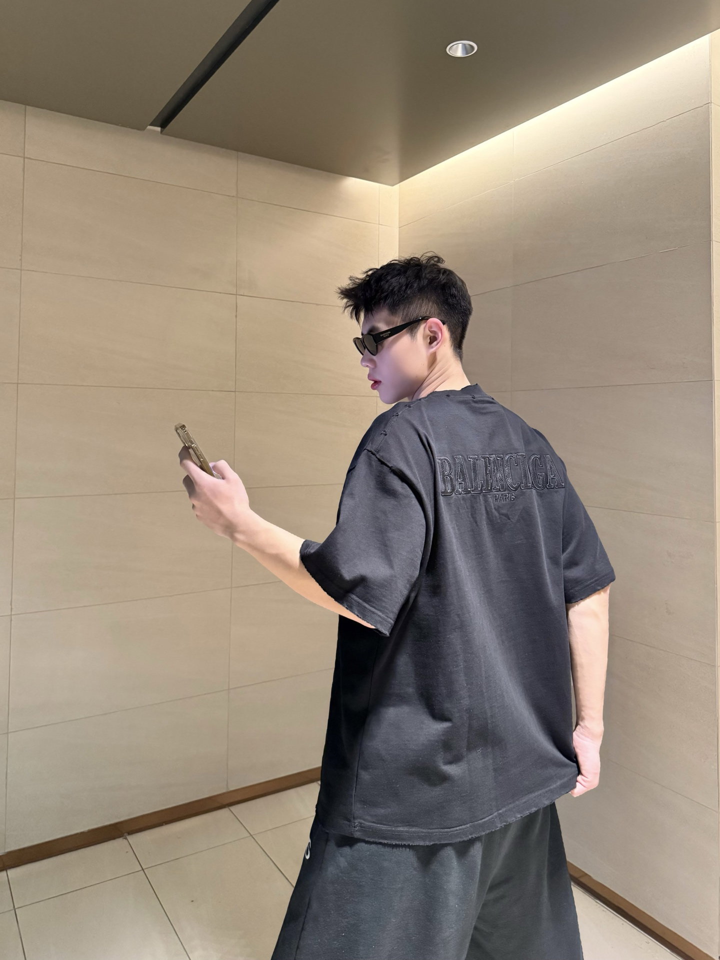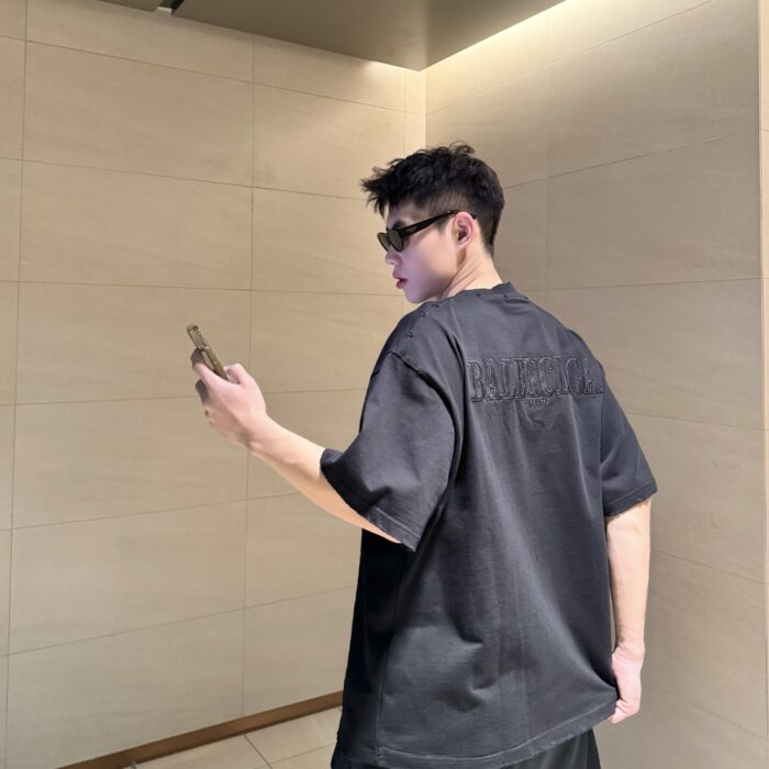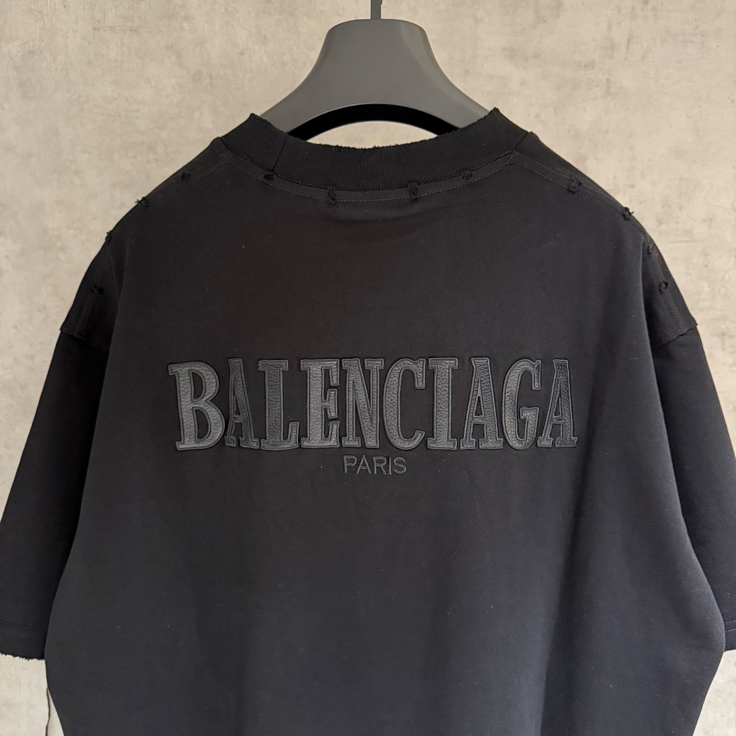 Balenciaga distressed Embroidery Letter logo Round neck T-shirt バレンシアガ ディストレス 刺繍 モジ logo クルーネック Tシャツ