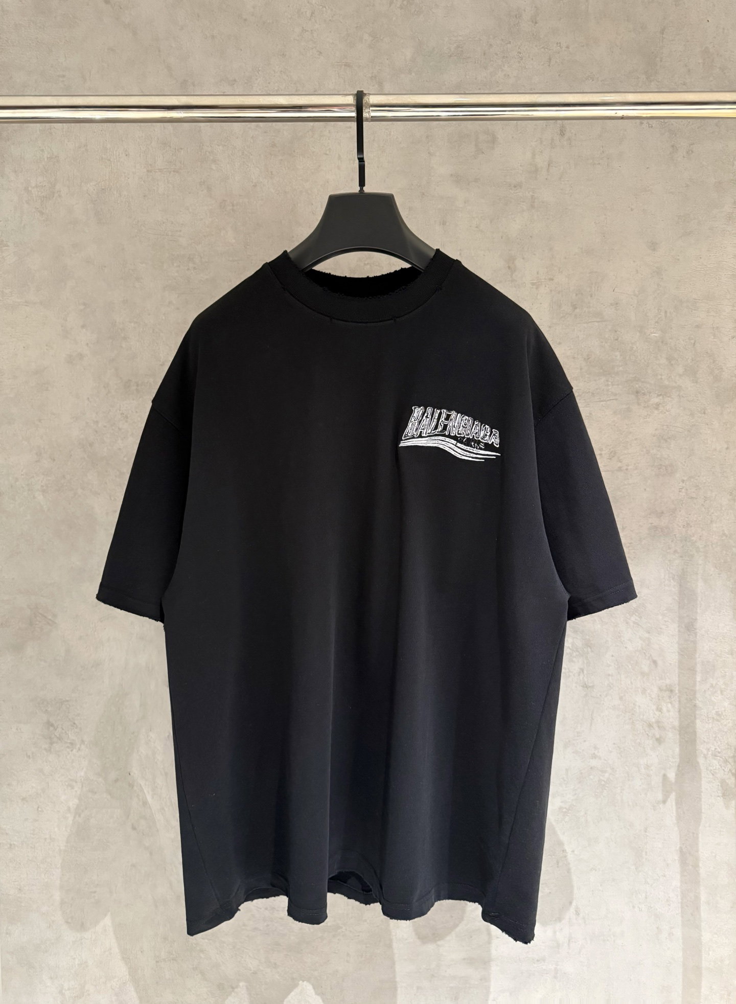 Balenciaga Embroidery logo loose Round neck T-shirt Black バレンシアガ 刺繍 logo ゆったり クルーネック Tシャツ ブラック