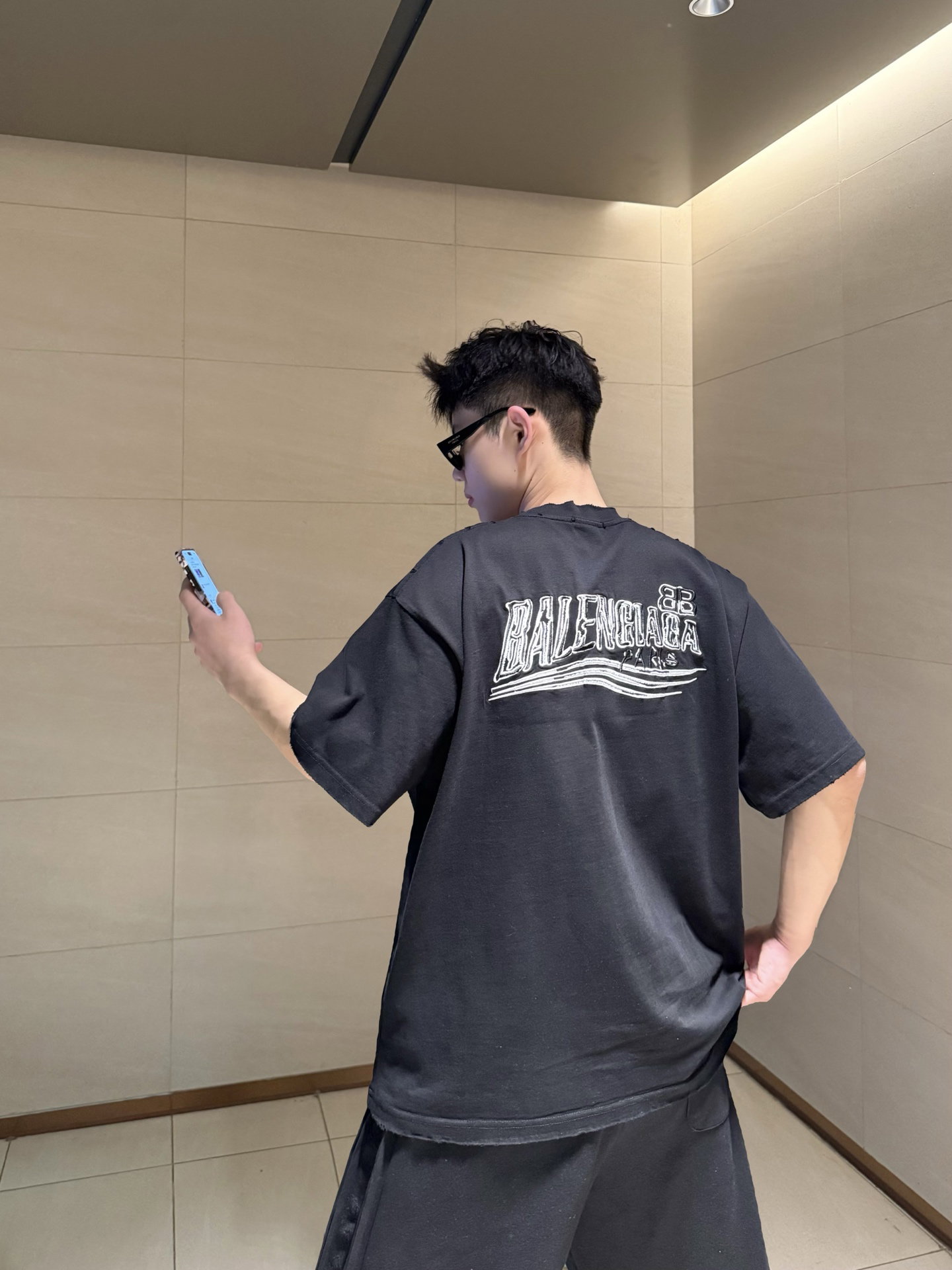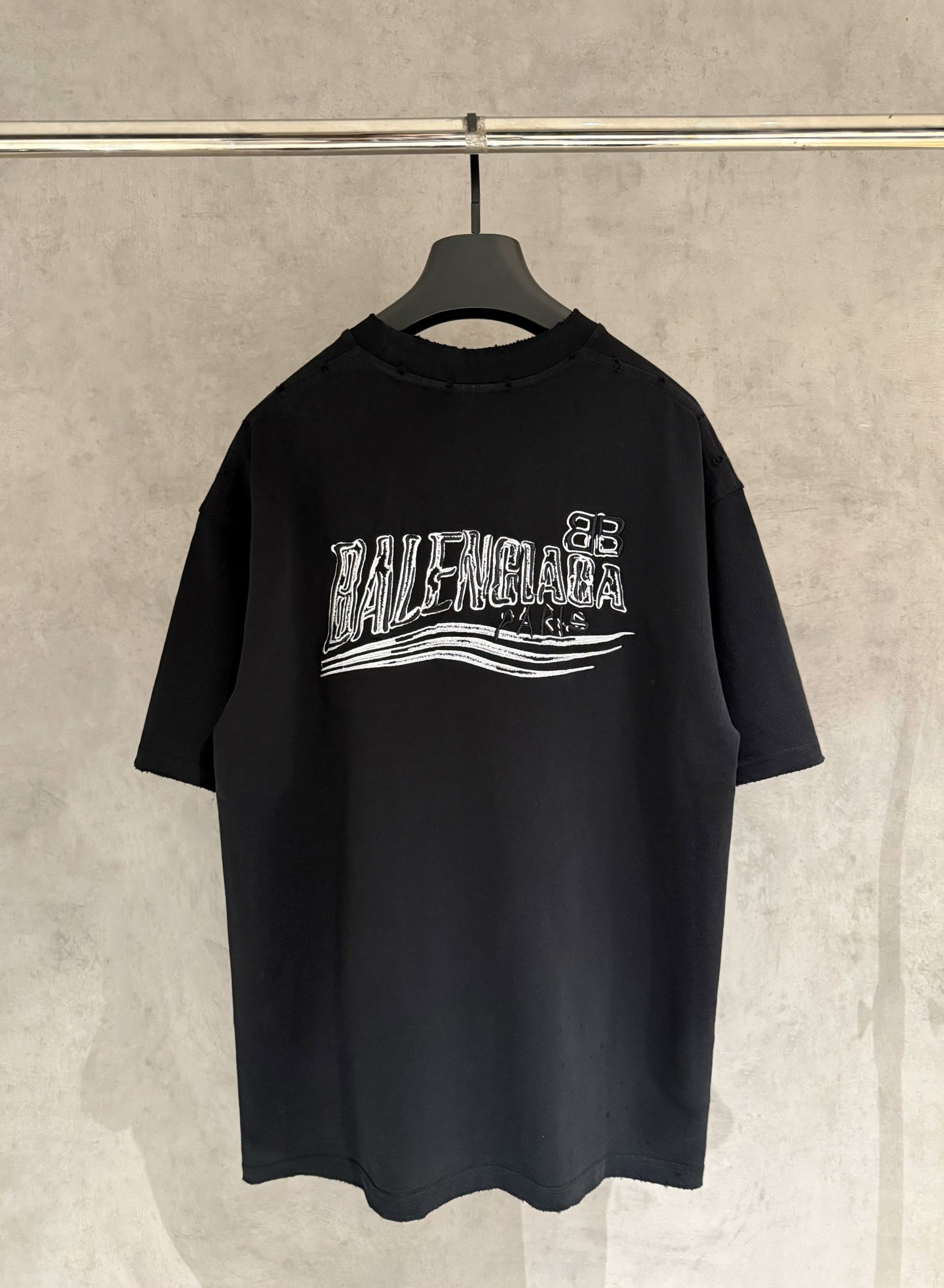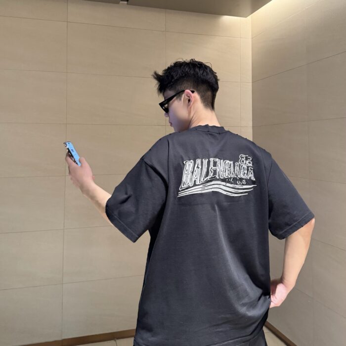 Balenciaga Embroidery Letter logo pattern loose Round neck T-shirt Black バレンシアガ 刺繍 モジ logo パターン ゆったり クルーネック Tシャツ ブラック