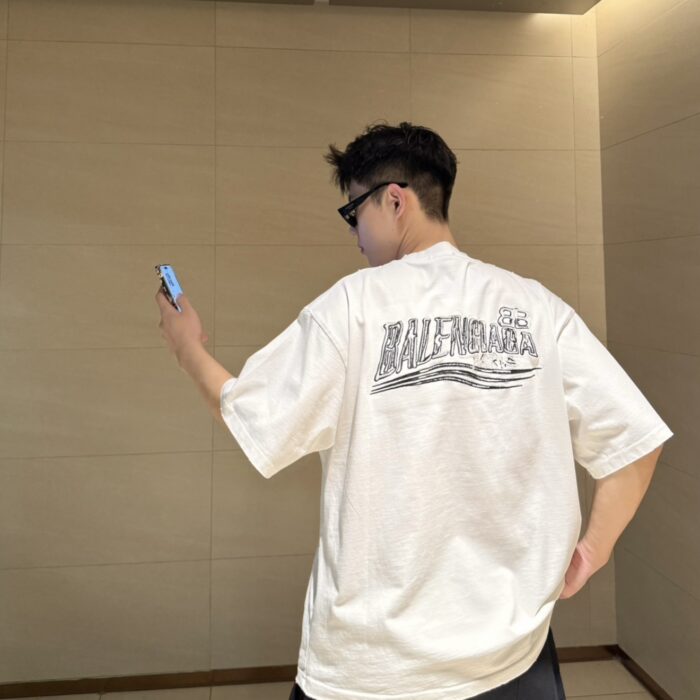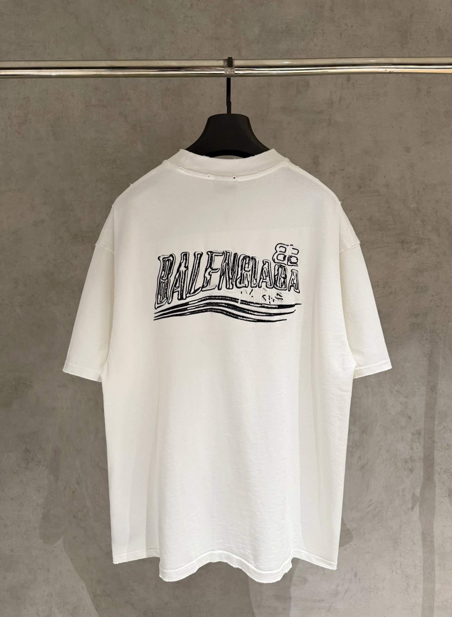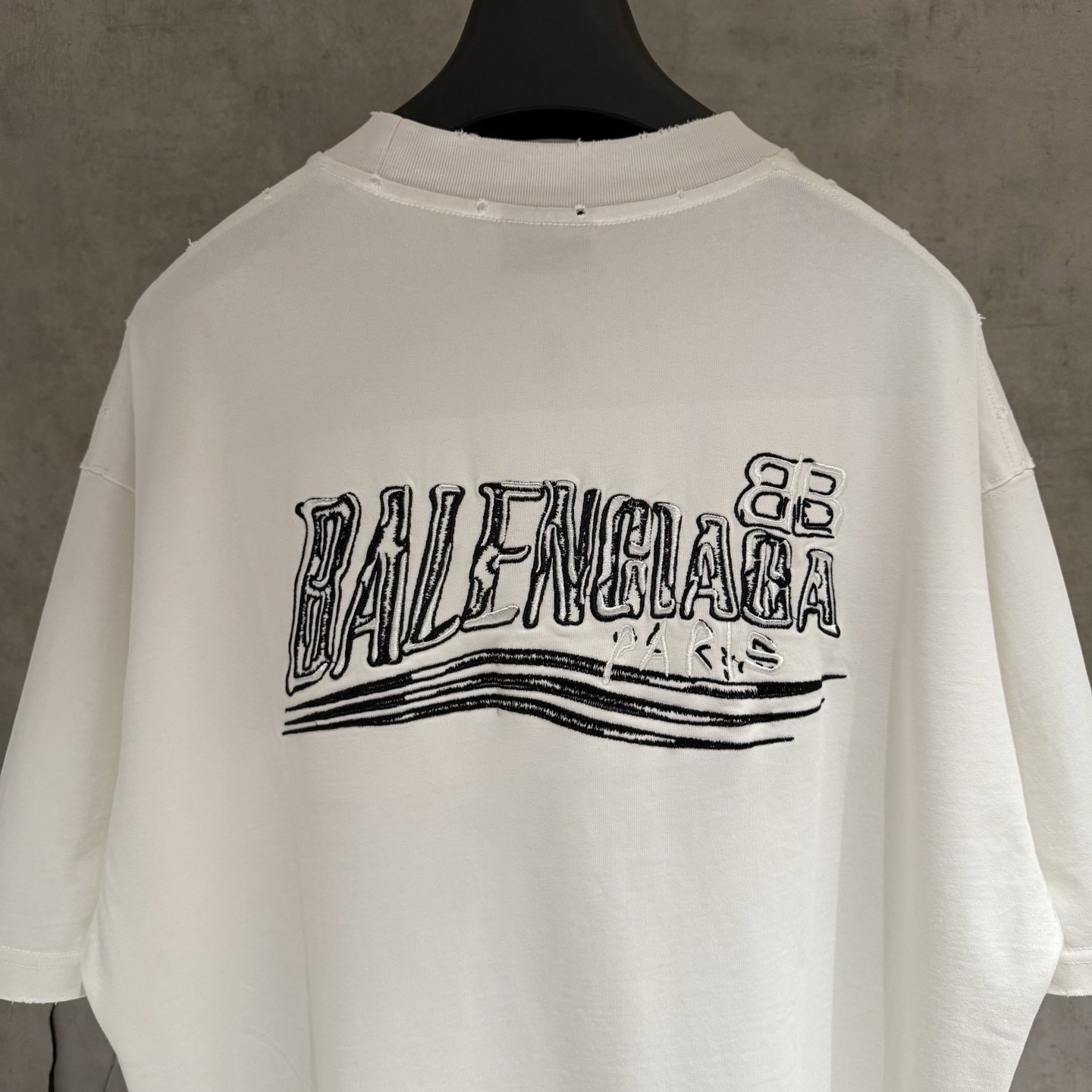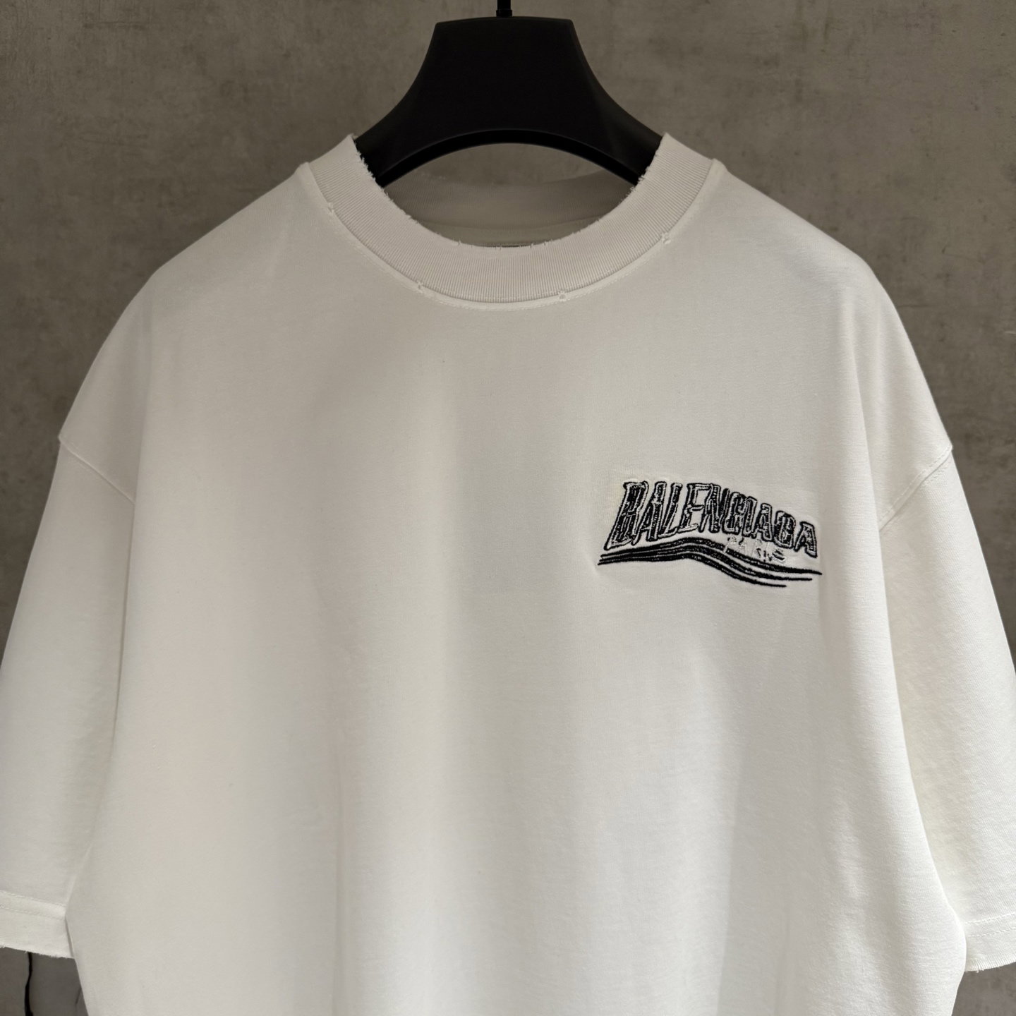 Balenciaga Embroidery Letter logo loose Round neck T-shirt White バレンシアガ 刺繍 モジ logo ゆったり クルーネック Tシャツ ホワイト