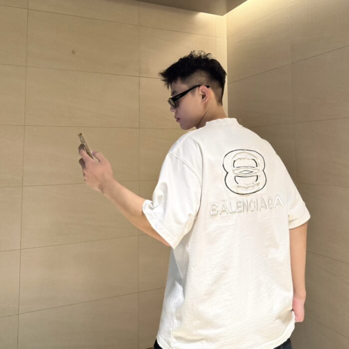 Balenciaga Embroidery Letter logo loose Round neck T-shirt White バレンシアガ 刺繍 モジ logo ゆったり クルーネック Tシャツ ホワイト