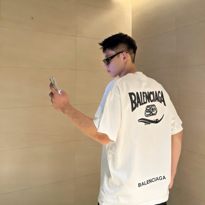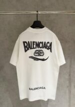 Balenciaga Embroidery Letter pattern logo loose Round neck T-shirt White バレンシアガ 刺繍 モジ パターン logo ゆったり クルーネック Tシャツ ホワイト