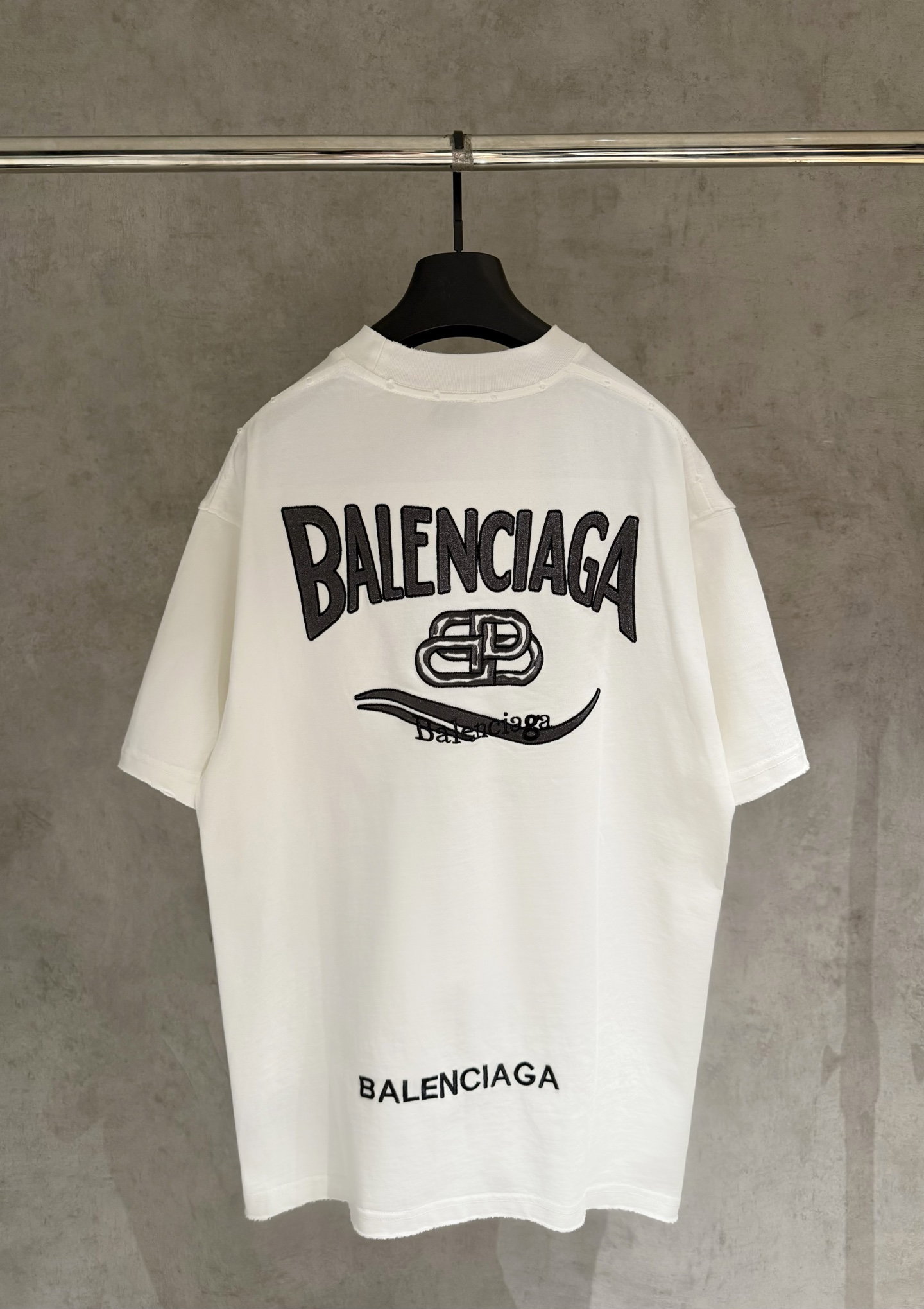 Balenciaga Embroidery Letter logo loose Round neck T-shirt Washed Black バレンシアガ 刺繍 モジ logo ゆったり クルーネック Tシャツ ウォッシュドブラック