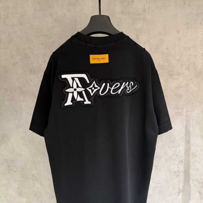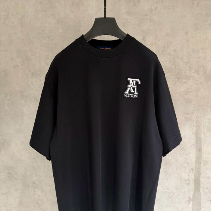 Louis Vuitton patch Embroidery Letter pattern loose Round neck T-shirt Black ルイ ヴィトン アップリケ 刺繍 モジ パターン ゆったり クルーネック Tシャツ ブラック