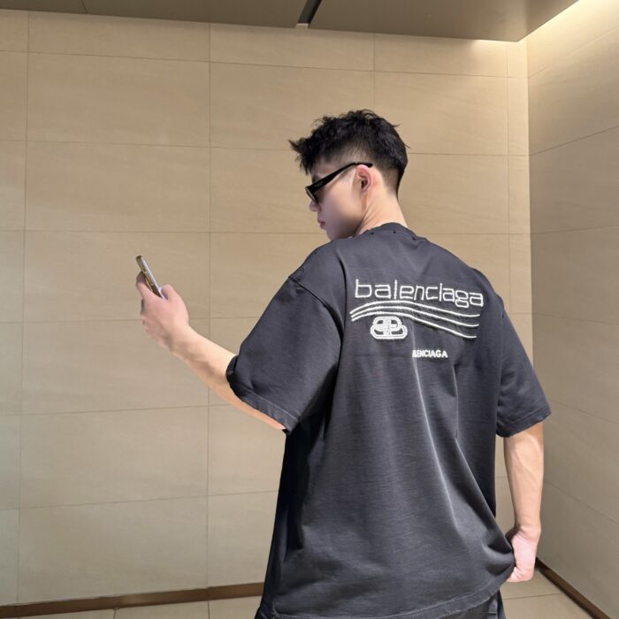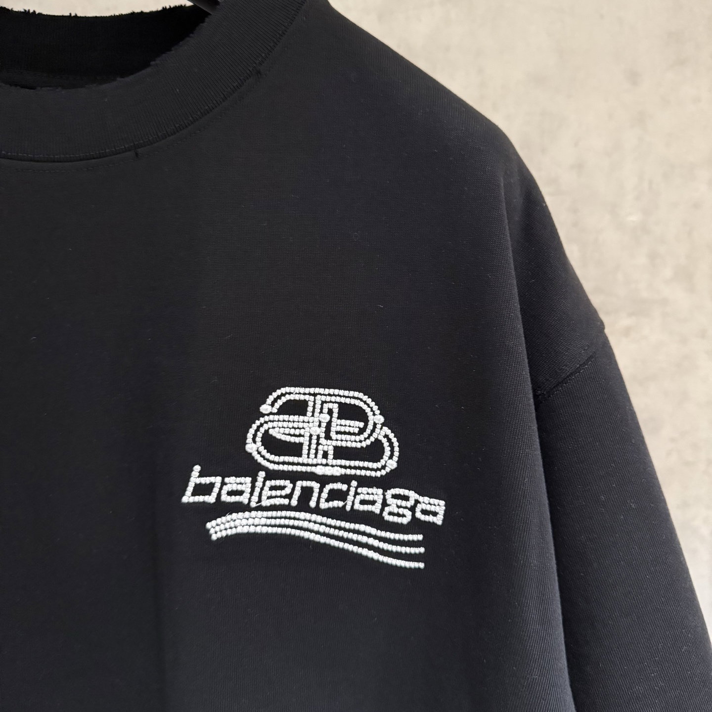 Balenciaga Embroidery logo loose Round neck T-shirt Black バレンシアガ 刺繍 logo ゆったり クルーネック Tシャツ ブラック