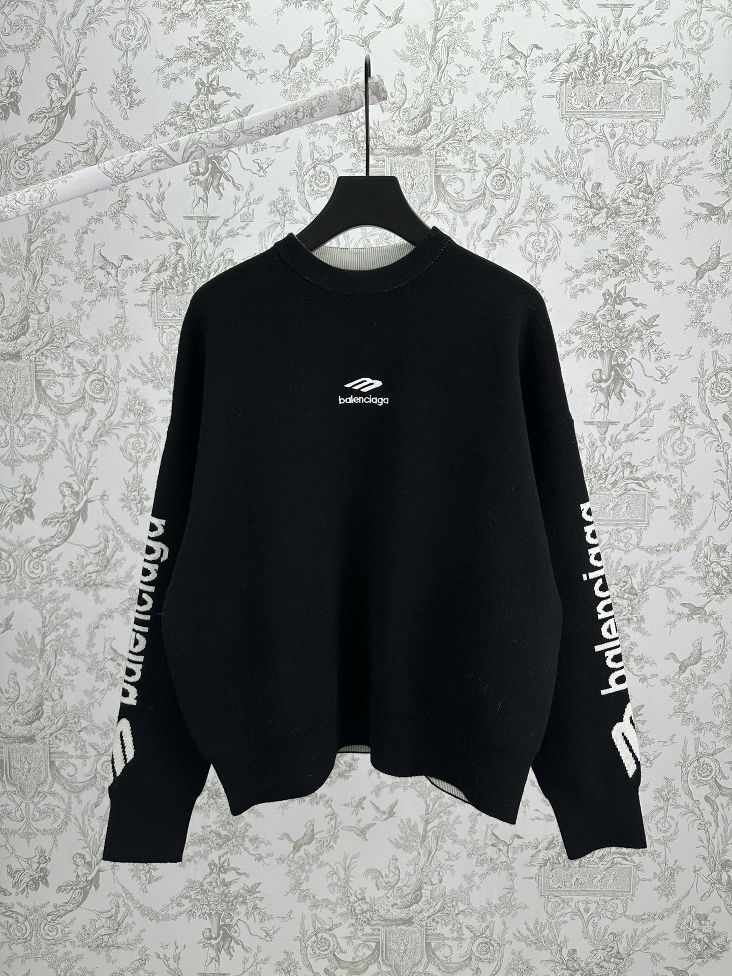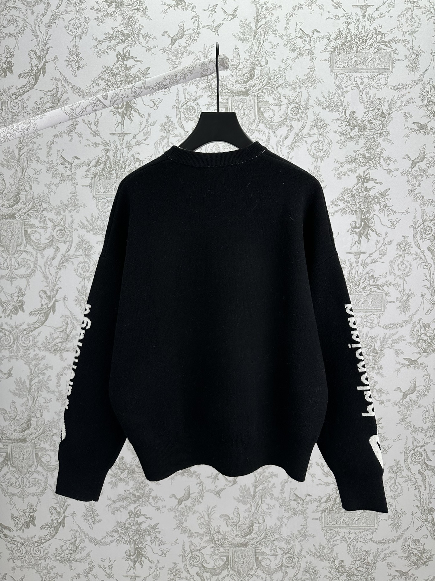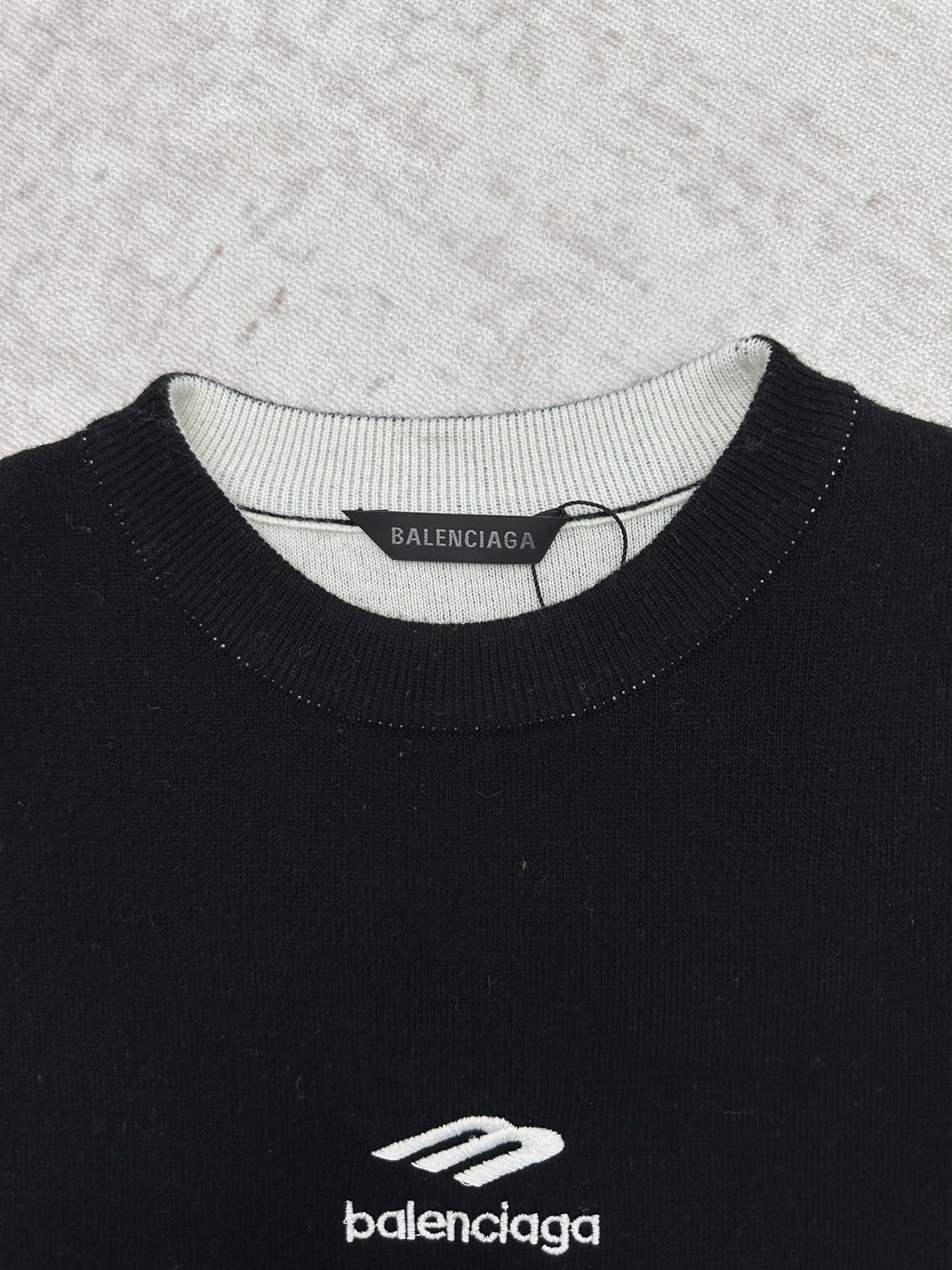 BALENCIAGA Embroidery logo Round neck knit sweater Black バレンシアガ 刺繍 logo クルーネック ニットセーター ブラック