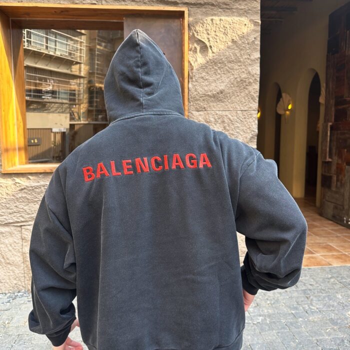 Balenciaga Embroidery Red LOGO loose Hoodie Black/Gray バレンシアガ 刺繍レッド LOGO ゆったり パーカー ブラック/グレー