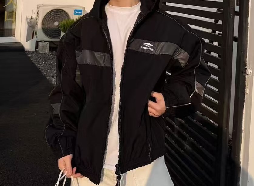 Balenciaga LOGO Print ZIP-UP Windproof Rain Jacket Black バレンシアガ LOGO プリント ジップアップ 防风アウトドアジャケット ブラック