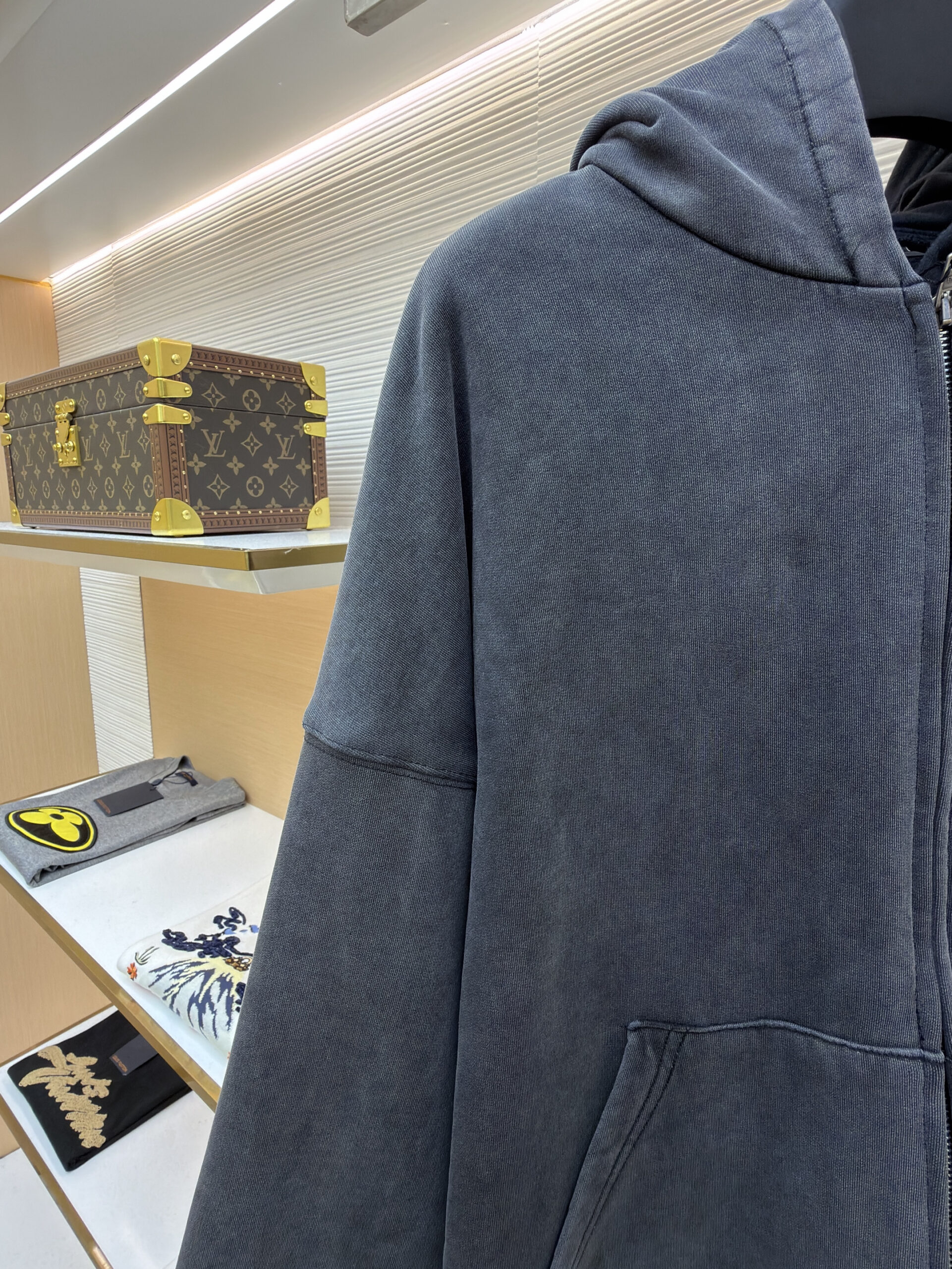LOUIS VUITTON fur collar jacket Gray ルイヴィトン フリンジ ジャケット グレー