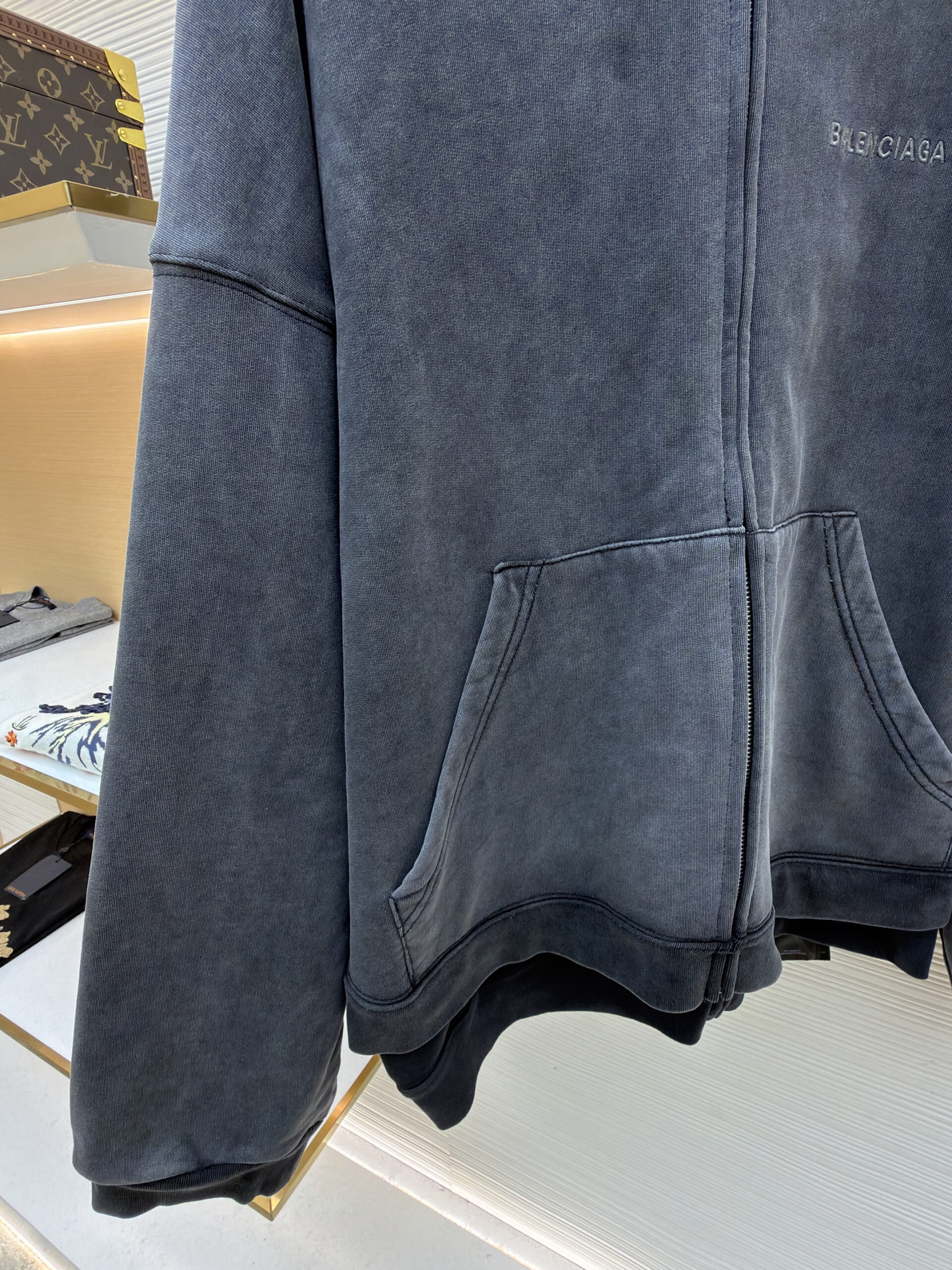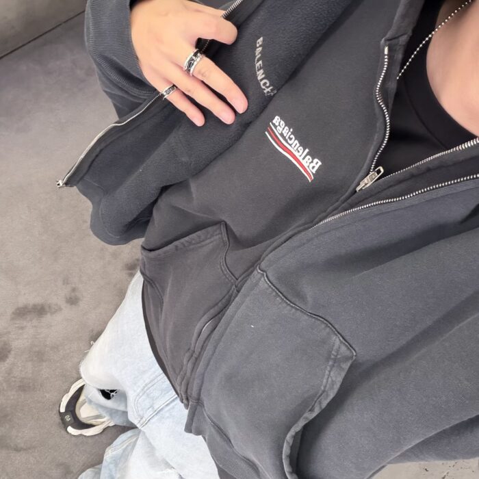 Balenciaga LOGO Two-in-one loose ZIP-UP jacket washed black バレンシアガ LOGO ツーインワン ゆったり ジップアップ ジャケット 洗い黒