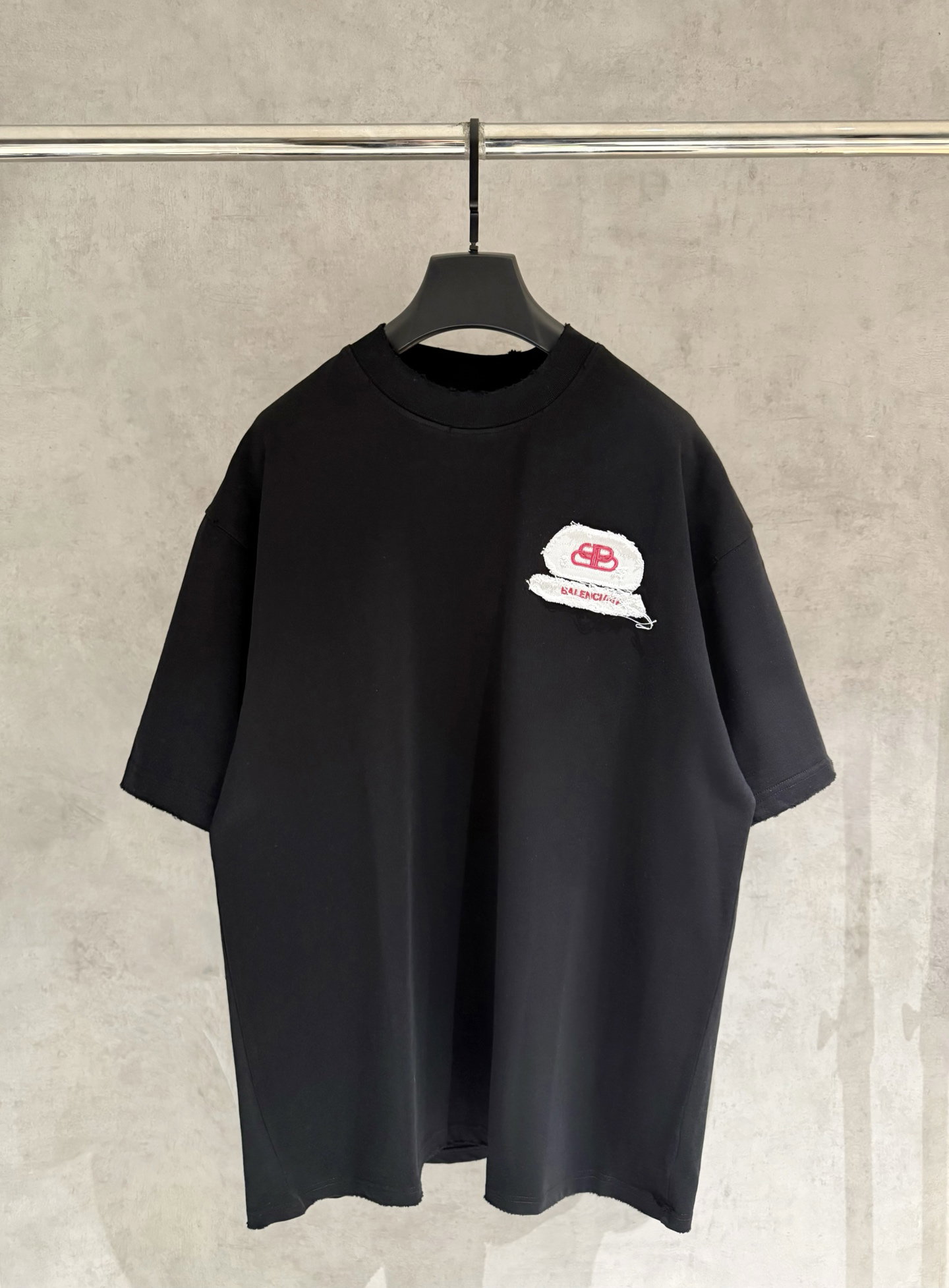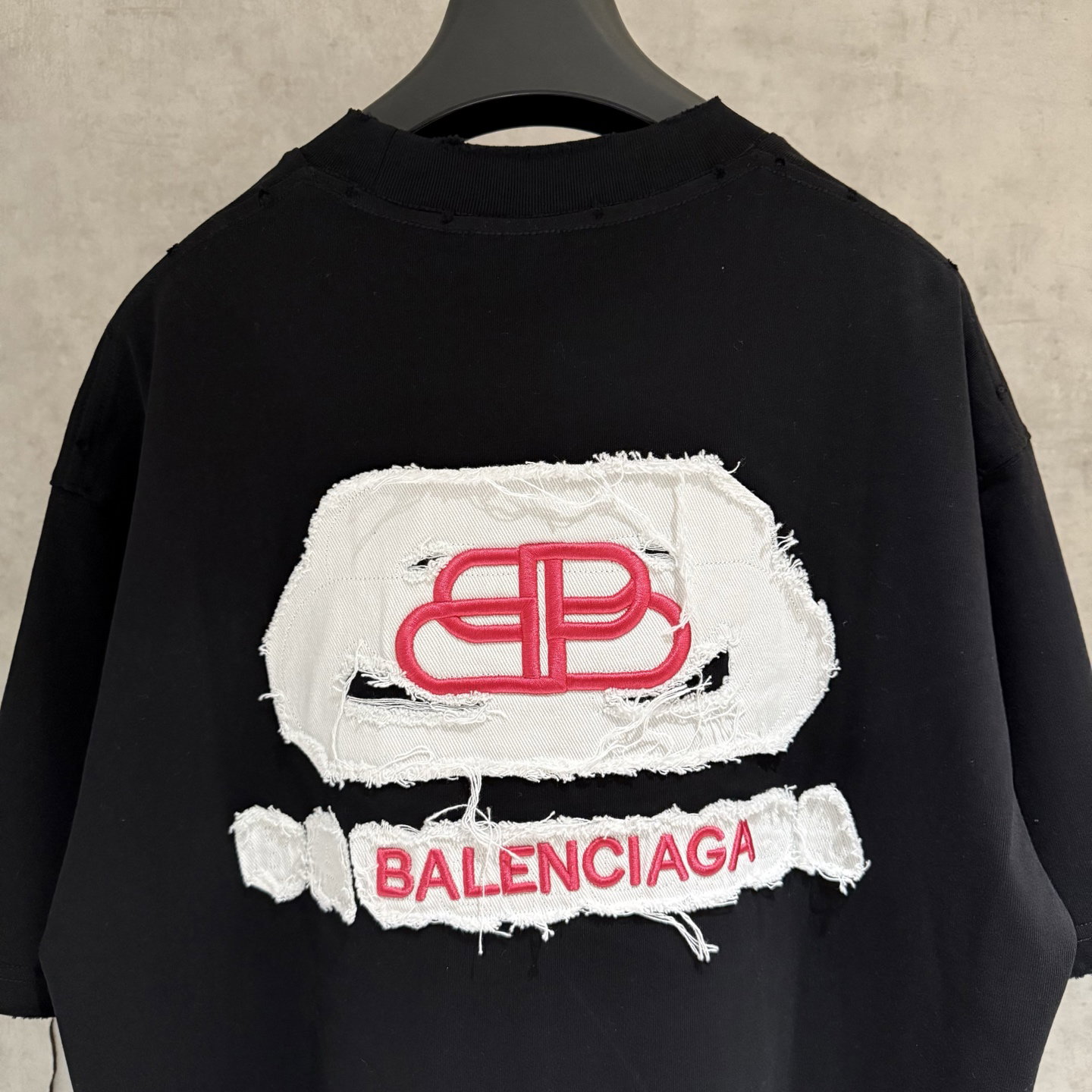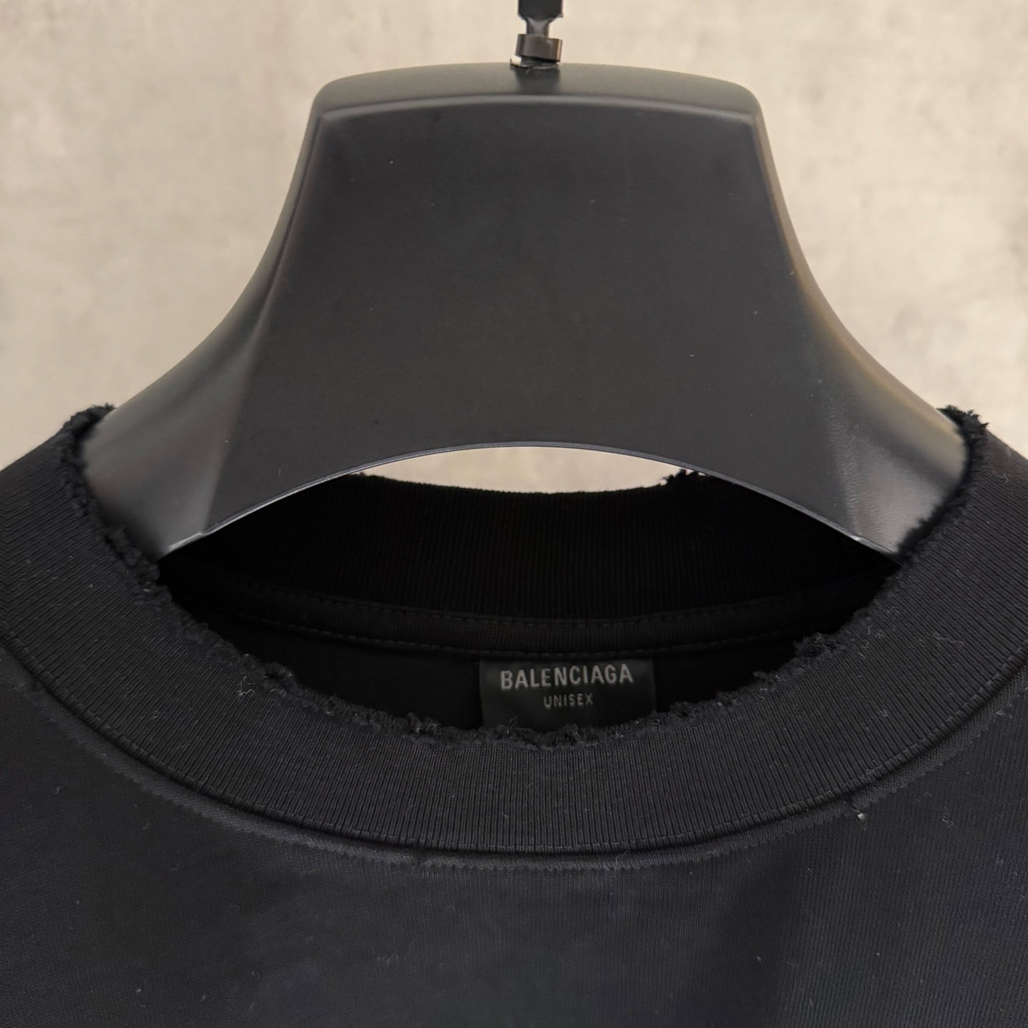 Balenciaga distressed Embroidery Letter logo Round neck T-shirt Black バレンシアガ ディストレス 刺繍 モジ logo クルーネック Tシャツ ブラック