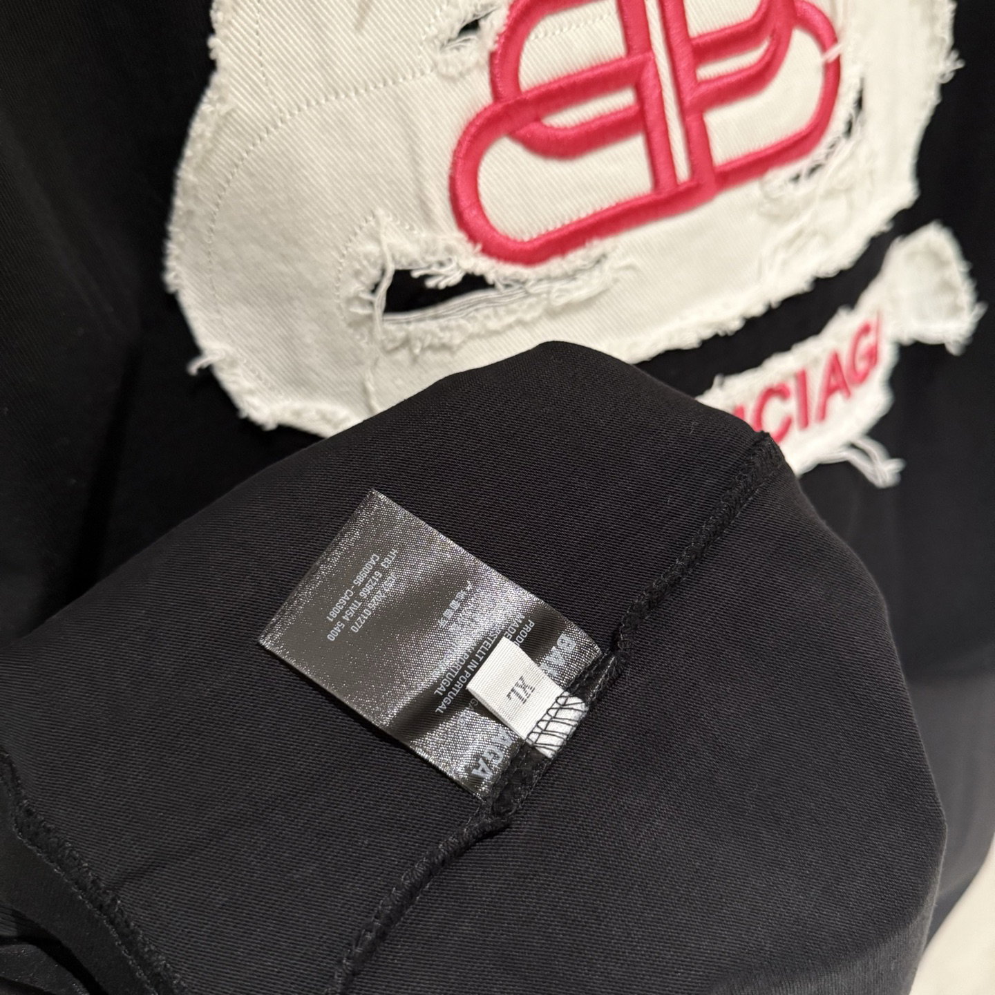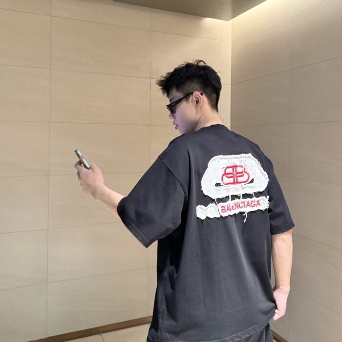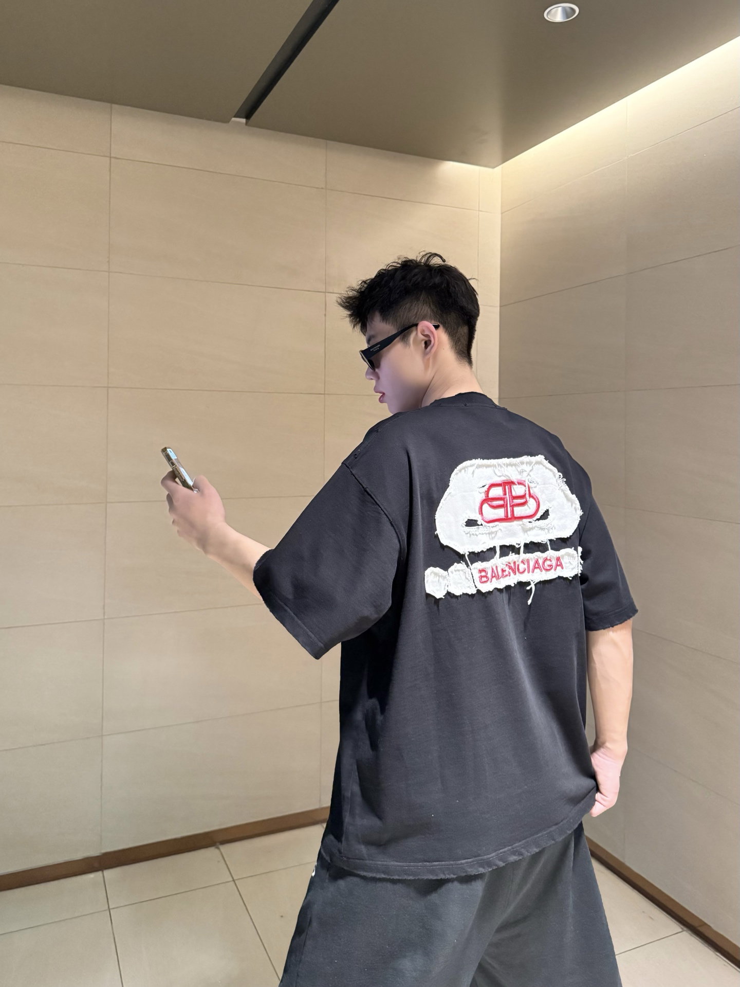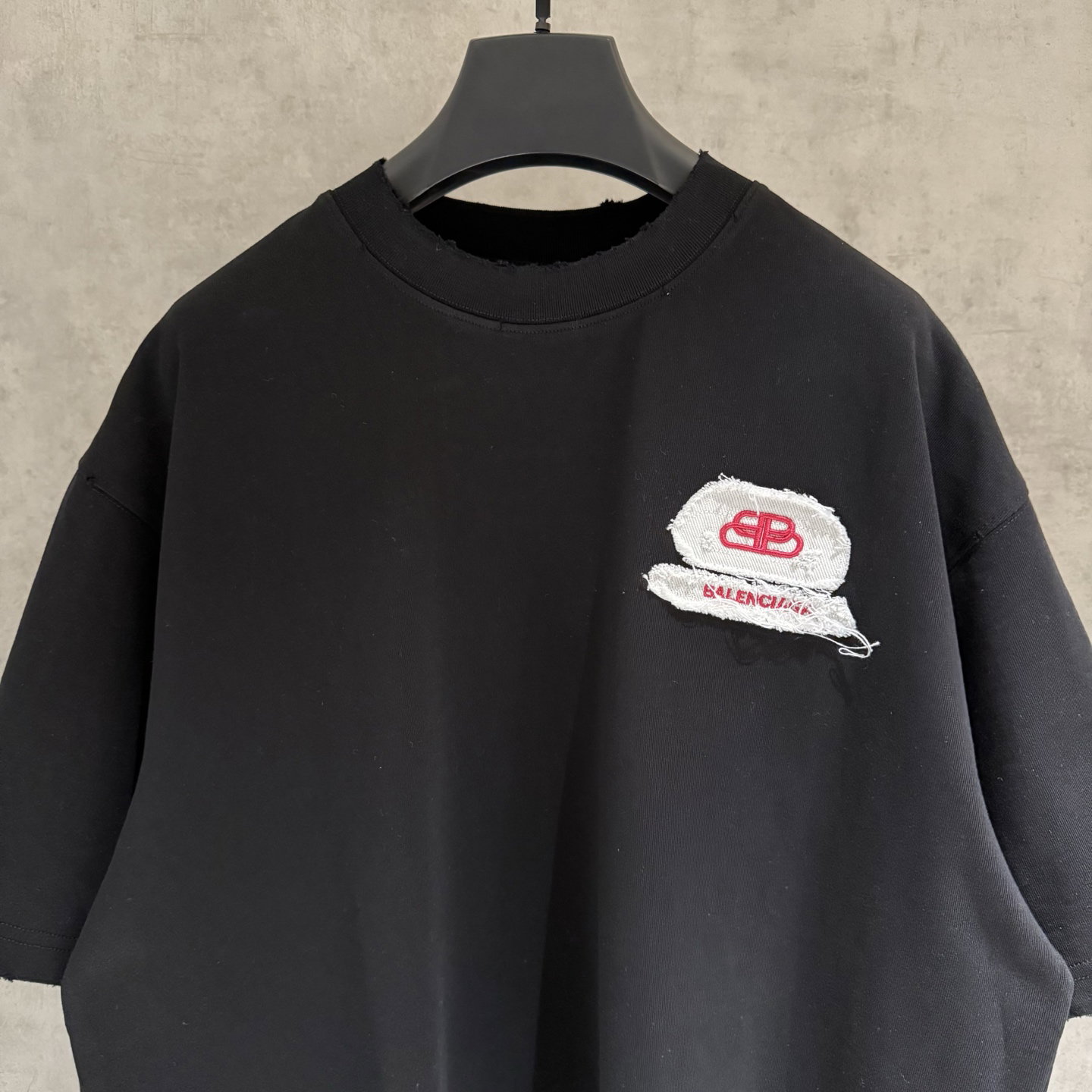 Balenciaga distressed Embroidery Letter logo Round neck T-shirt Black バレンシアガ ディストレス 刺繍 モジ logo クルーネック Tシャツ ブラック