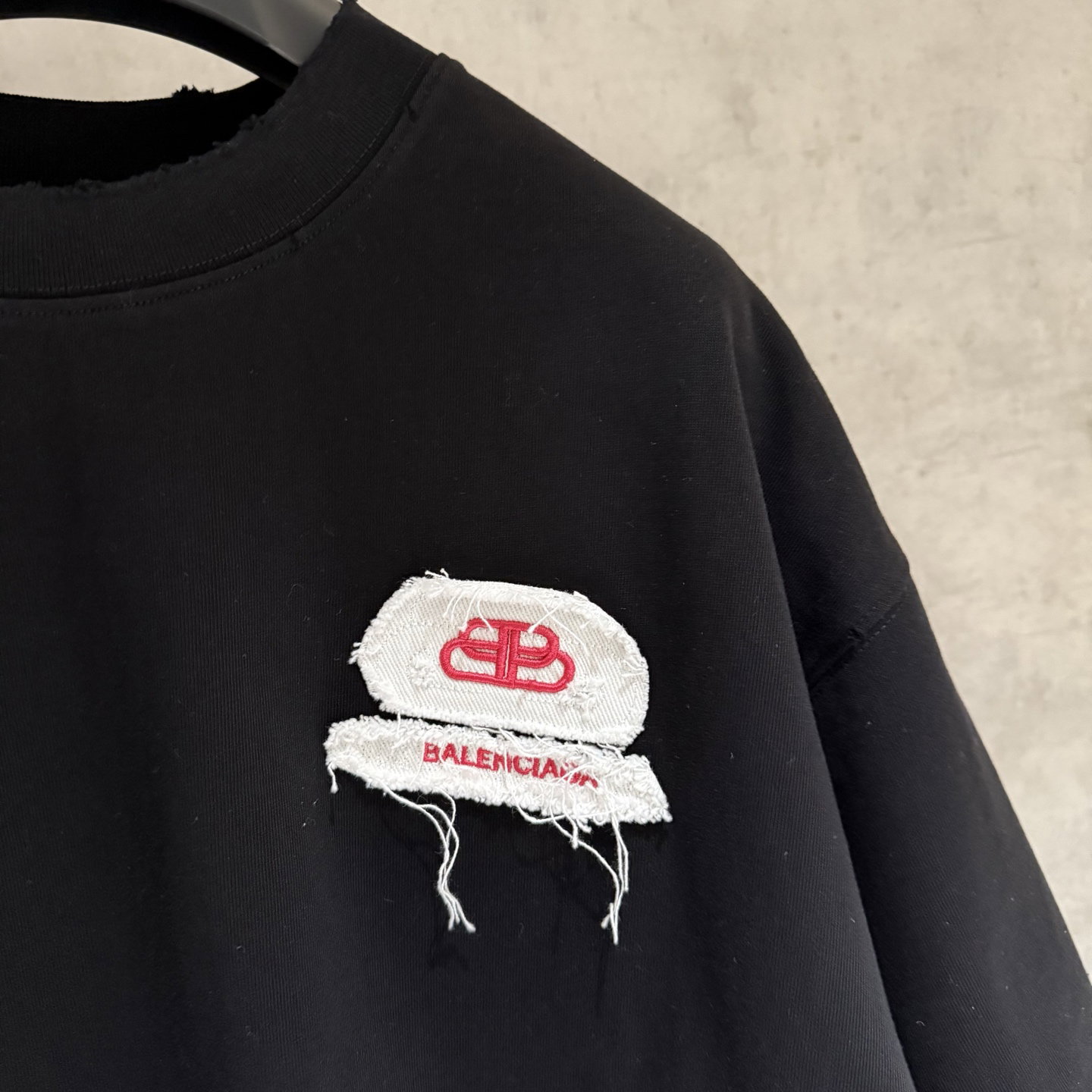 Balenciaga patch Embroidery Letter logo pattern loose Round neck T-shirt Black バレンシアガ アップリケ 刺繍 モジ logo パターン ゆったり クルーネック Tシャツ ブラック