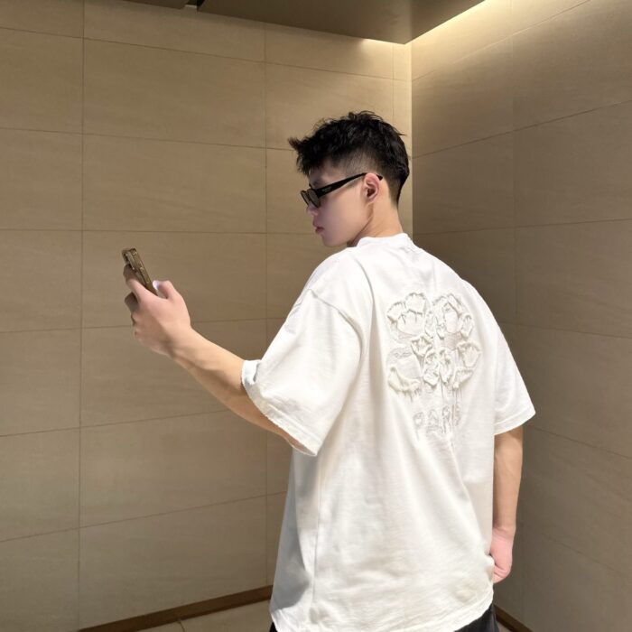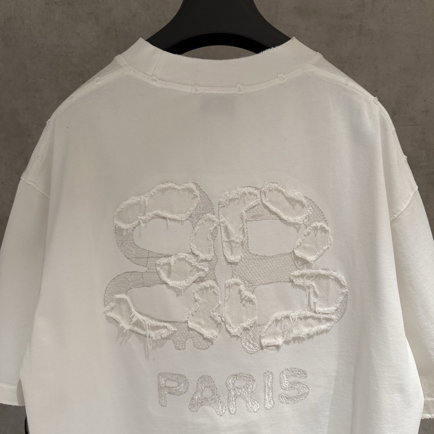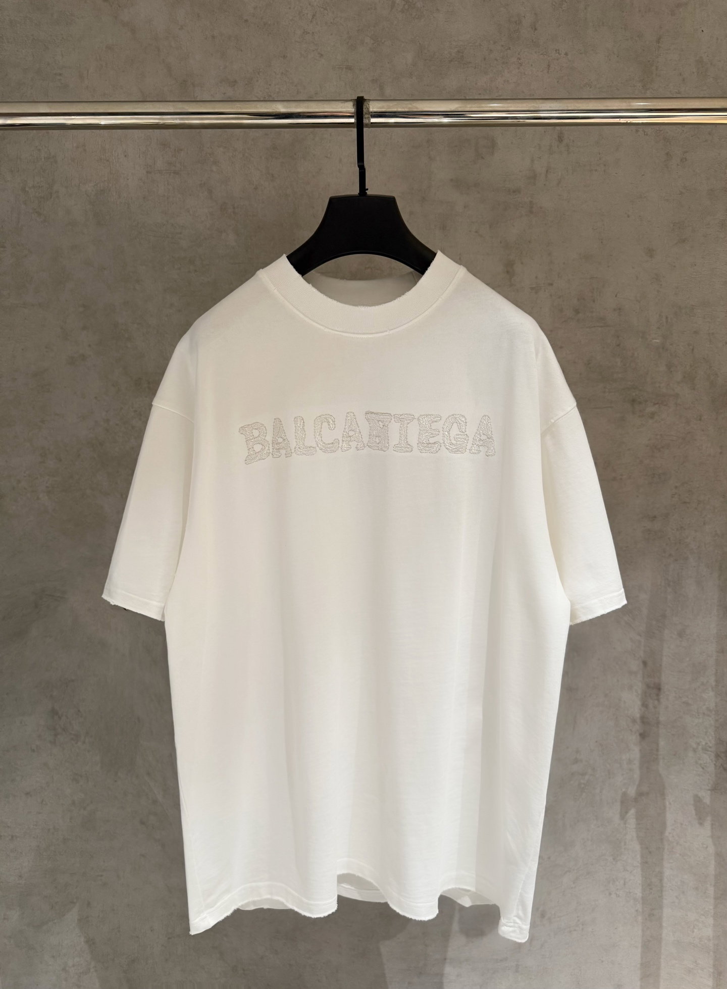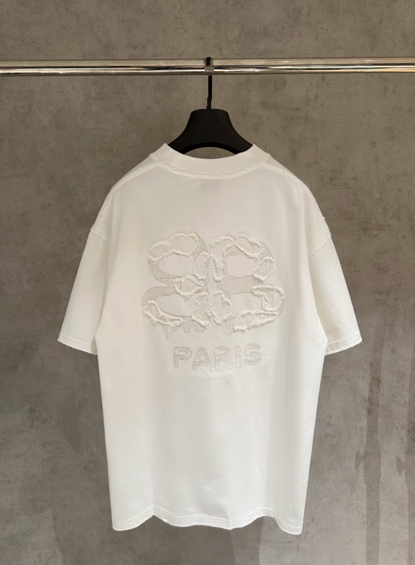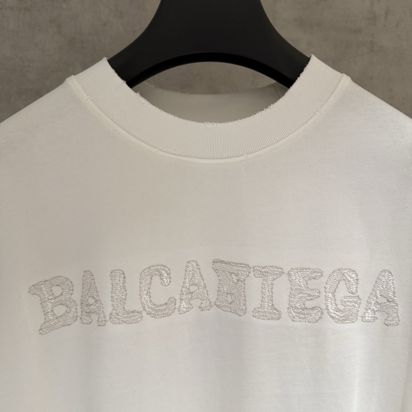 Balenciaga patch Embroidery Letter logo pattern loose Round neck T-shirt White バレンシアガ アップリケ 刺繍 モジ logo パターン ゆったり クルーネック Tシャツ ホワイト