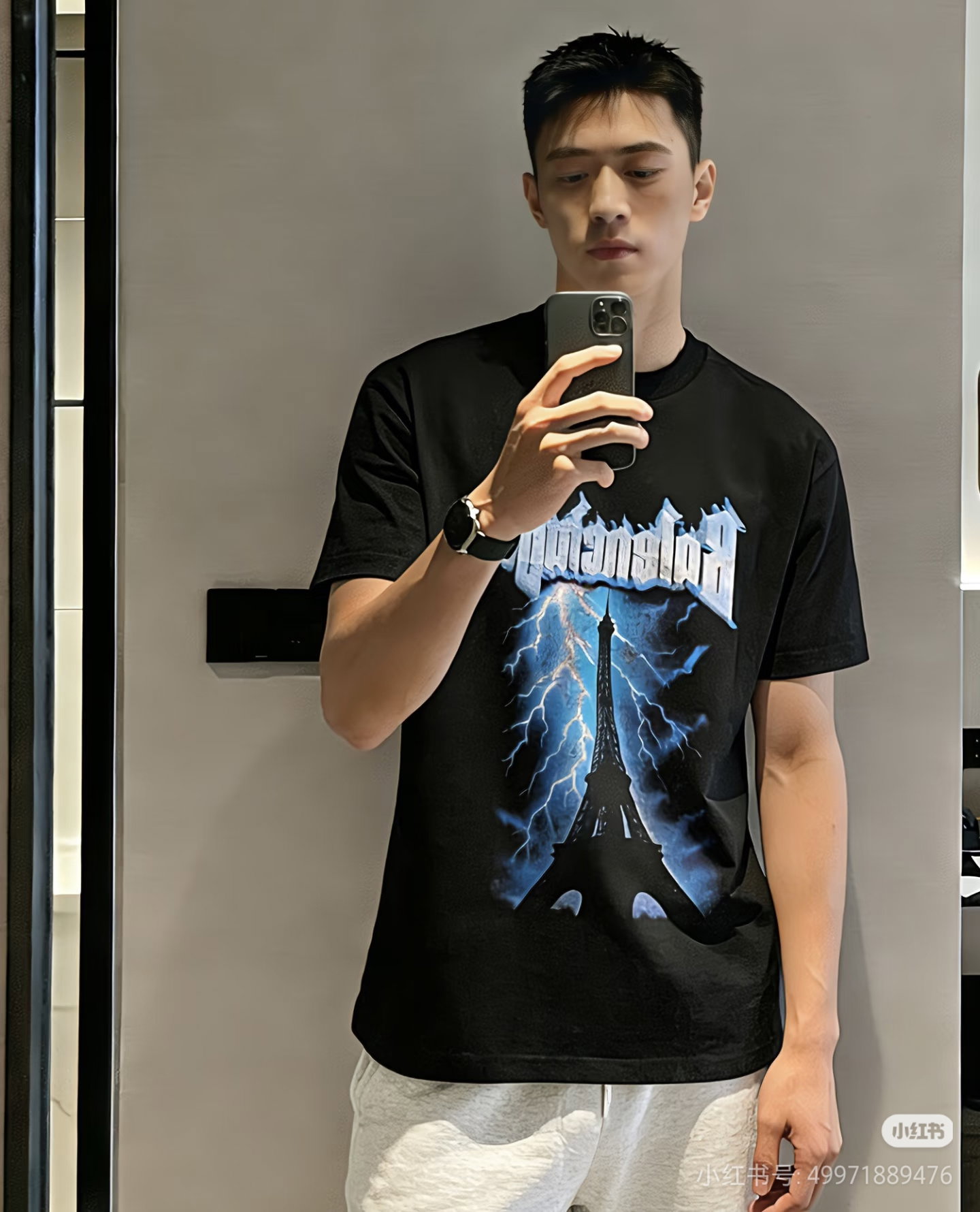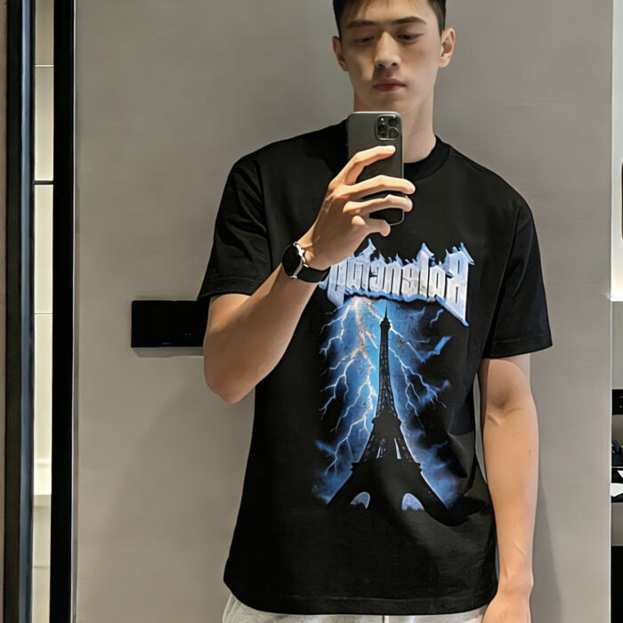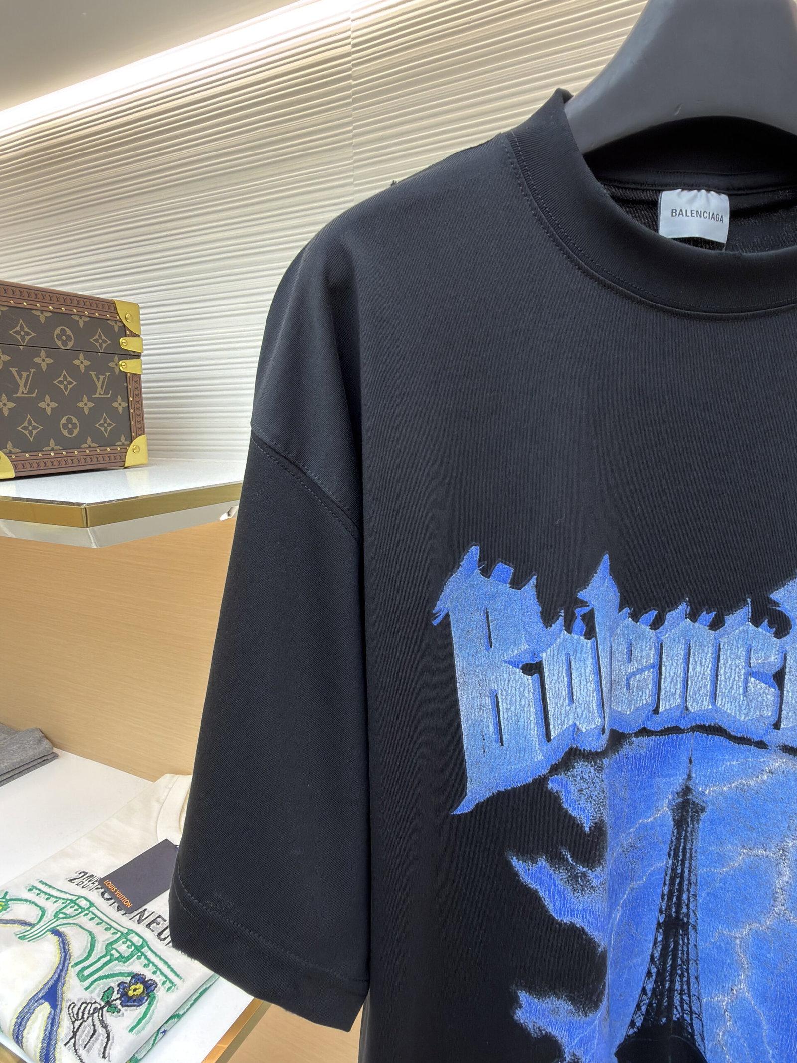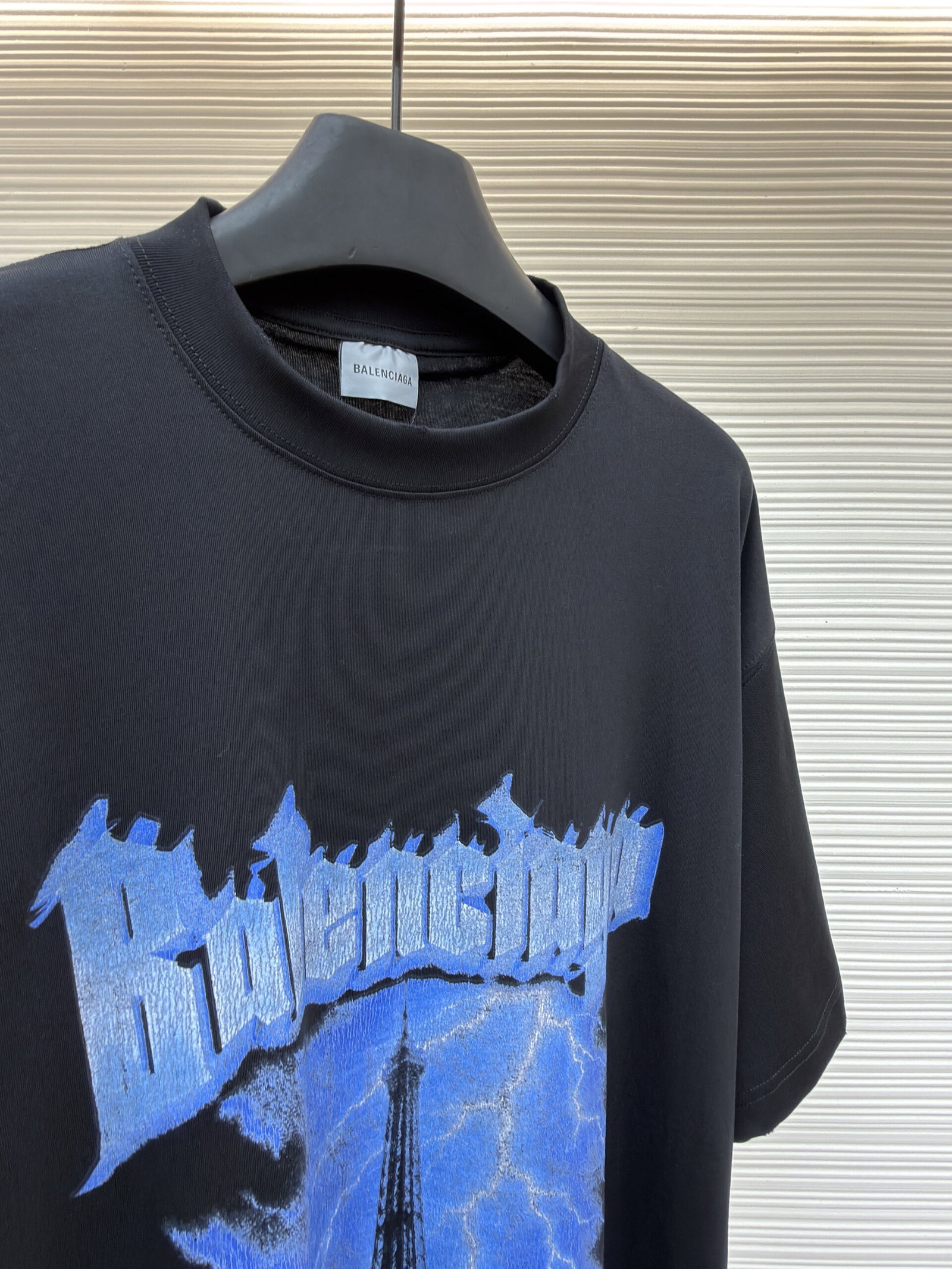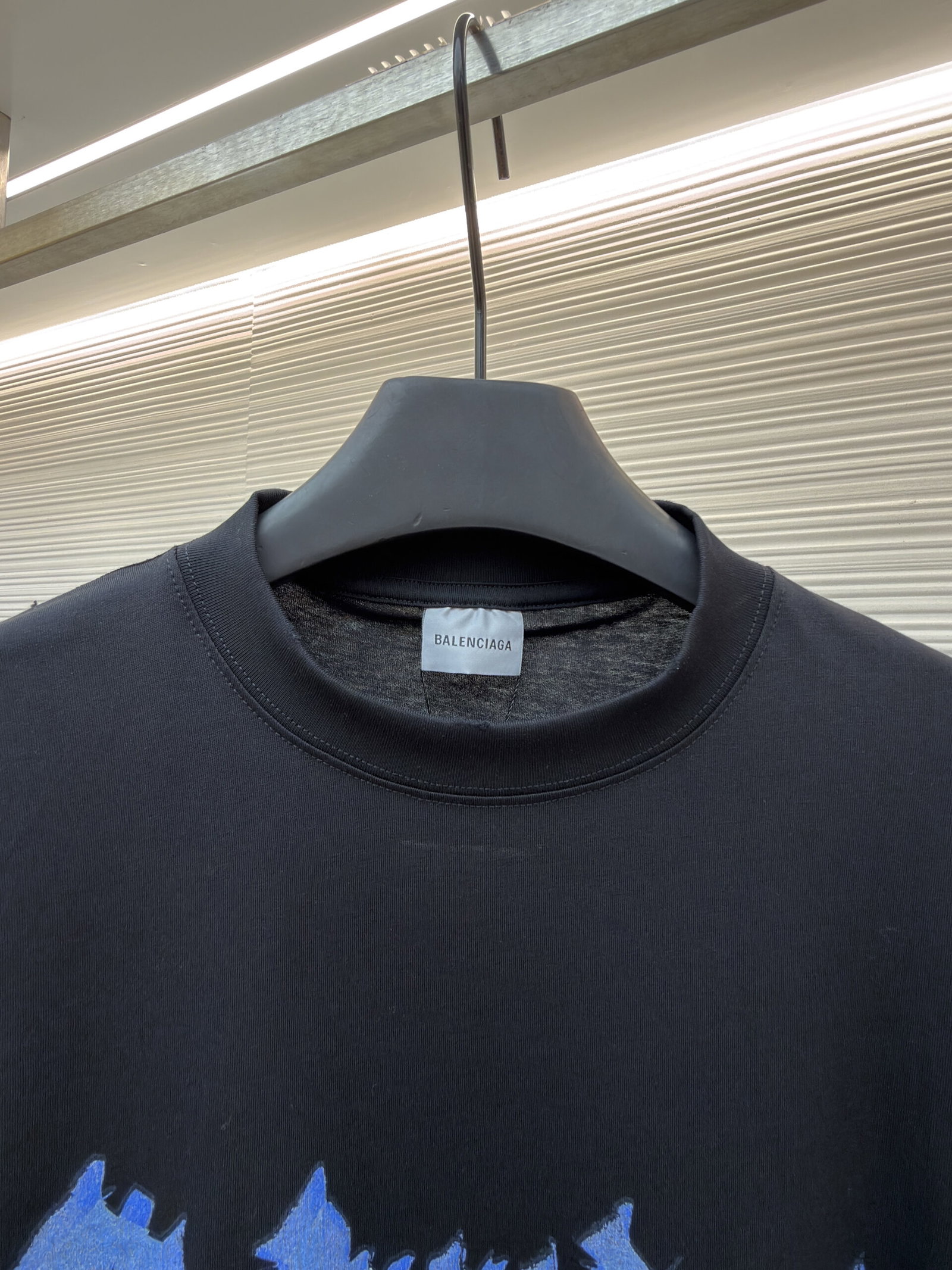 Balenciaga Print Blue pattern loose Round neck T-shirt Black バレンシアガ プリント ブルー パターン ゆったり クルーネック Tシャツ ブラック