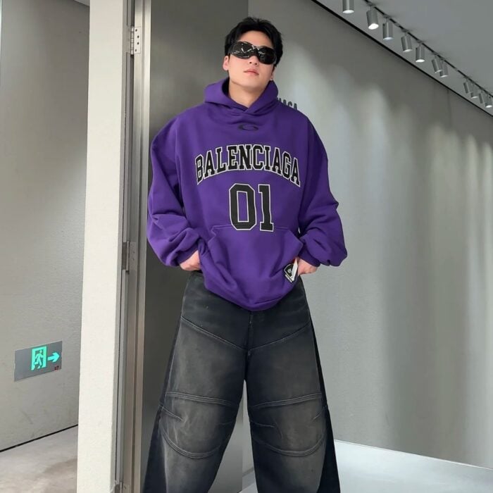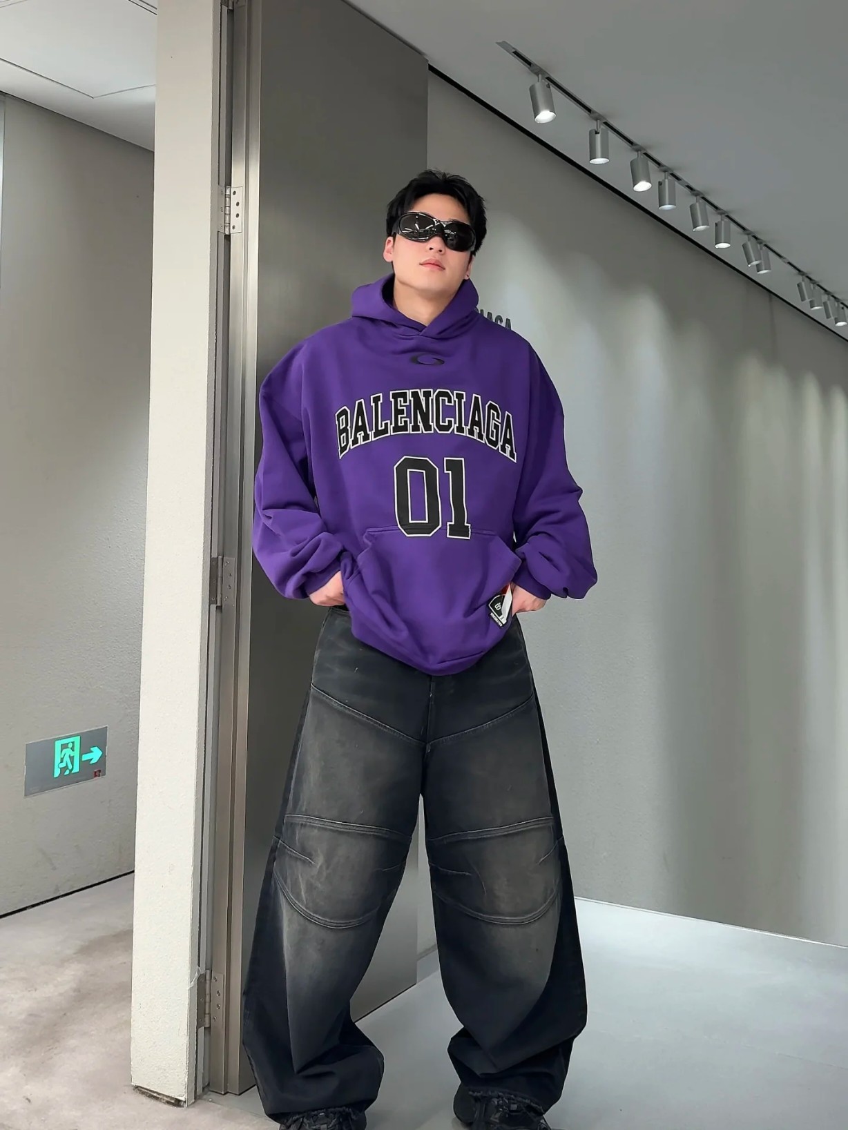 Balenciaga Print Letter number loose Hoodie Purple バレンシアガ プリント モジ ナンバー ゆったり パーカー パープル