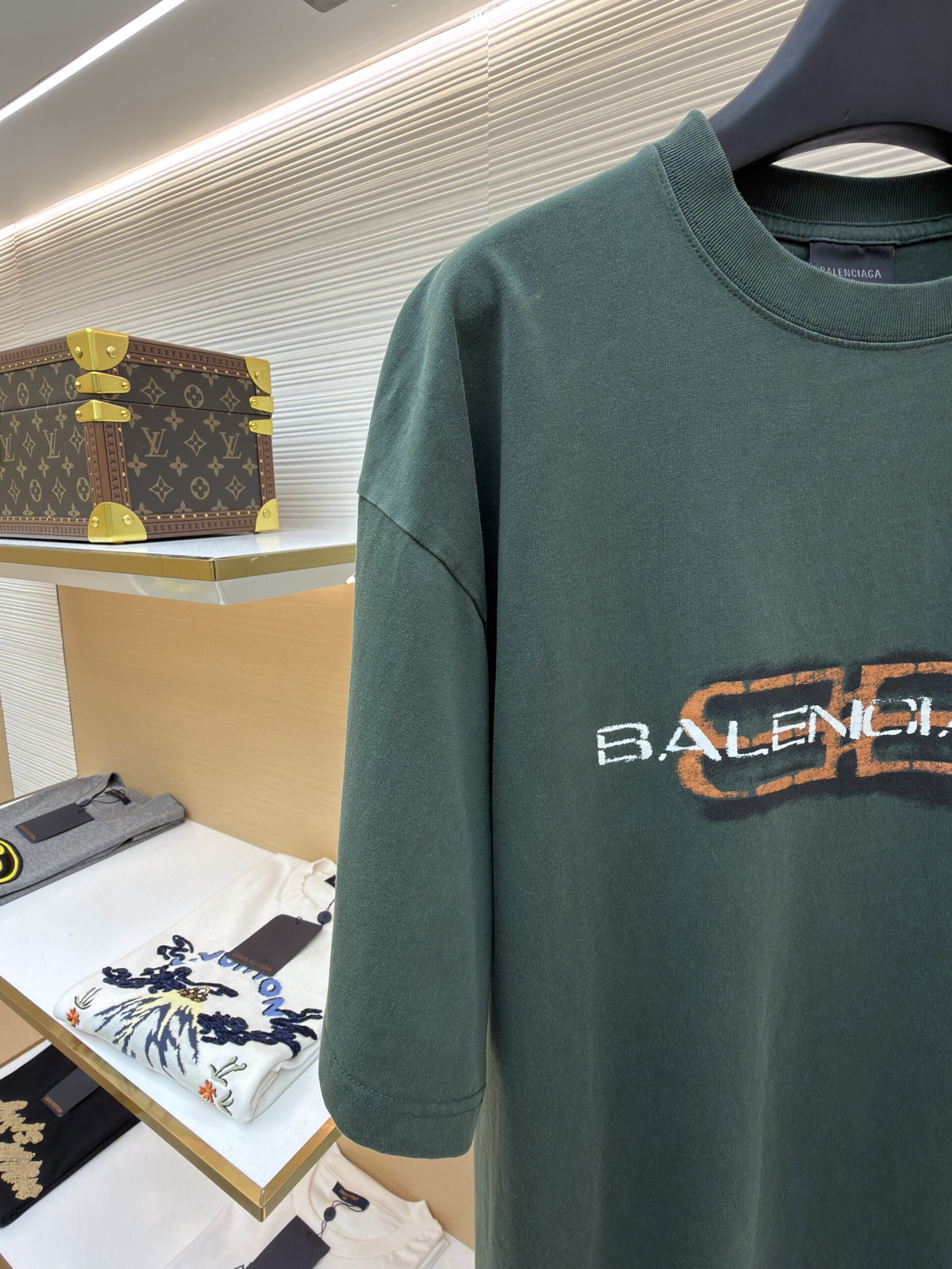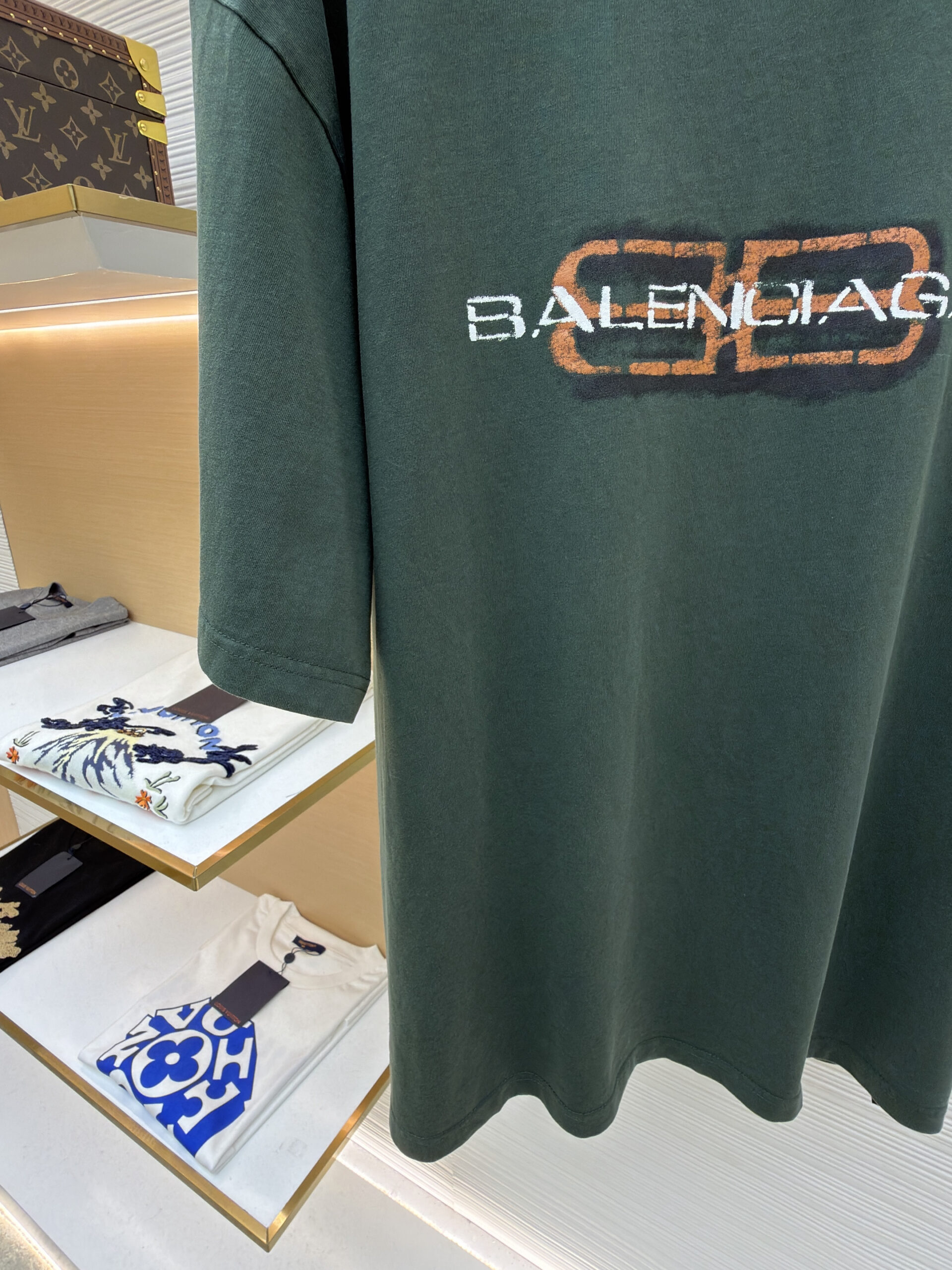Balenciaga Print LOGO Round neck T-shirt dark Green バレンシアガ プリント LOGO クルーネック Tシャツ ダーク グリーン