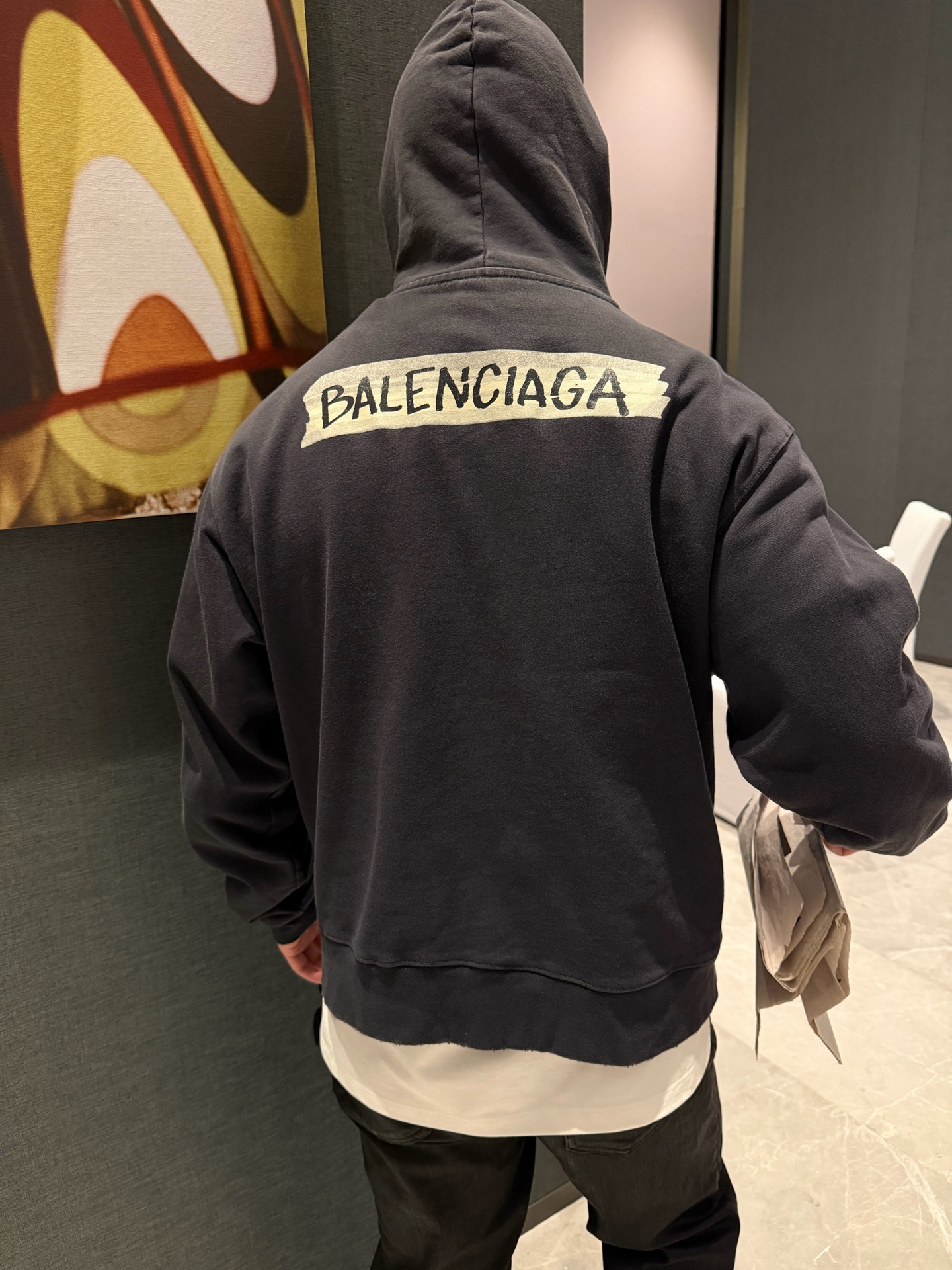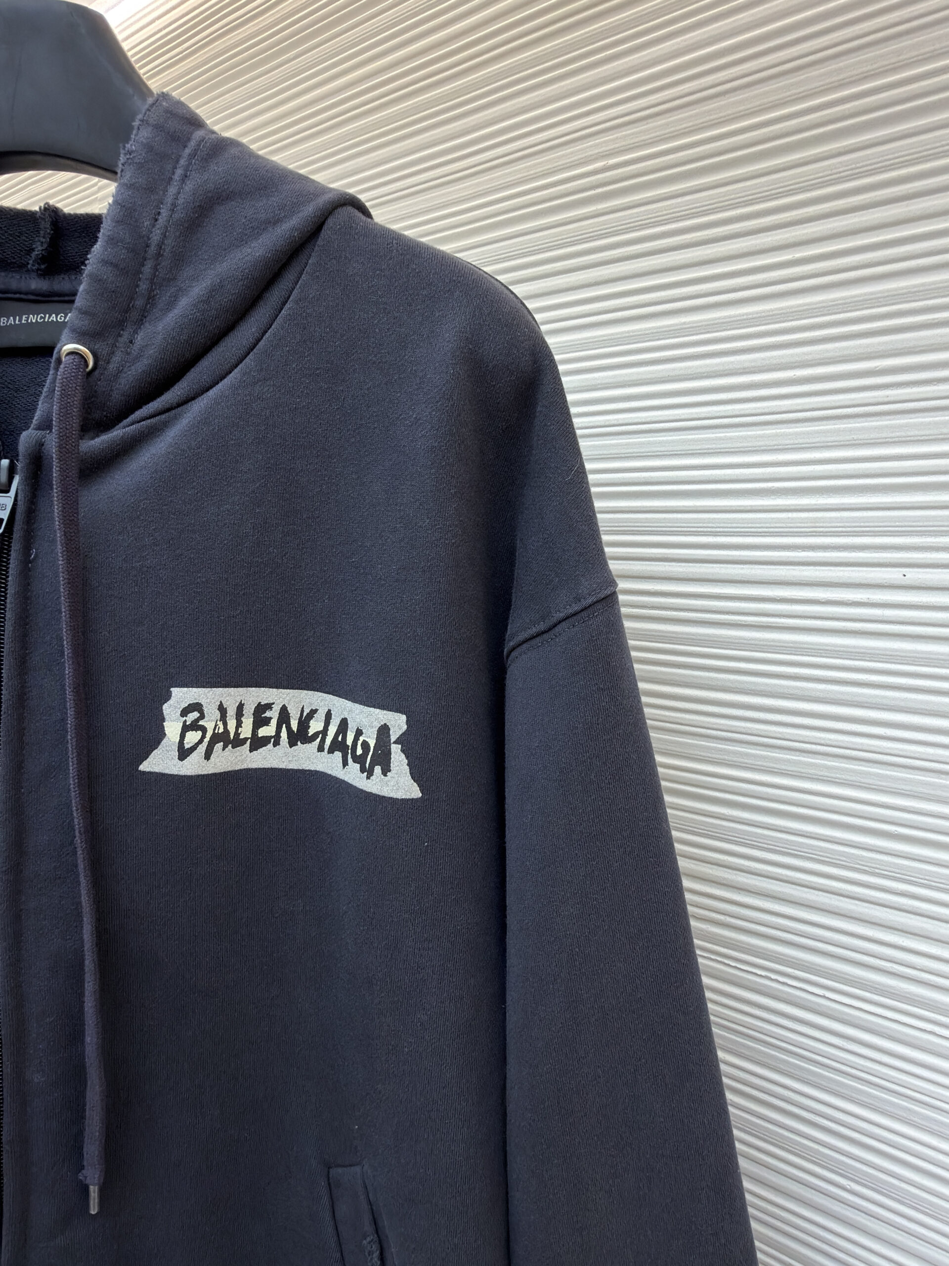 Balenciaga Print LOGO ZIP-UP HOODIE washed black バレンシアガ プリント LOGO ジップアップパーカー ブラック