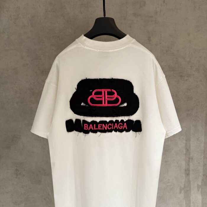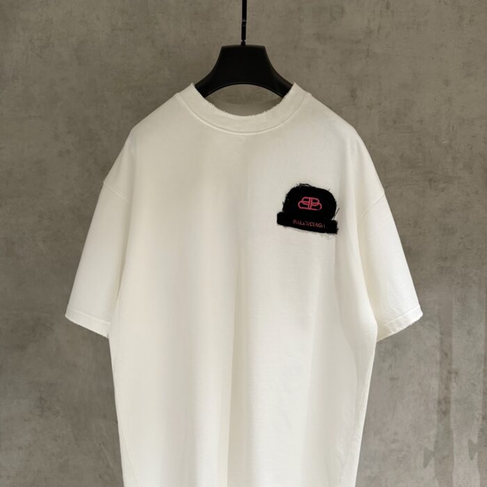 Balenciaga patch Embroidery Letter logo pattern loose Round neck T-shirt White バレンシアガ アップリケ 刺繍 モジ logo パターン ゆったり クルーネック Tシャツ ホワイト