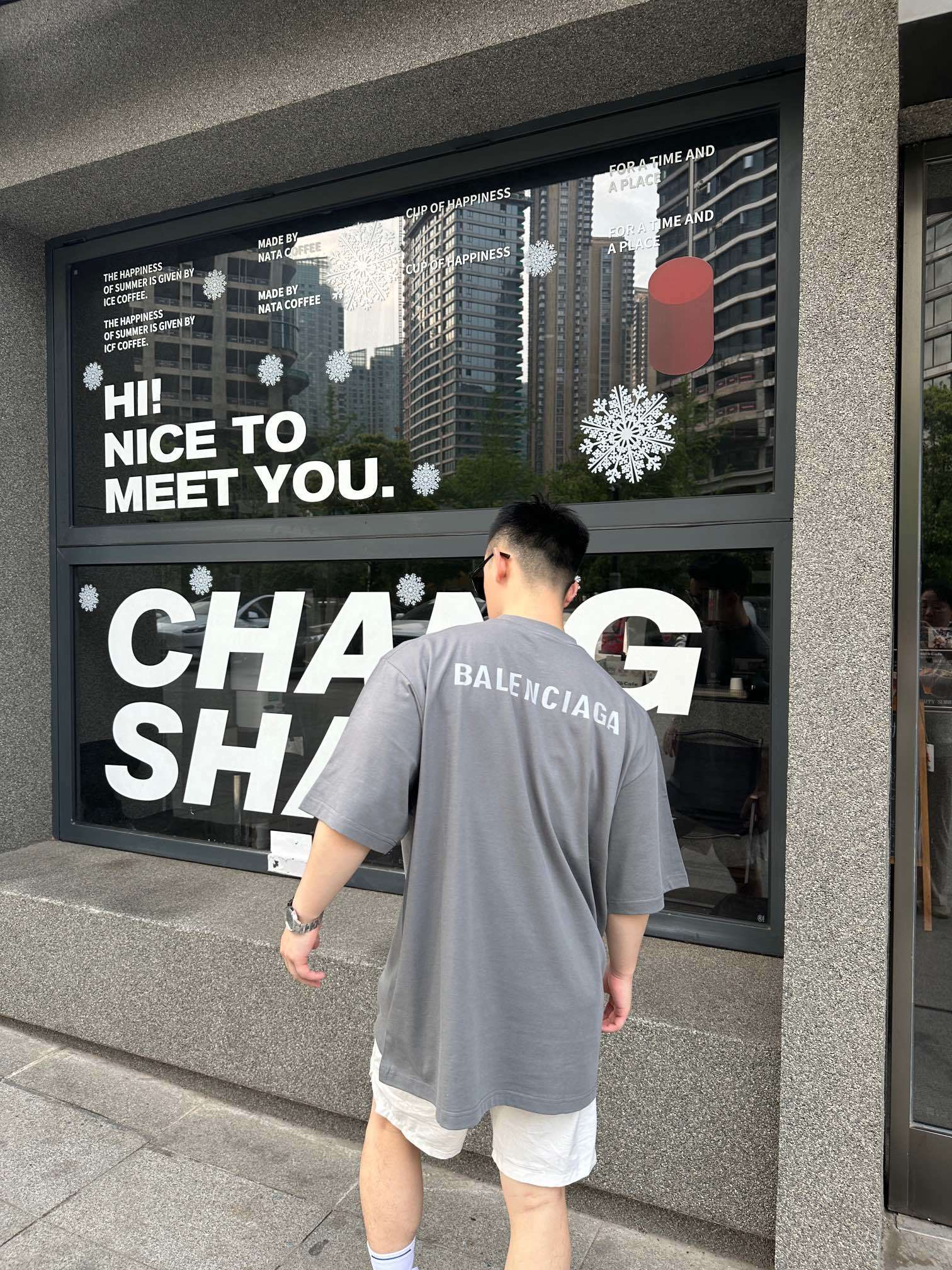 Balenciaga reflective LOGO Round neck T-shirt Gray バレンシアガ 反射する LOGO クルーネック Tシャツ グレー