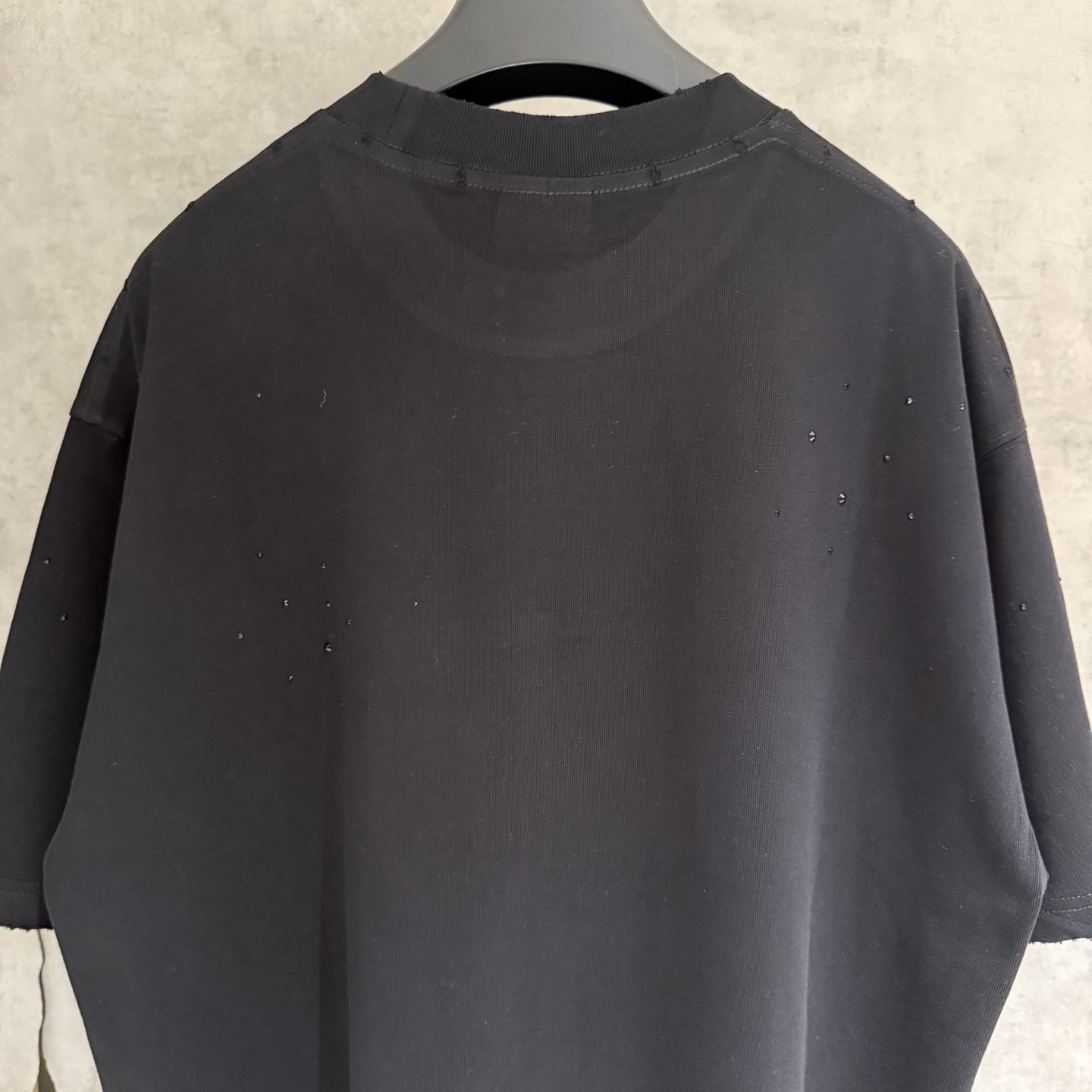 Balenciaga rhinestone Embroidery Letter logo loose Round neck T-shirt Black バレンシアガ ラインストーン 刺繍 モジ logo ゆったり クルーネック Tシャツ ブラック
