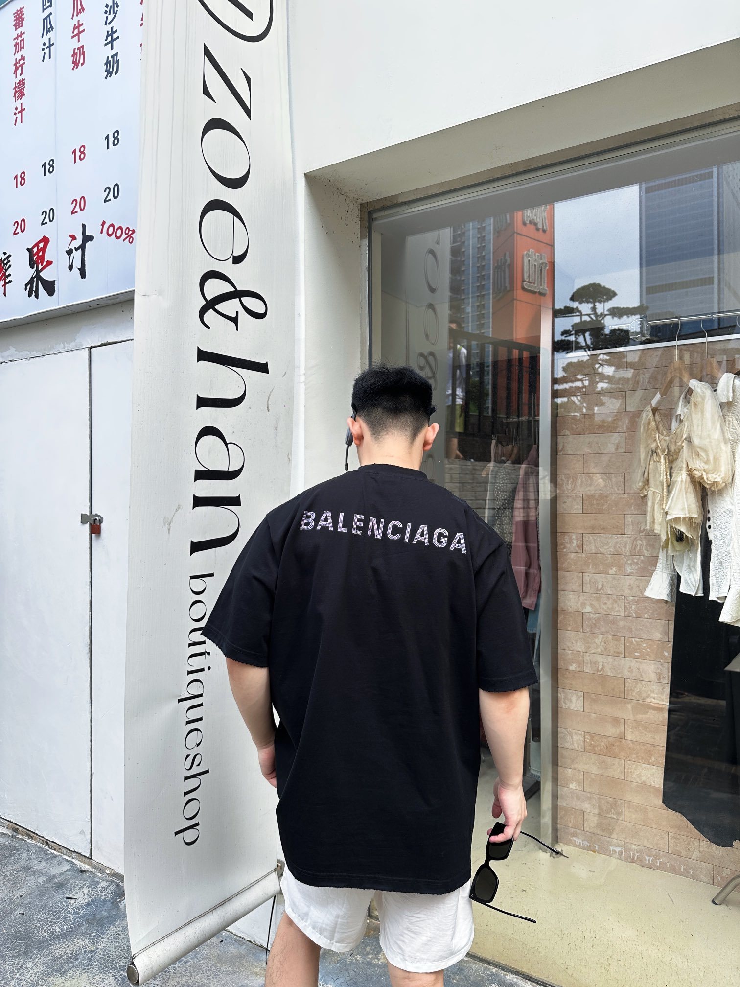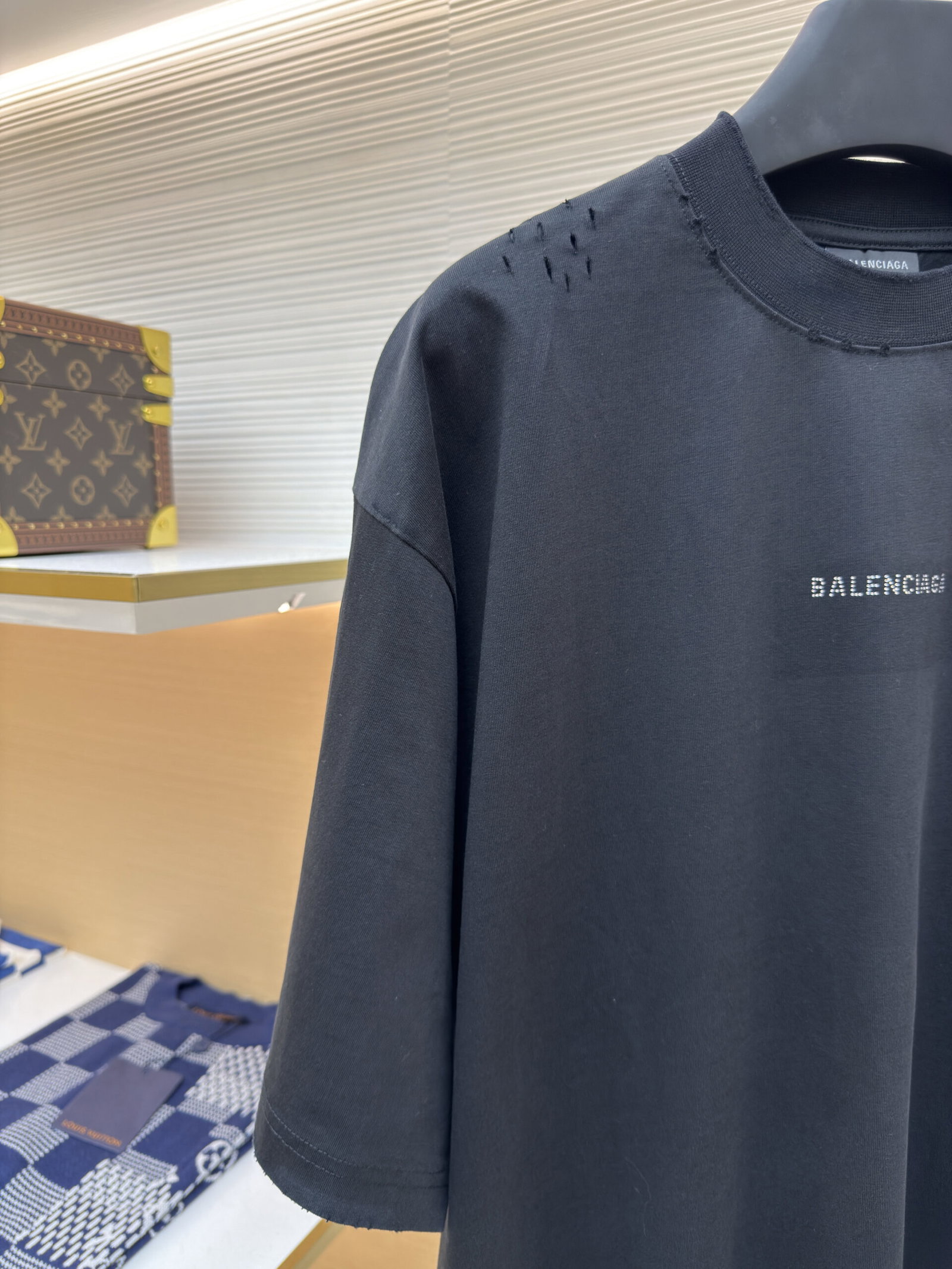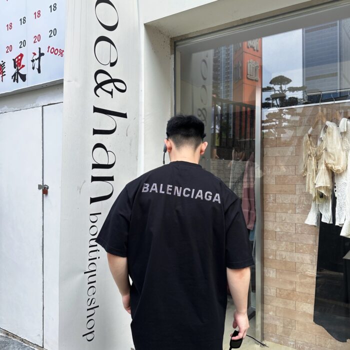 Balenciaga rhinestone Letter logo loose Round neck T-shirt Black バレンシアガ ラインストーン モジ logo ゆったり クルーネック Tシャツ ブラック