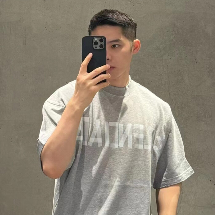 Balenciaga tape pattern Round neck T-shirt Gray バレンシアガ テープ パターン クルーネック Tシャツ グレー