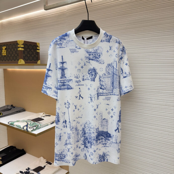 Louis Vuitton Round neck Print pattern T-shirt Blue/White ルイヴィトン プリントパターン Tシャツ ブルー/ホワイト