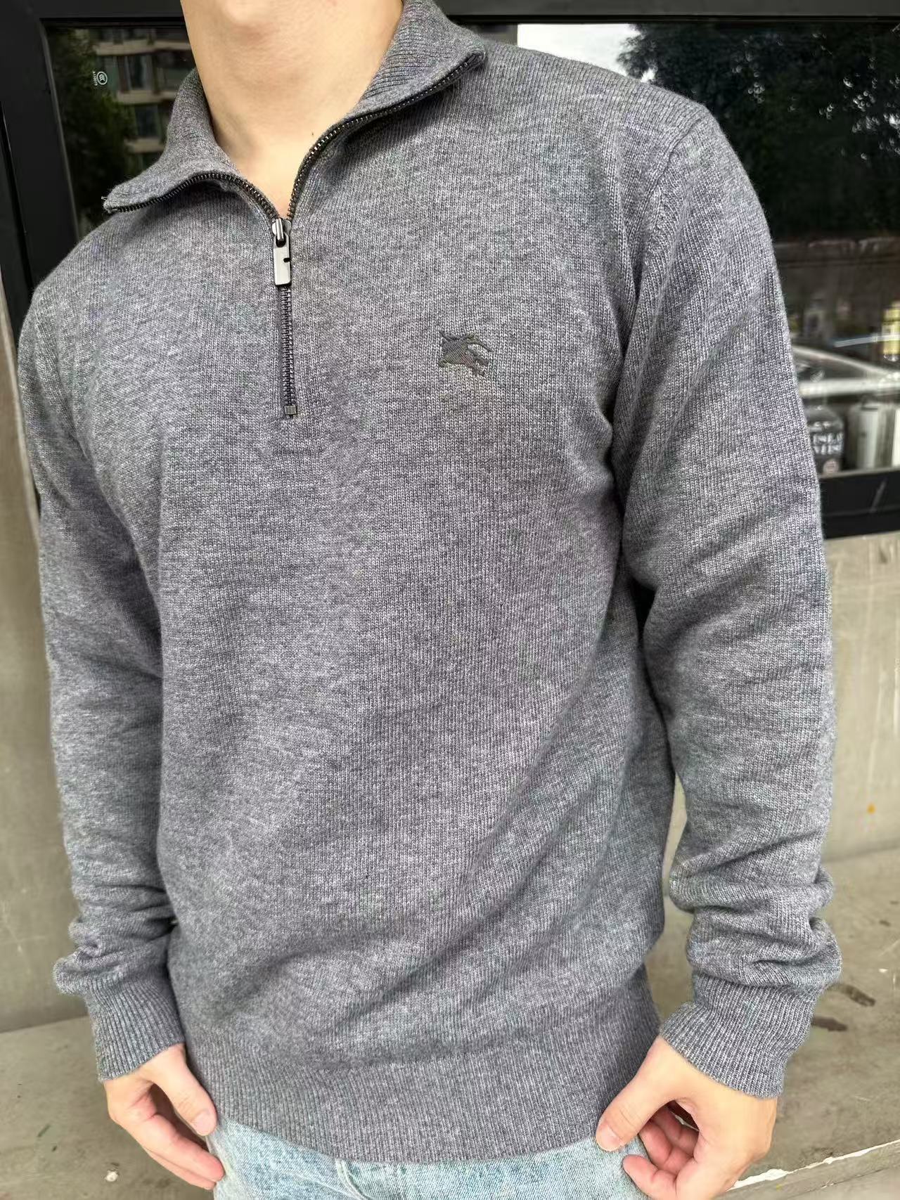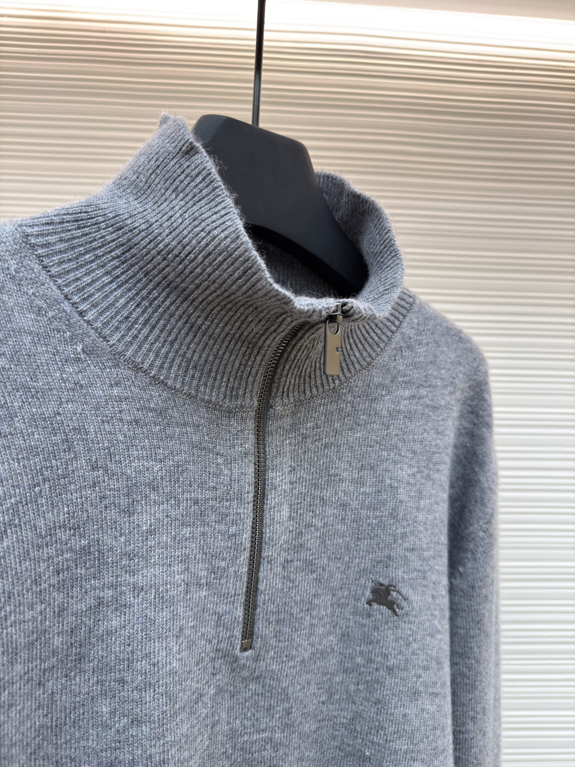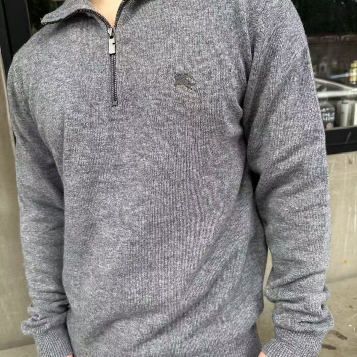 Burberry Embroidery logo High Neck half-zip Knit Sweater Gray バーバリー 刺繍 logo ハイネック ハーフジップニットセーター グレー