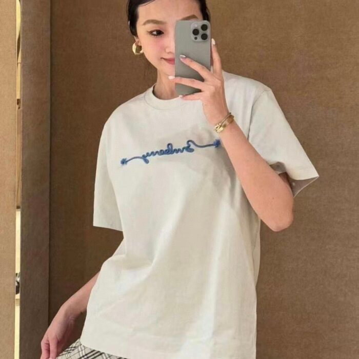 Burberry Embroidery pattern loose T-SHIRTS White バーバリー ロゴ 刺繍 パターン ゆったりTシャツ ホワイト