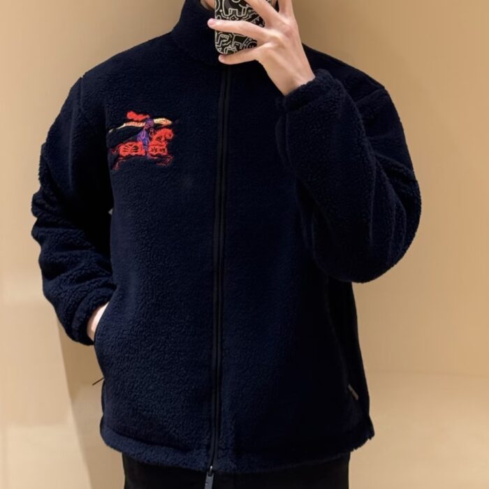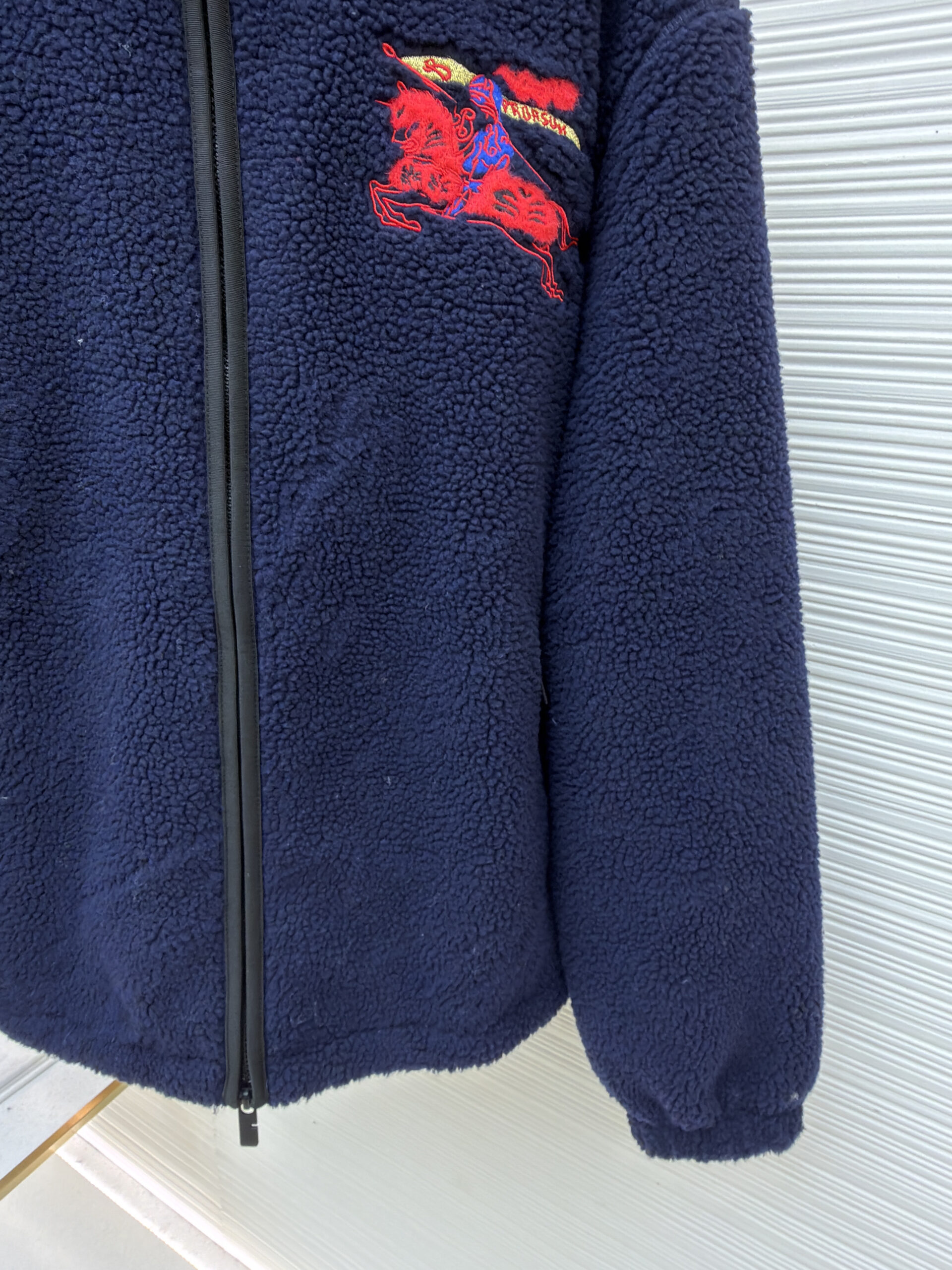 BURBERRY Embroidery logo Suede ZIP-UP jacket Navy バーバリー 刺繍 logo スエード ジップアップジャケット ネイビー