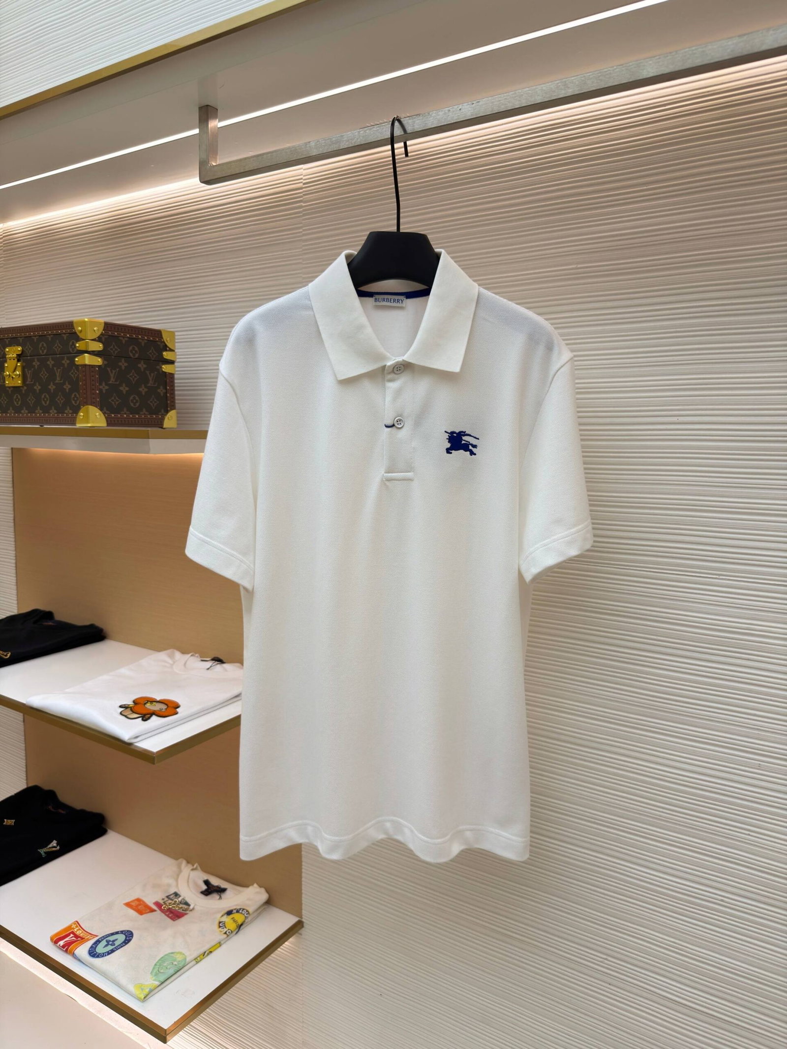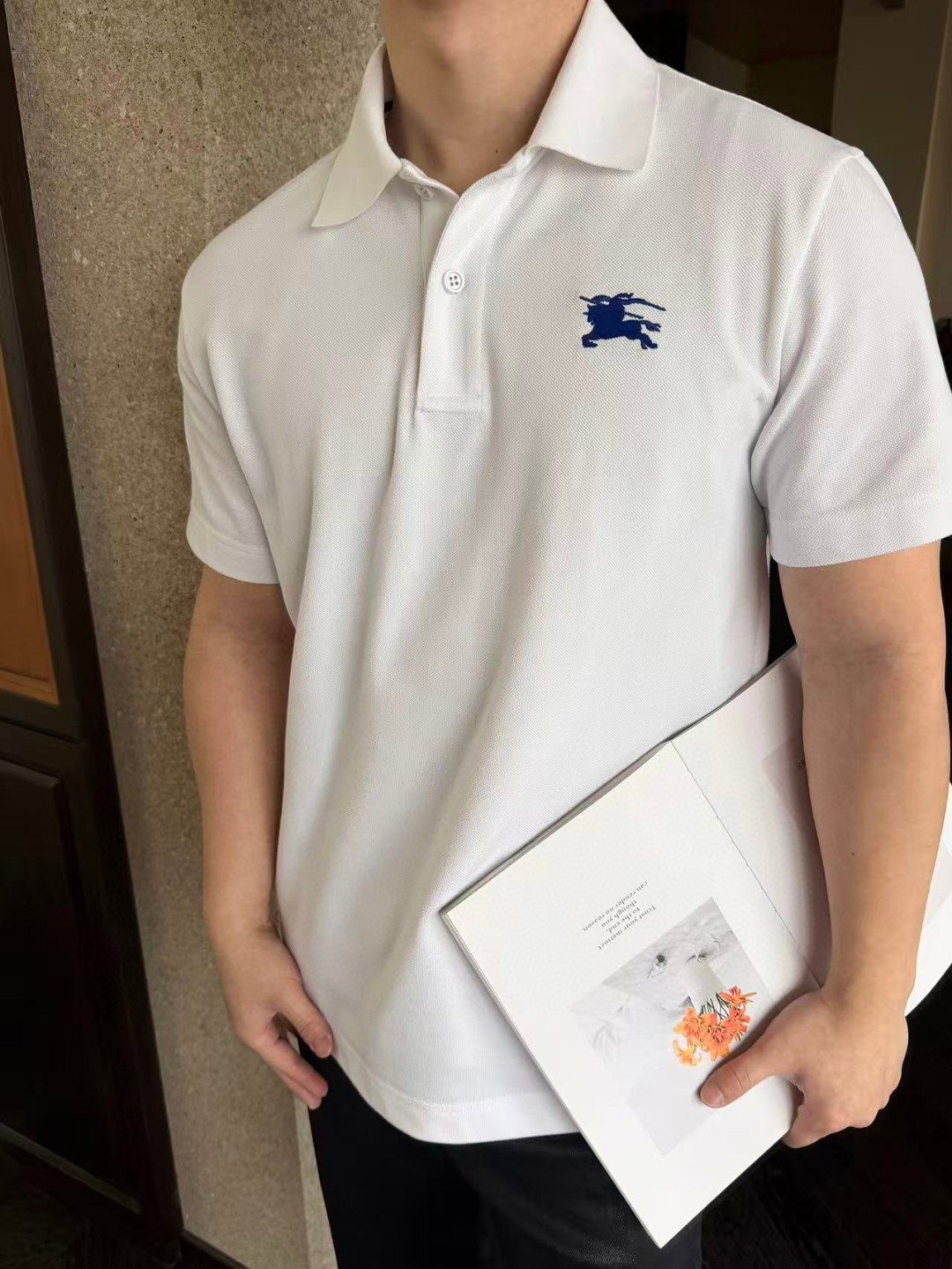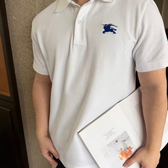 Burberry Embroidery Navy logo loose polo-neck T-SHIRTS White バーバリー ロゴ 刺繍 ネイビー logo ゆったり polo-ネック Tシャツ ホワイト