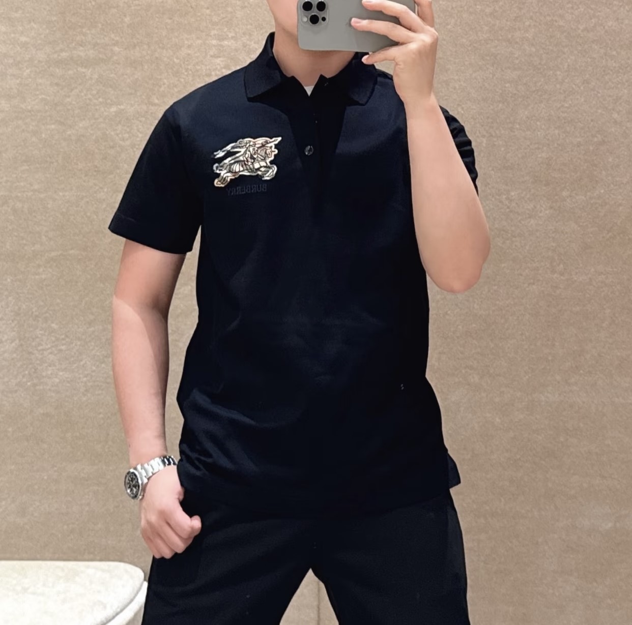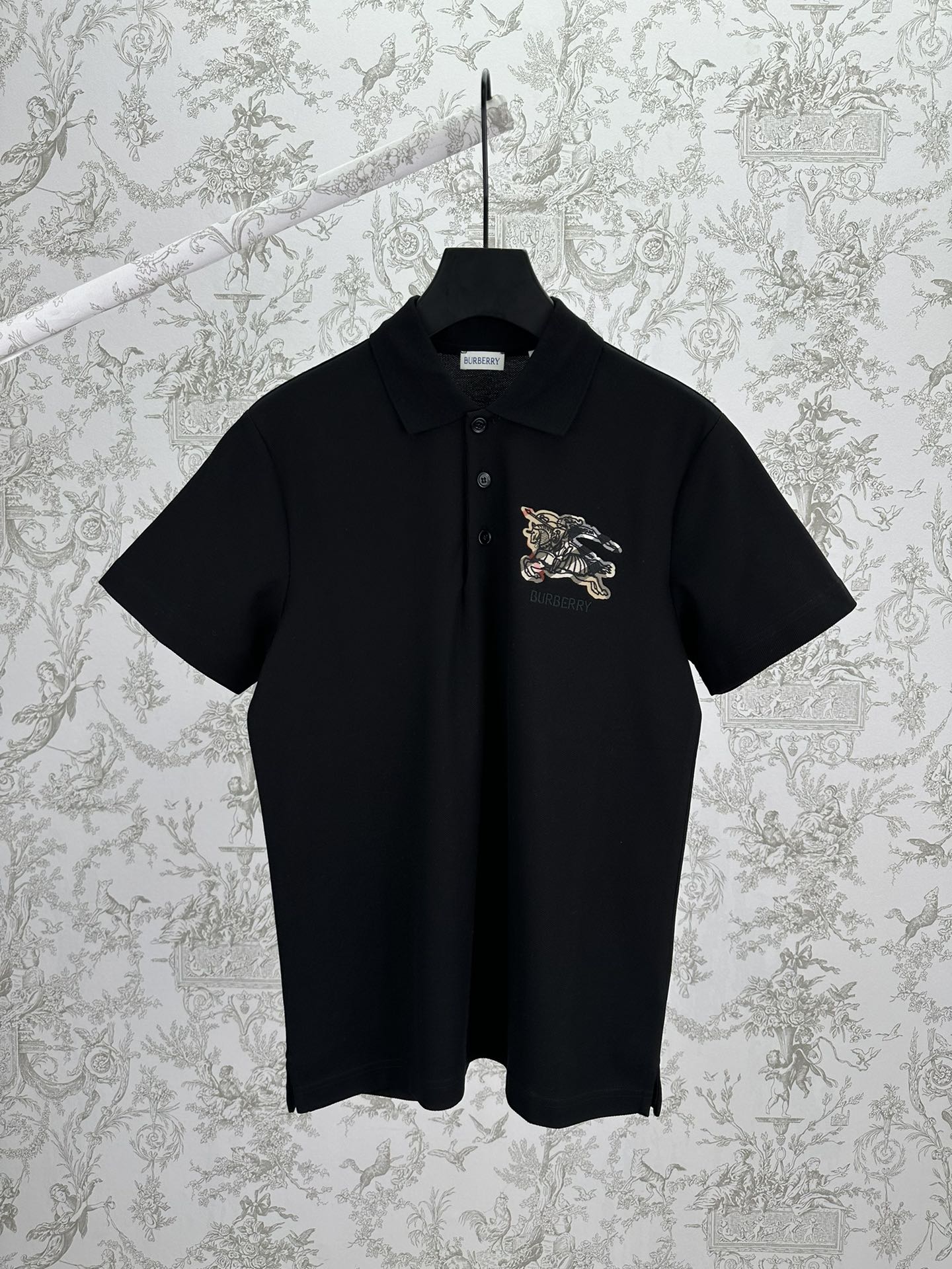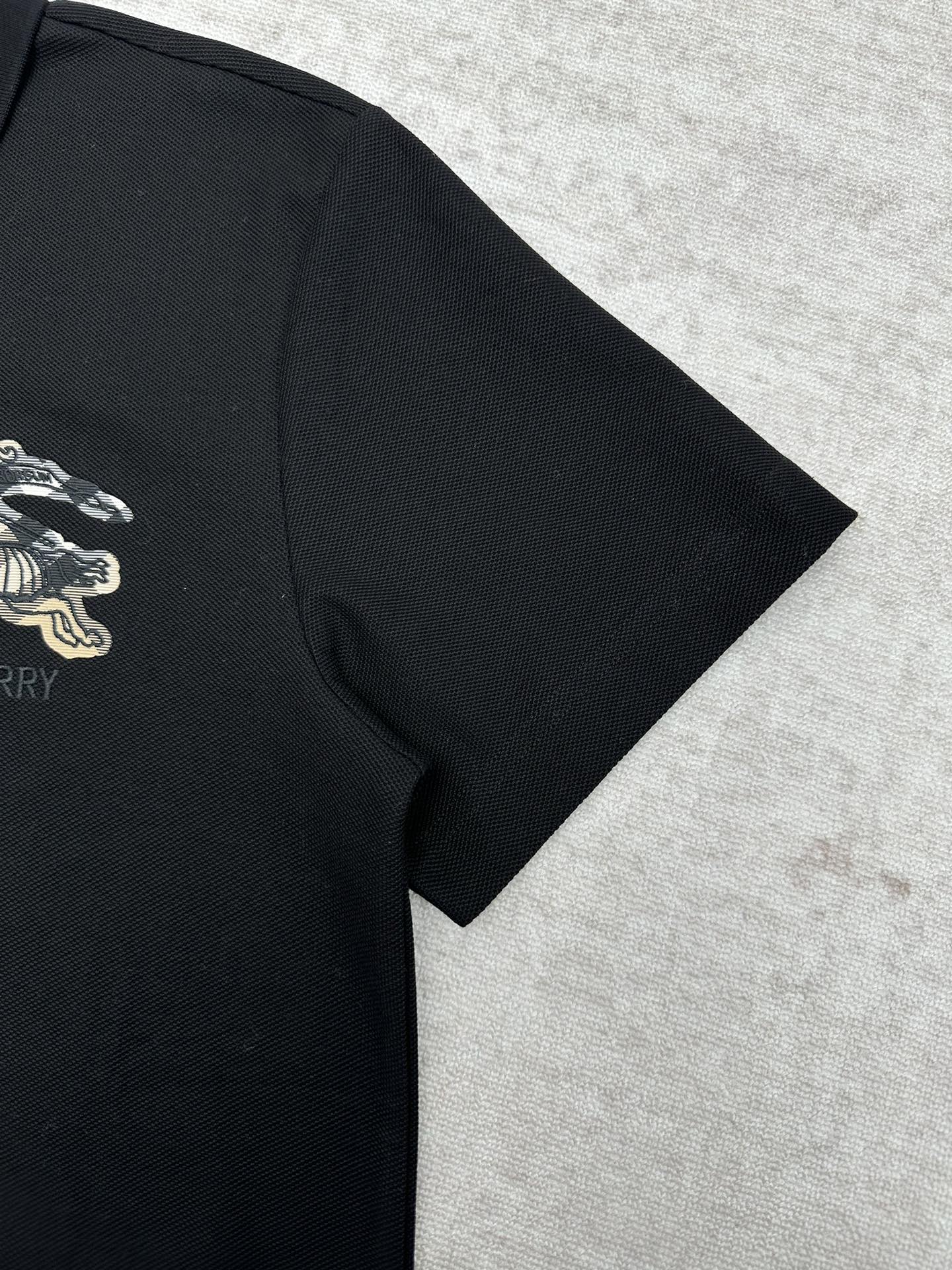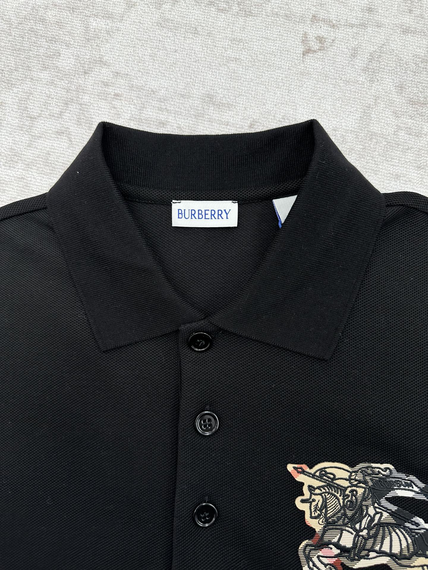 Burberry Embroidery pattern loose POLO Neck T-SHIRTS Black バーバリー ロゴ 刺繍 パターン ゆったり POLO ネック Tシャツ ブラック