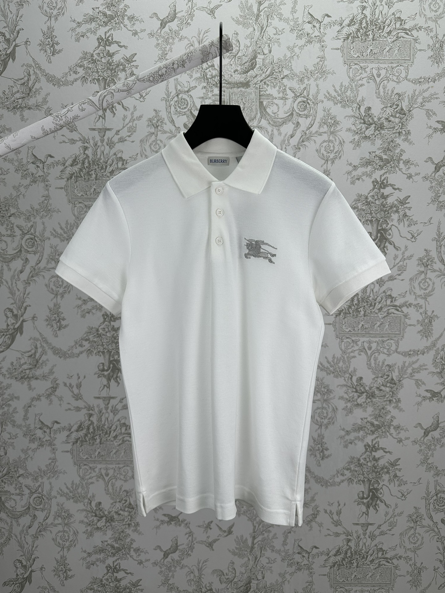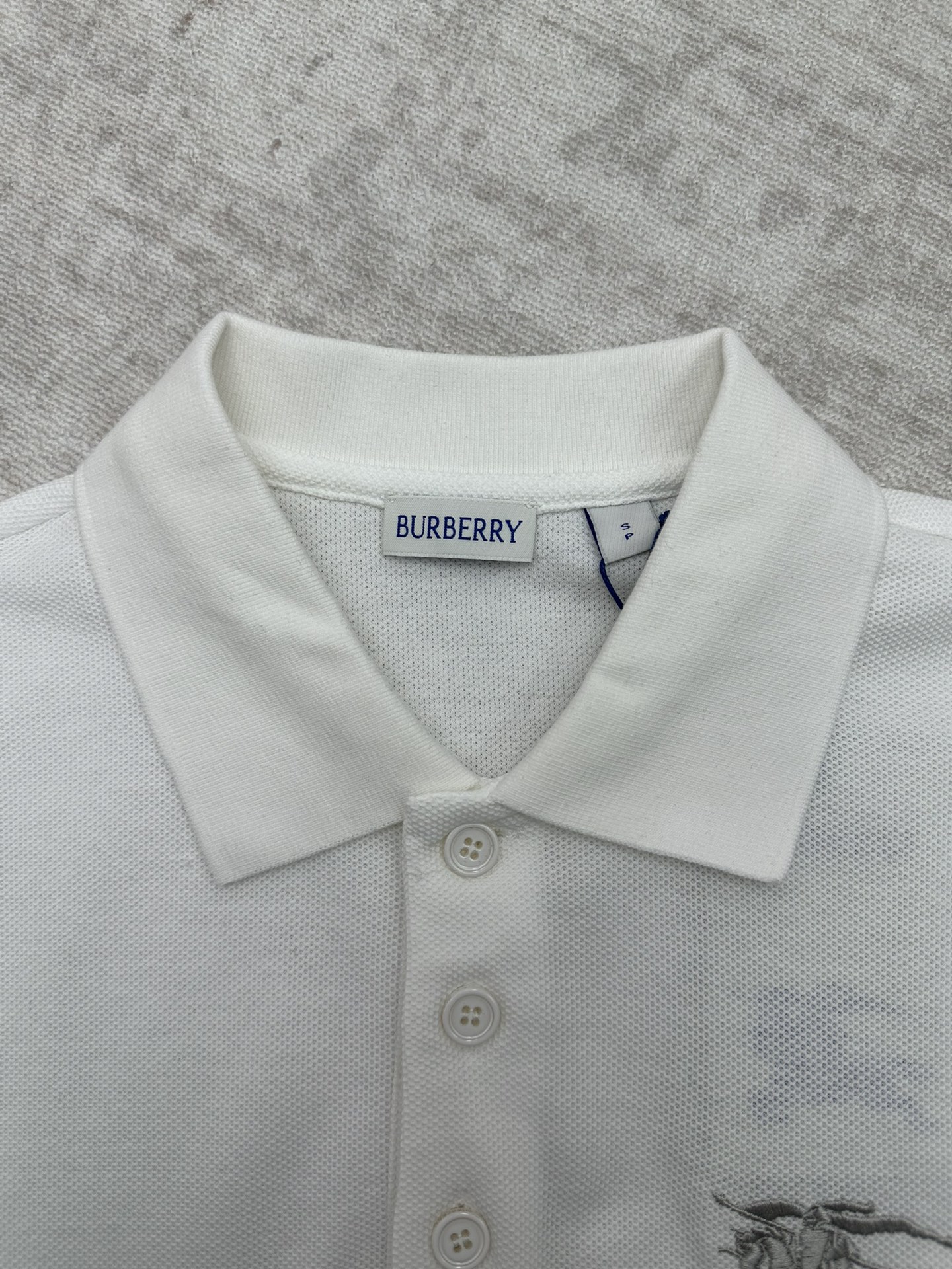 Burberry Embroidery pattern loose POLO Neck T-SHIRTS White バーバリー ロゴ 刺繍 パターン ゆったり POLO ネック Tシャツ ホワイト