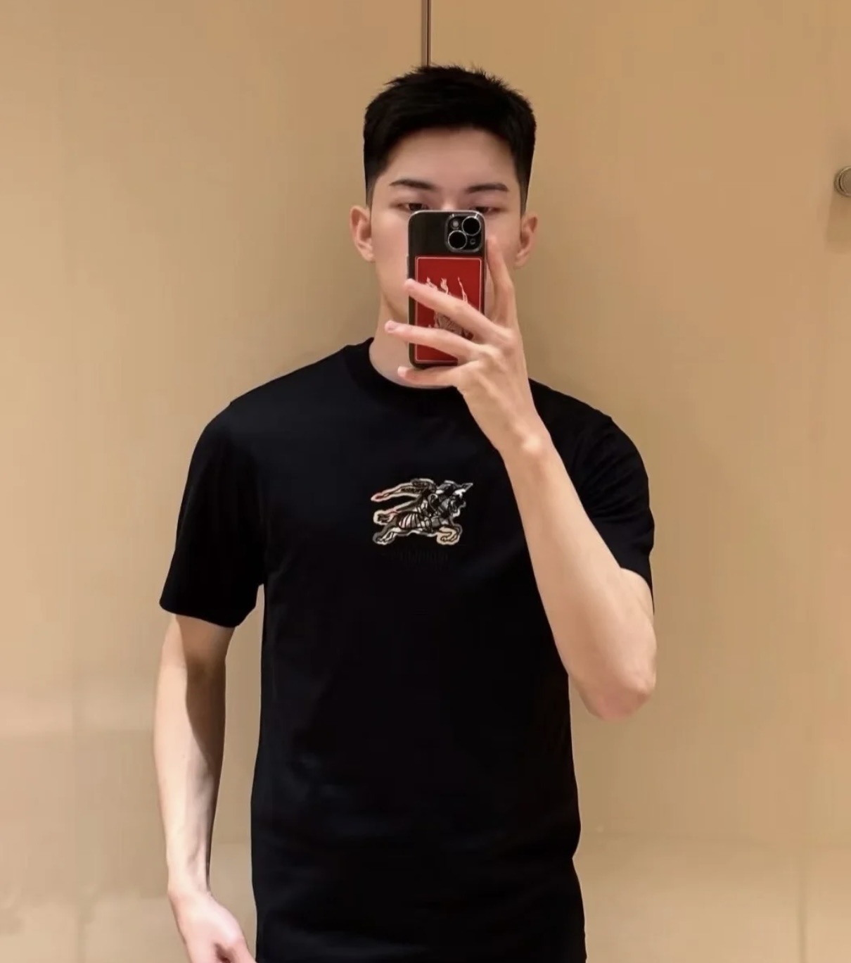 Burberry Embroidery pattern loose T-SHIRTS Black バーバリー ロゴ 刺繍 パターン ゆったりTシャツ ブラック