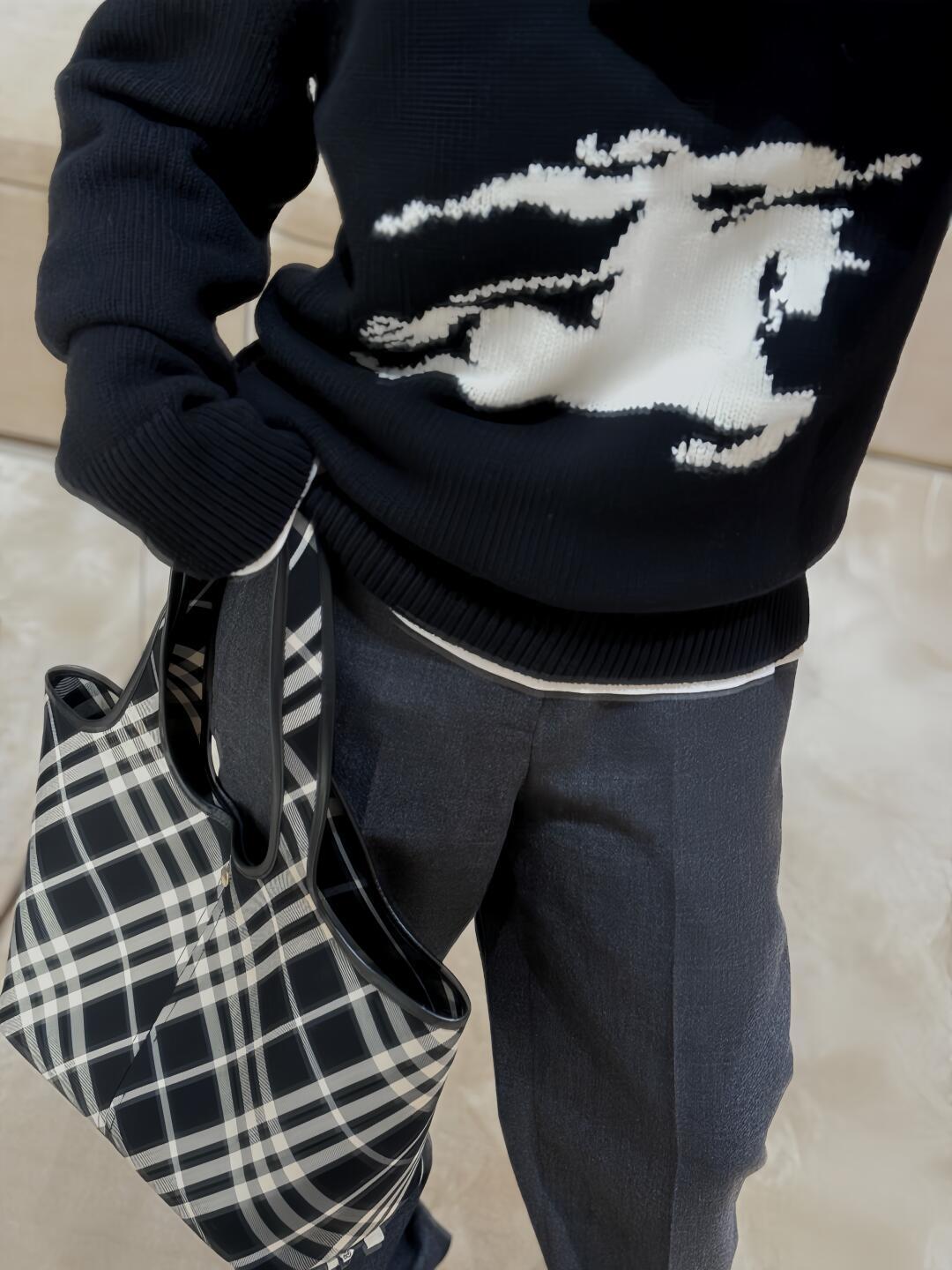 Burberry Embroidery pattern Round neck Knit Sweater Black バーバリー 刺繍 パターン クルーネック ニット セーター ブラック