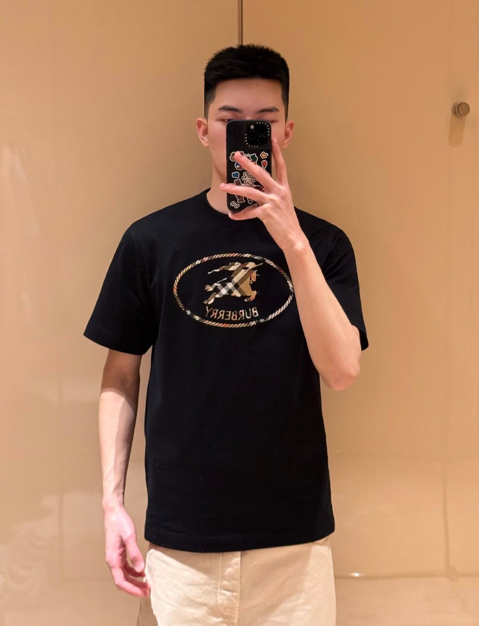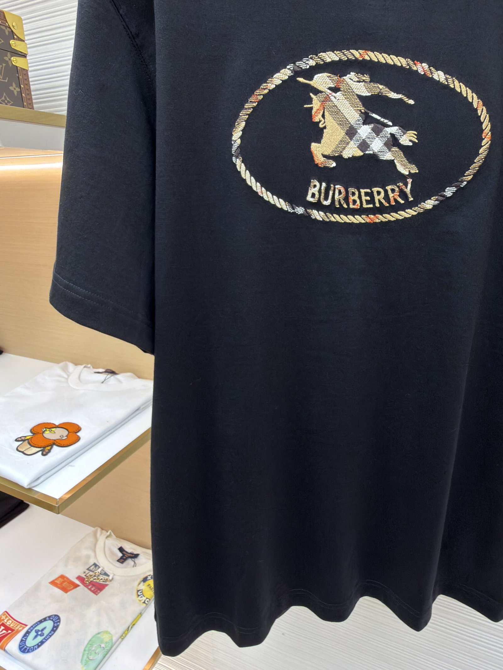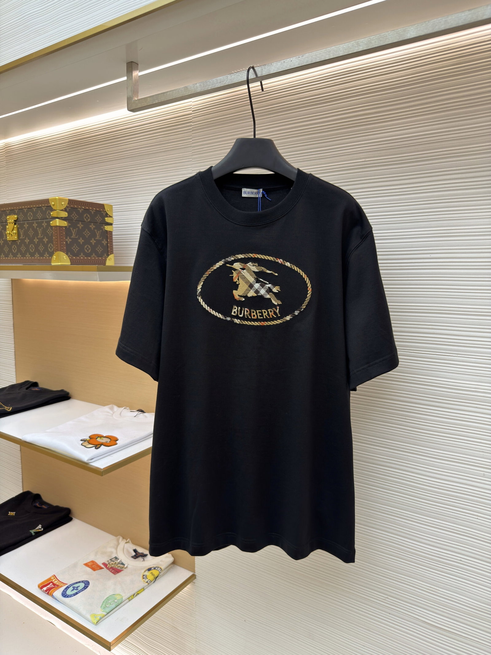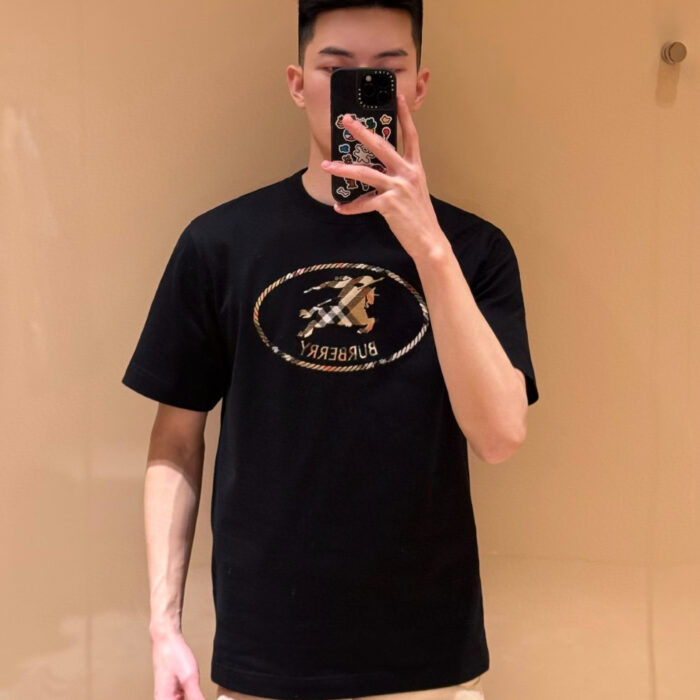 Burberry patch Embroidery pattern loose Round neck T-SHIRTS Black バーバリー ロゴ アップリケ 刺繍 パターン ゆったり クルーネック Tシャツ ブラック