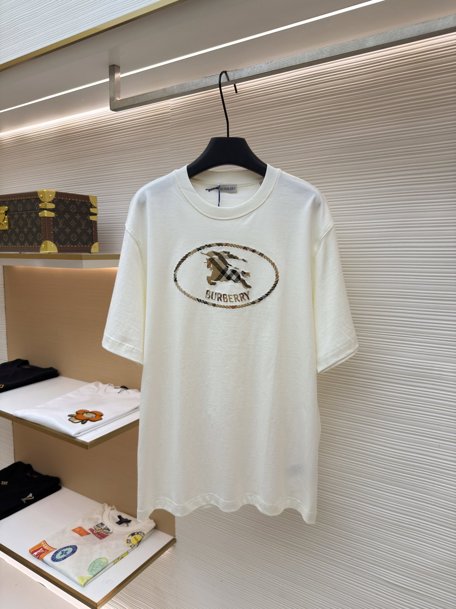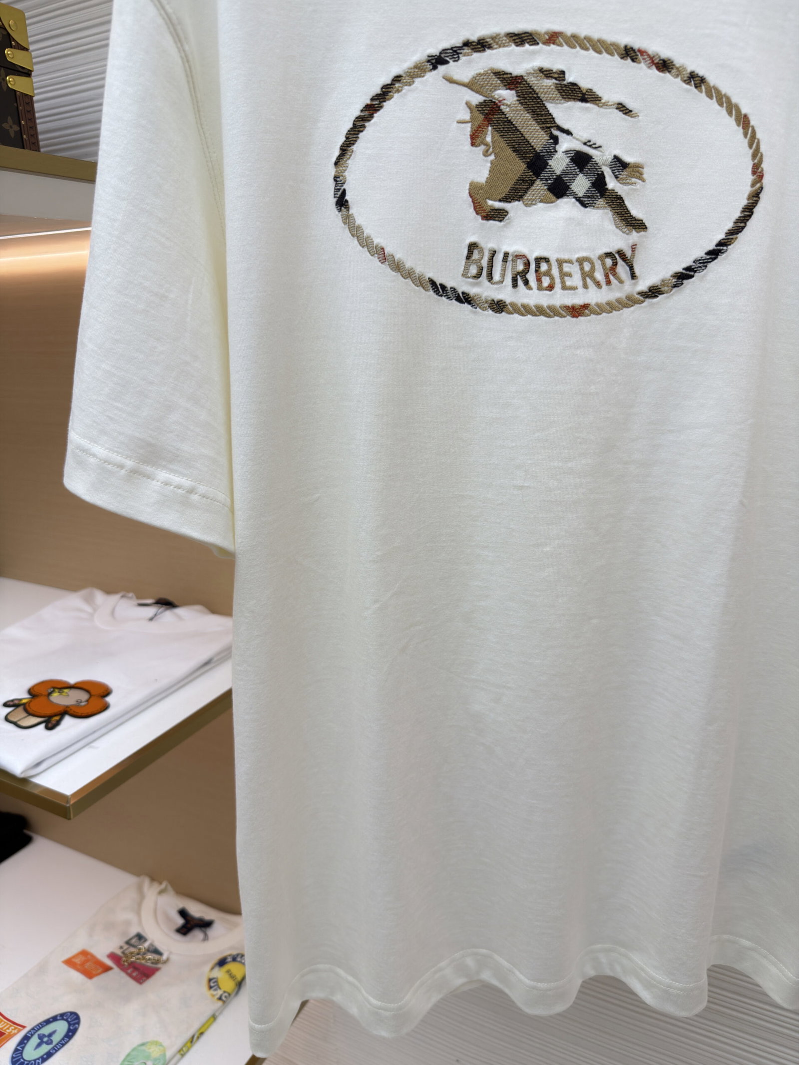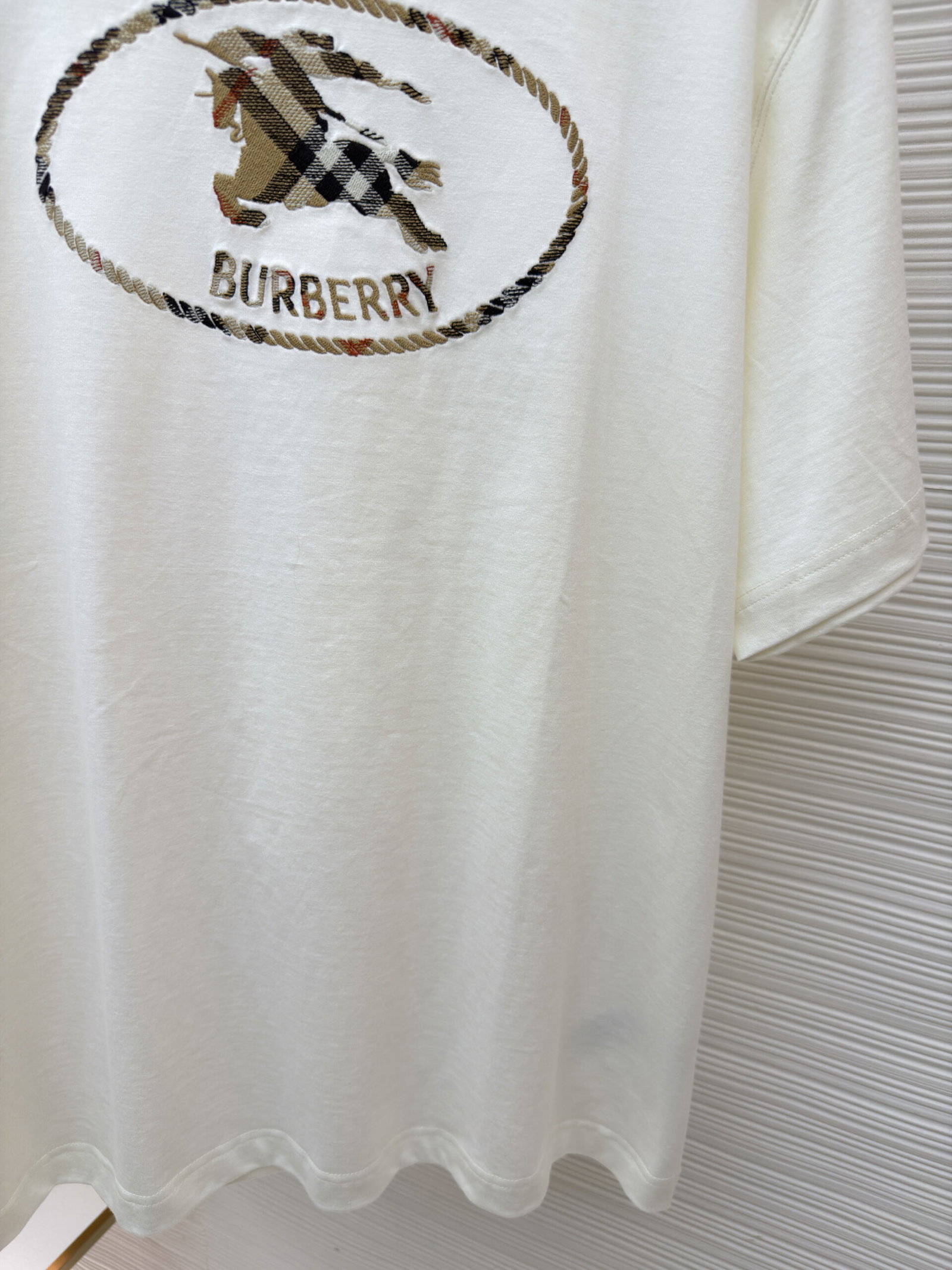 Burberry patch Embroidery pattern loose Round neck T-SHIRTS White バーバリー ロゴ アップリケ 刺繍 パターン ゆったり クルーネック Tシャツ ホワイト