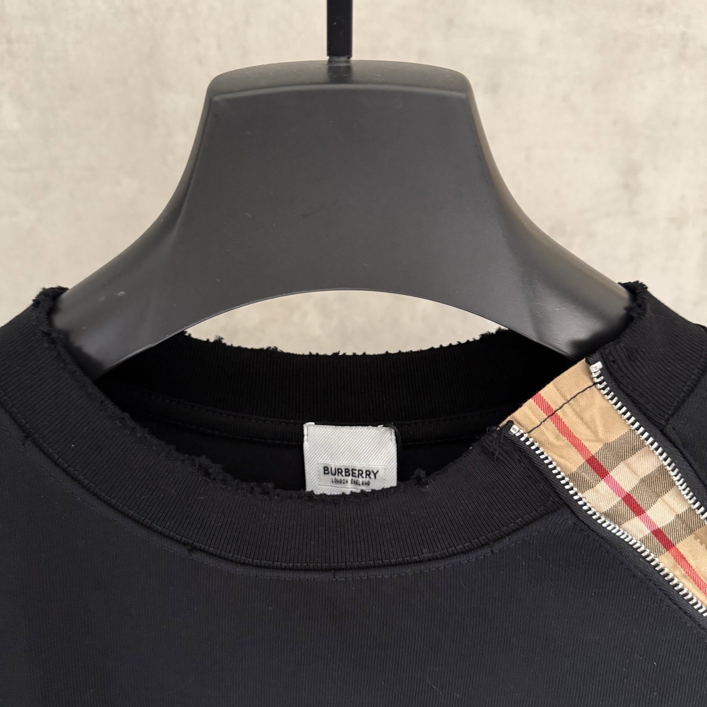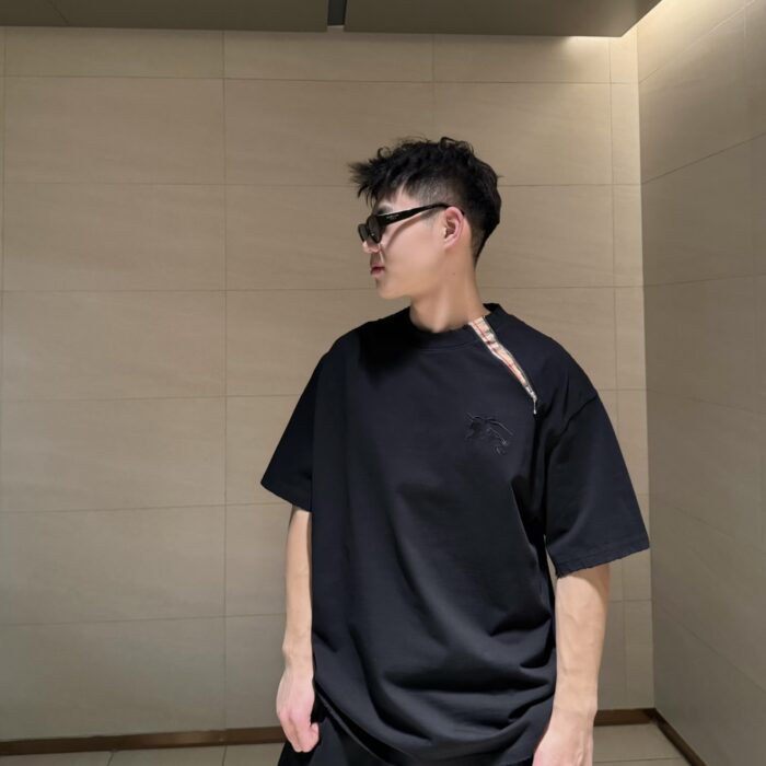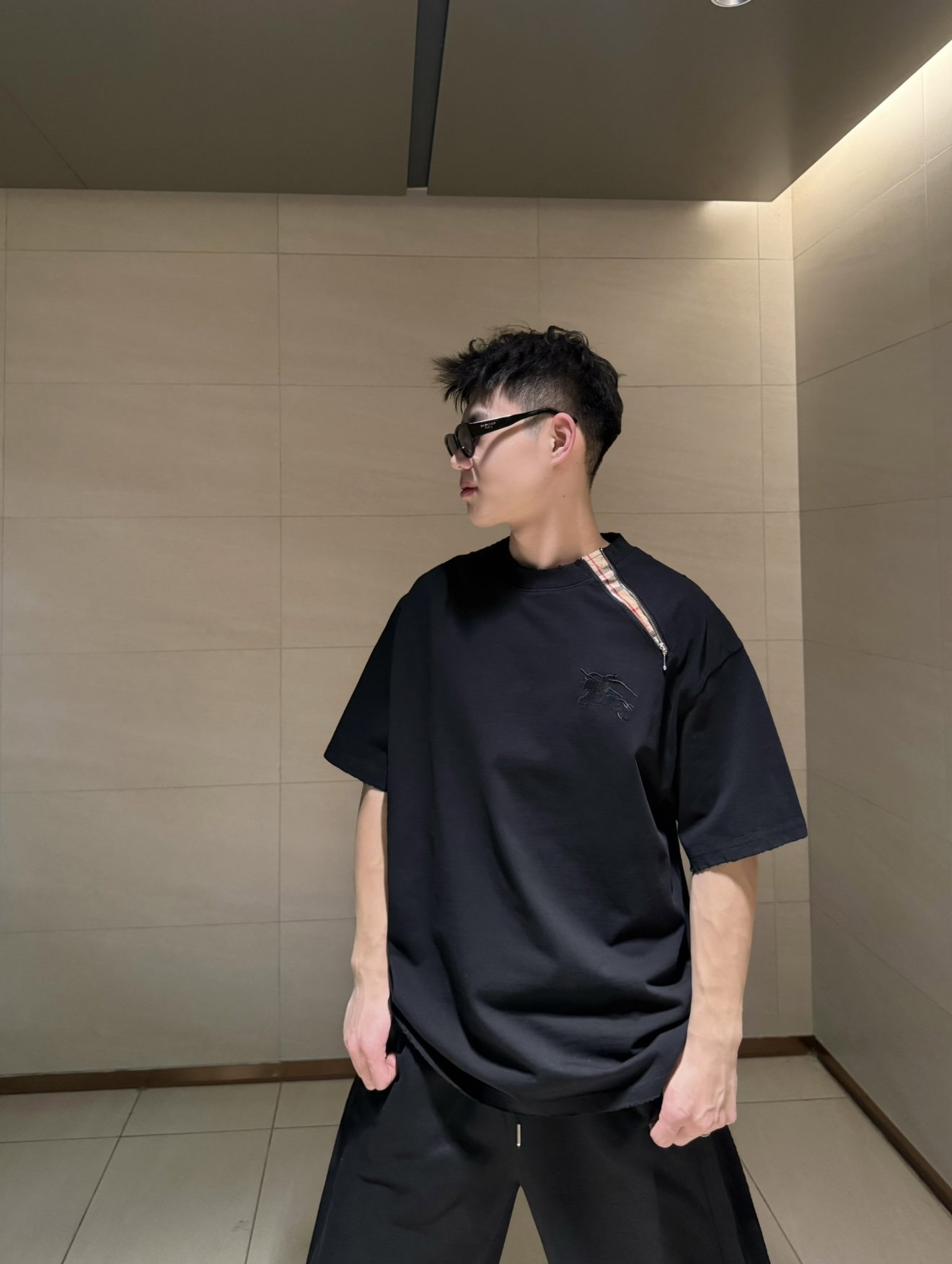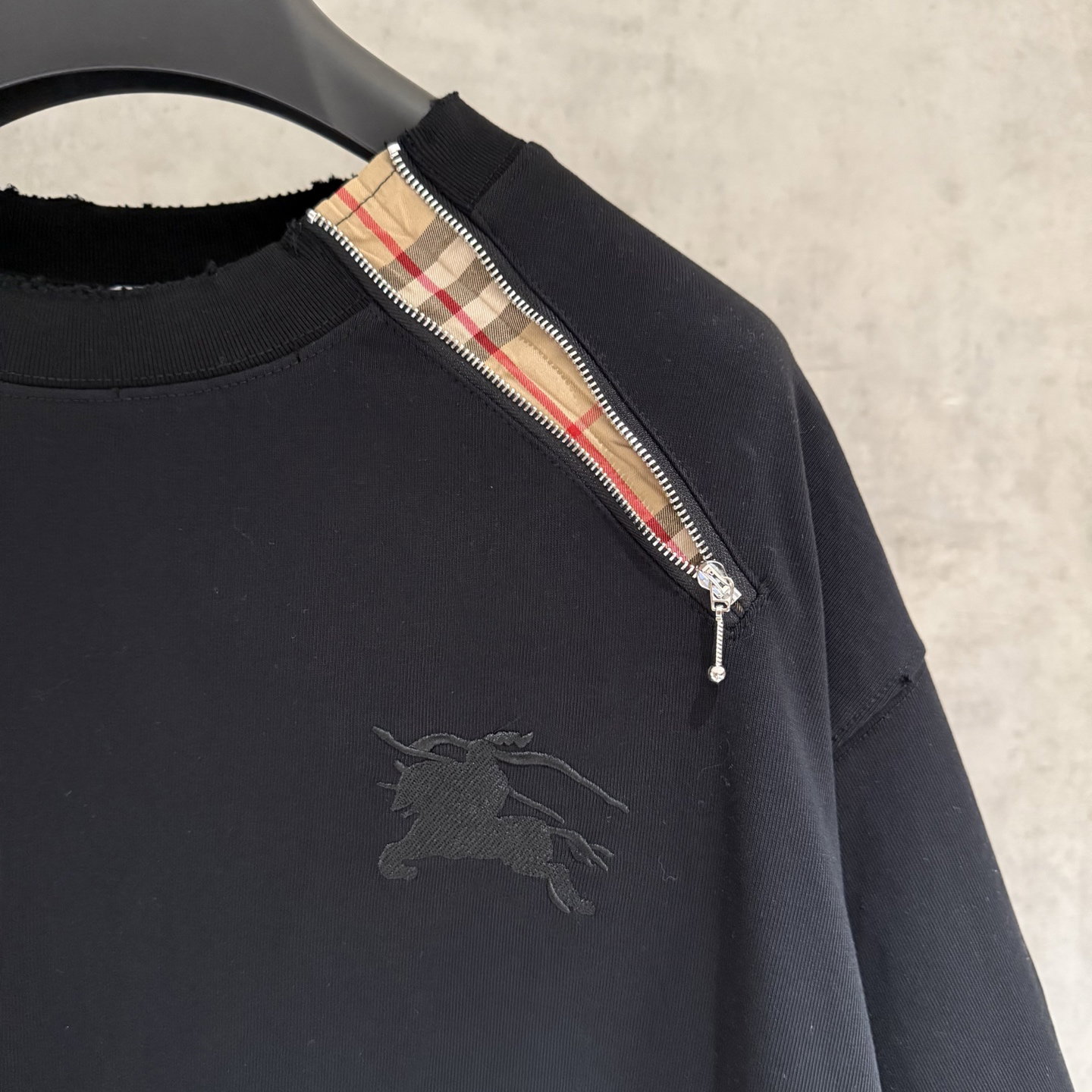 Burberry patch Embroidery pattern ZIP-UP loose Round neck T-SHIRTS Black バーバリー ロゴ アップリケ 刺繍 パターン ジップアップ ゆったり クルーネック Tシャツ ブラック