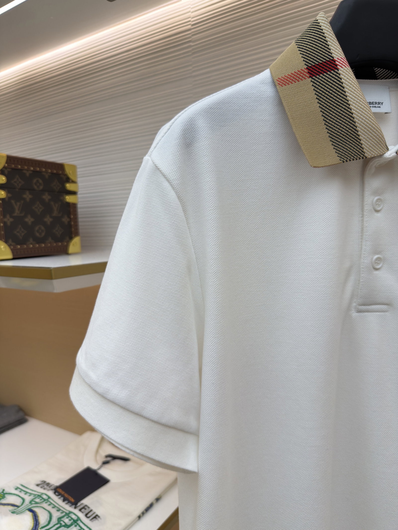 Burberry Patchwork Plaid loose polo-neck T-SHIRTS White バーバリー ロゴ パッチワーク 格子柄 ゆったり polo-ネック Tシャツ ホワイト
