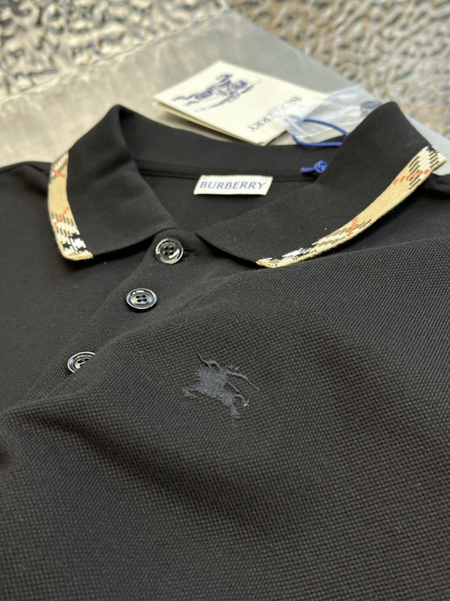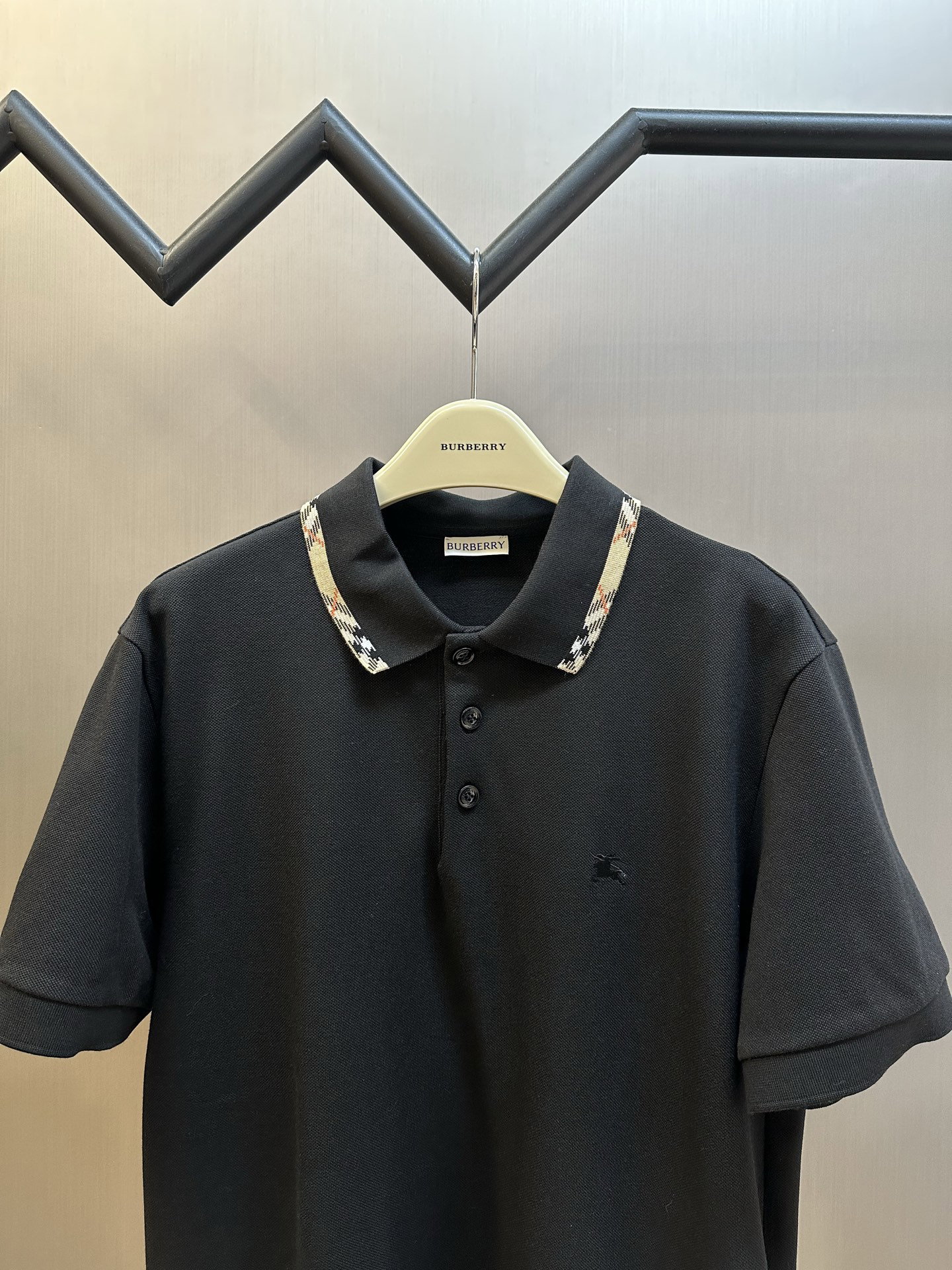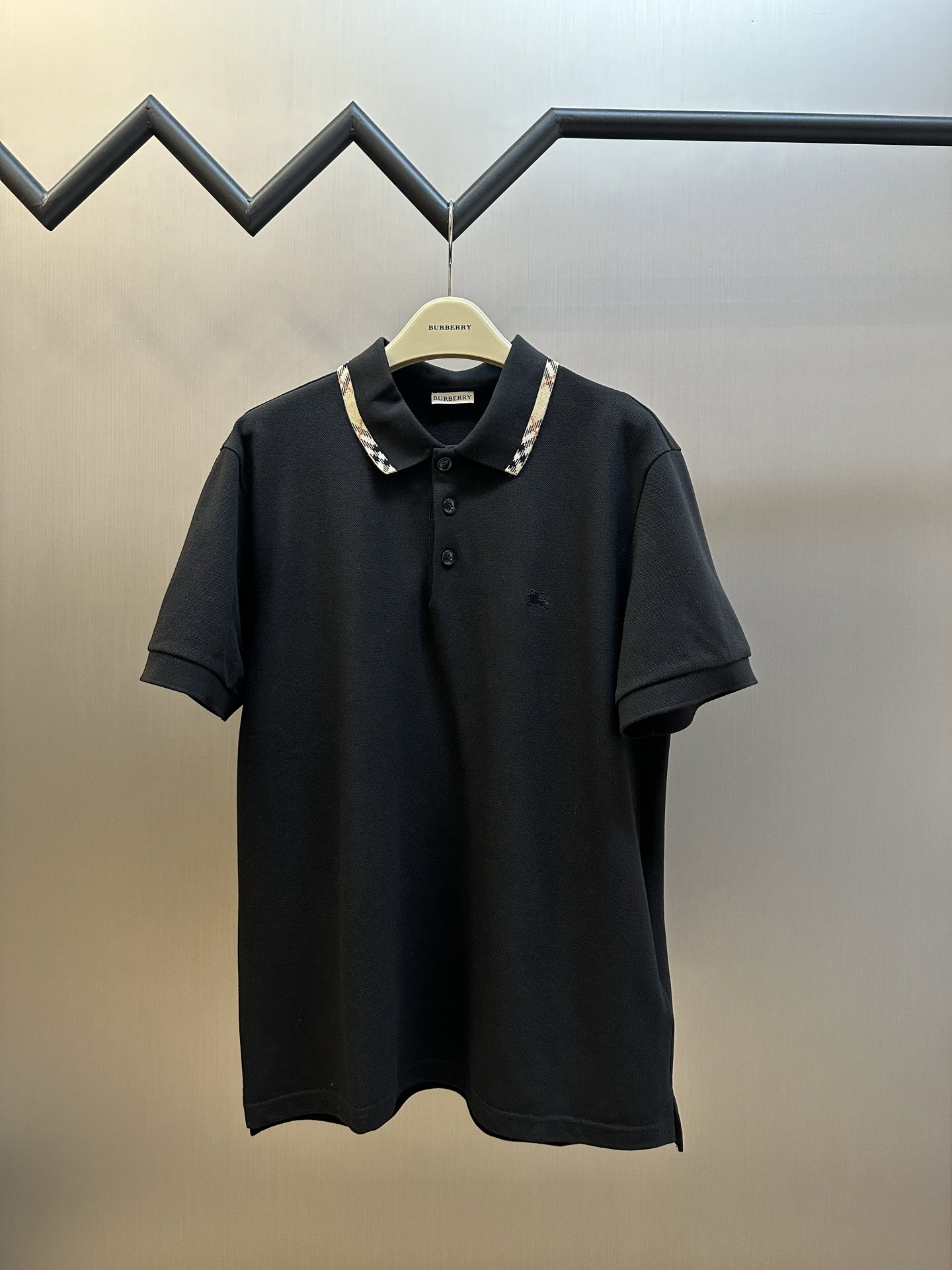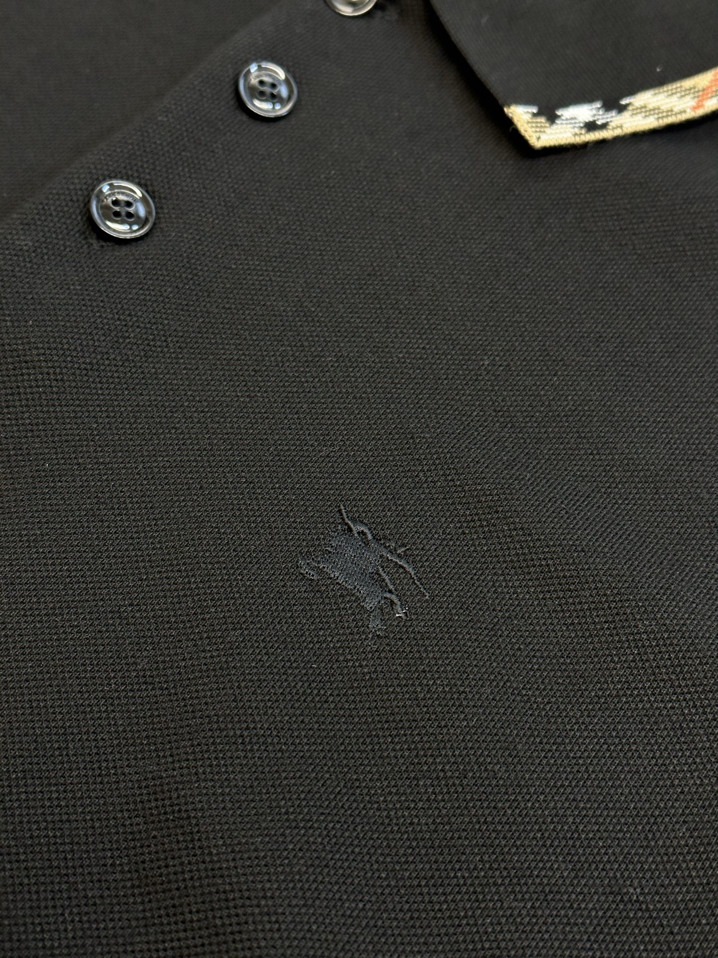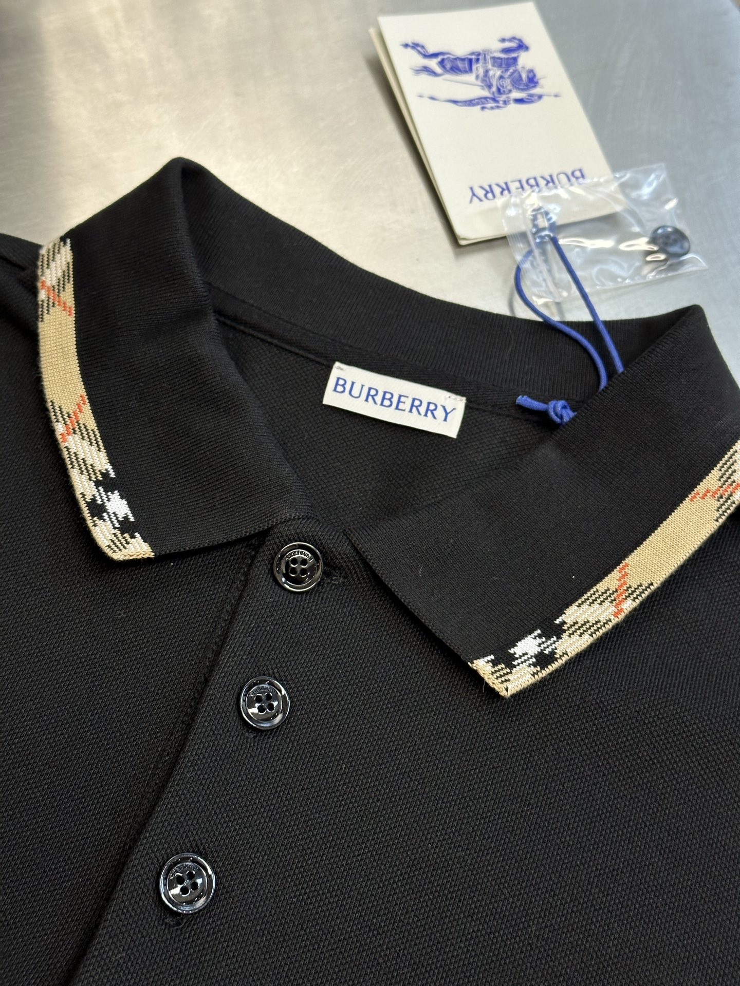 Burberry Plaid Embroidery logo pattern loose polo-neck T-SHIRTS Black バーバリー ロゴ 格子柄 刺繍 logo パターン ゆったり polo-ネック Tシャツ ブラック