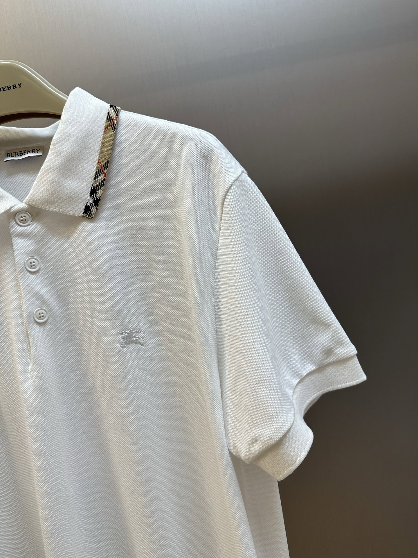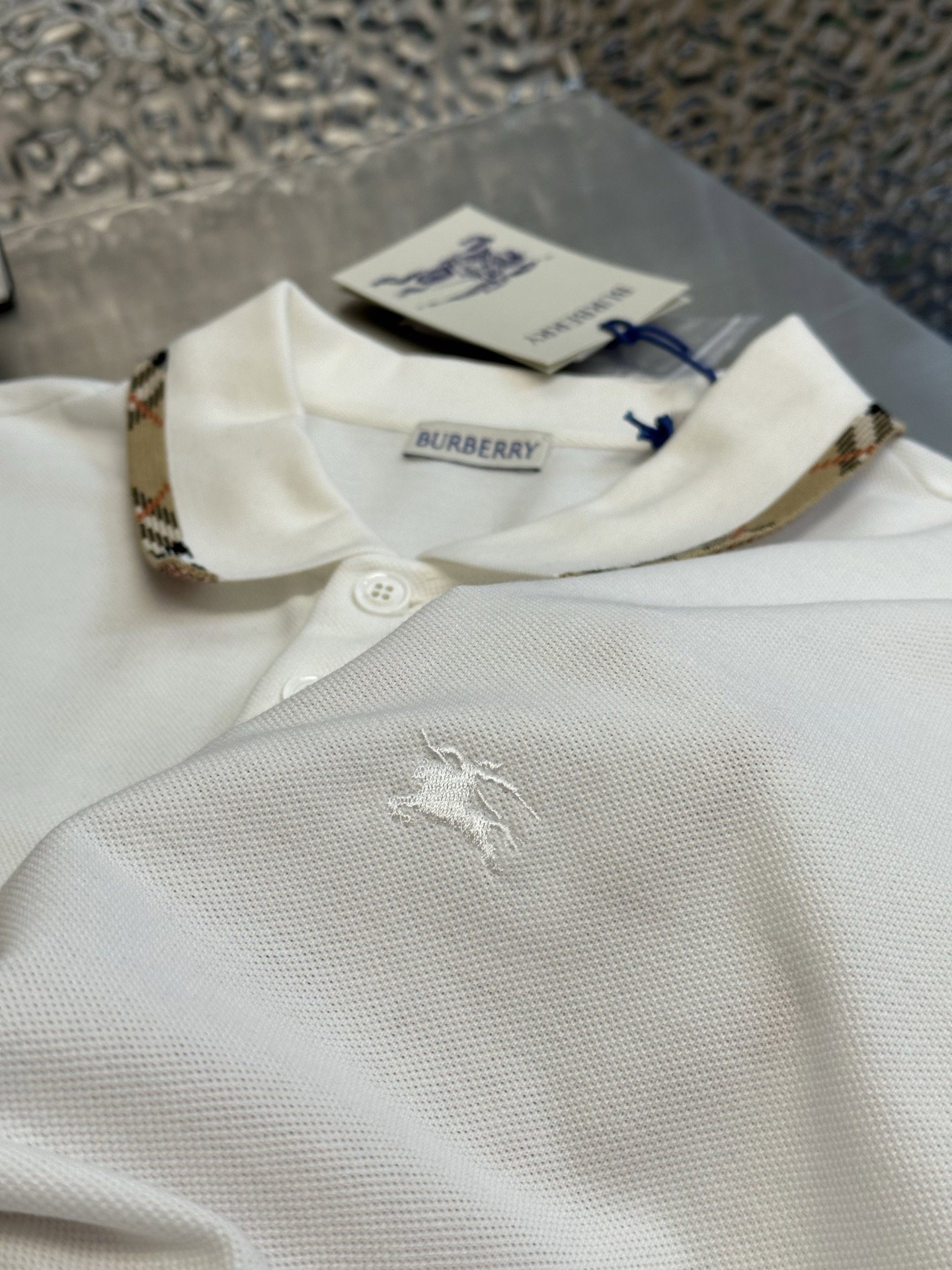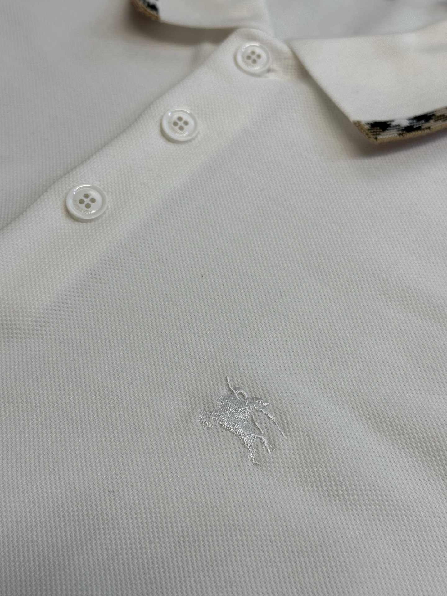 Burberry Plaid Embroidery logo pattern loose polo-neck T-SHIRTS White バーバリー ロゴ 格子柄 刺繍 logo パターン ゆったり polo-ネック Tシャツ ホワイト