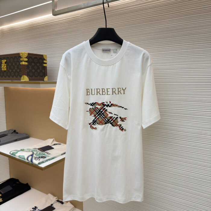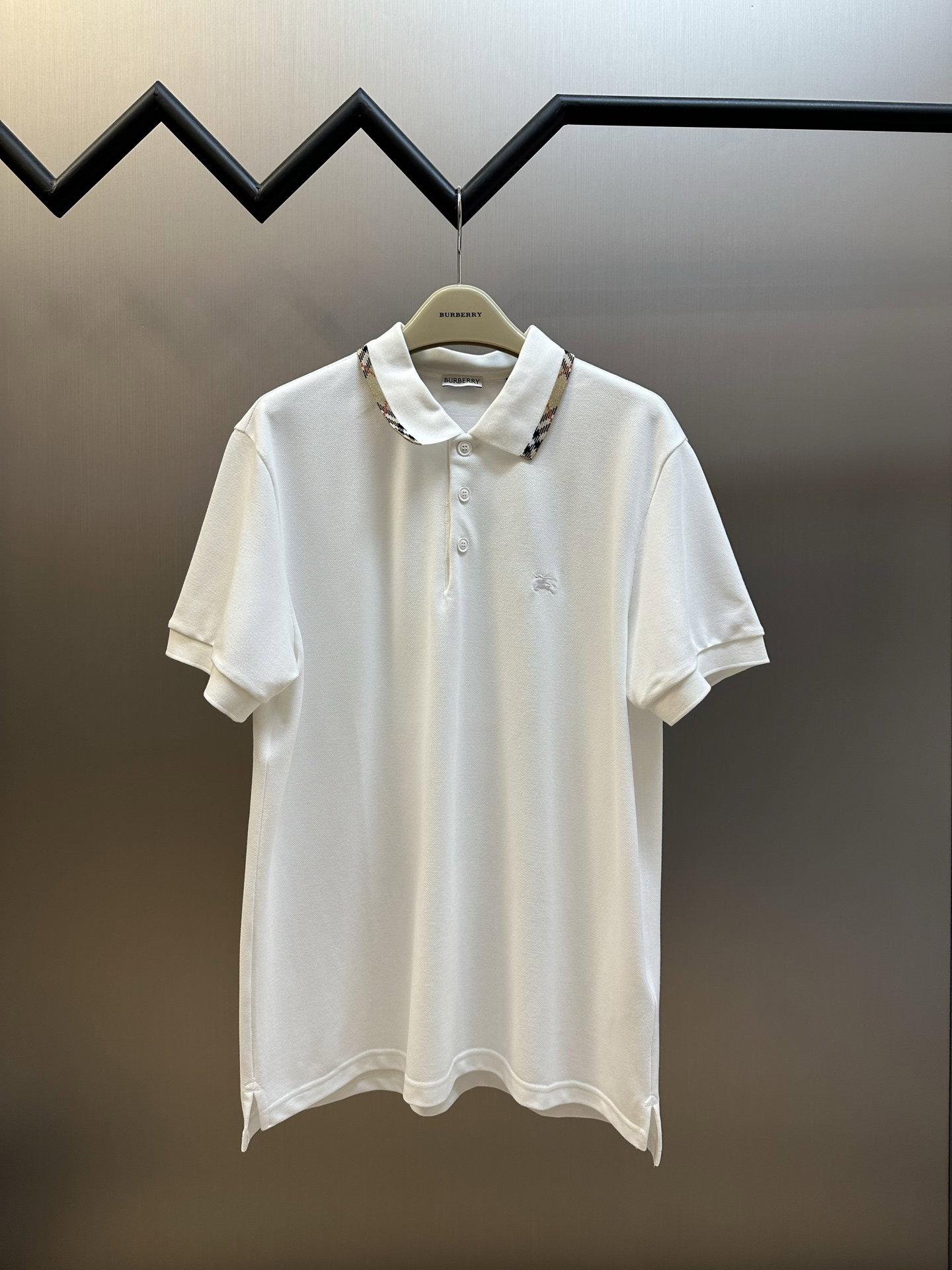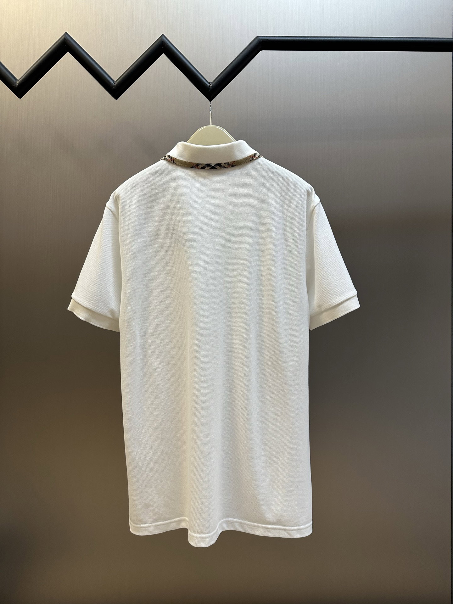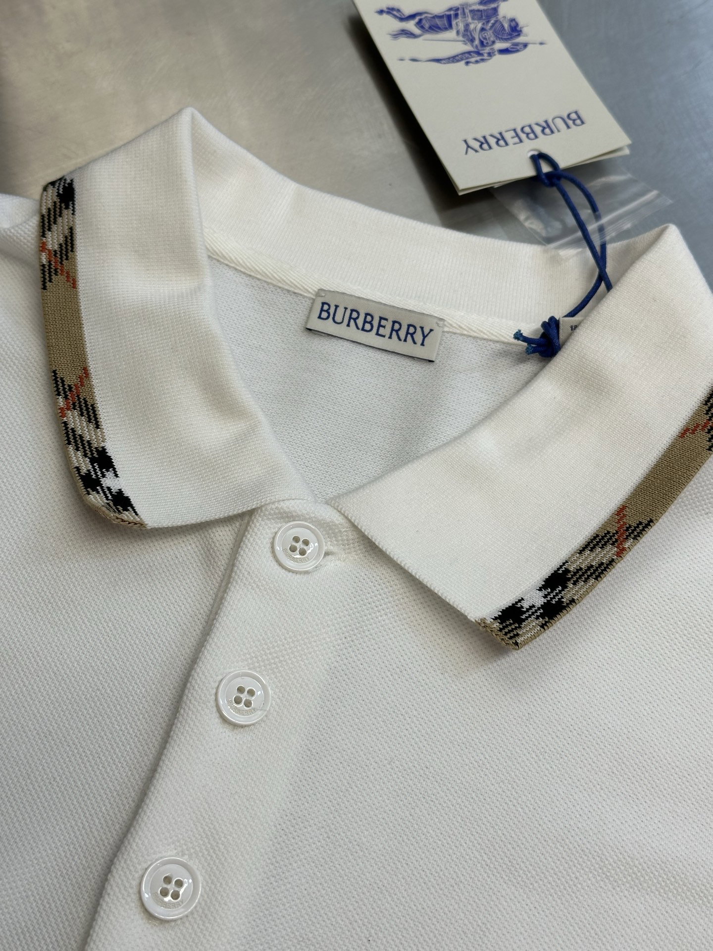 Burberry Plaid Embroidery logo pattern loose polo-neck T-SHIRTS White バーバリー ロゴ 格子柄 刺繍 logo パターン ゆったり polo-ネック Tシャツ ホワイト